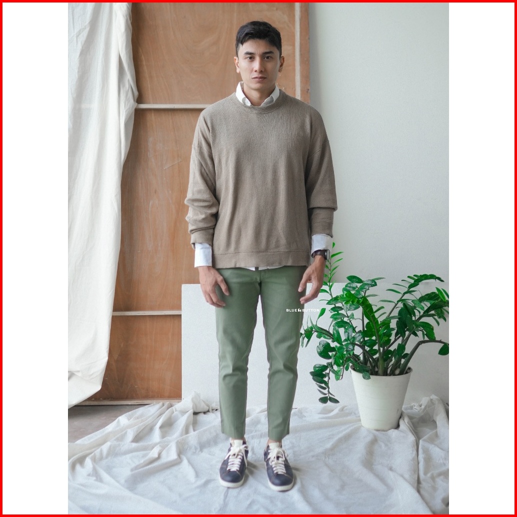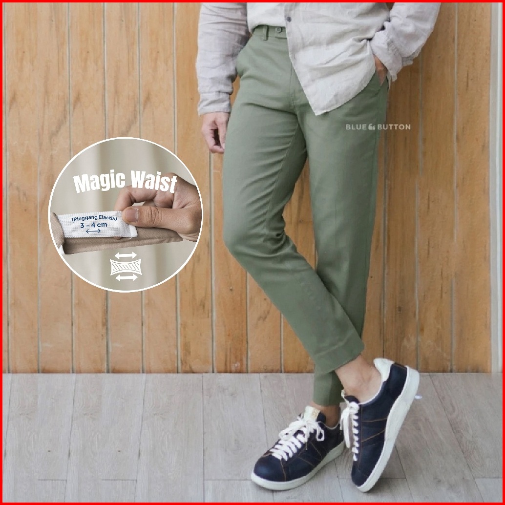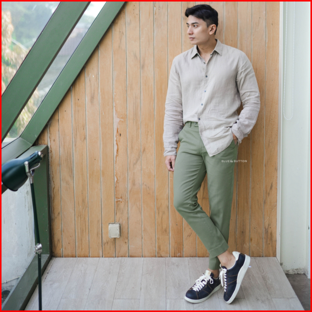Bluebutton Celana Chino Slim Fit Celana Ankle Pants Sage Kekinian