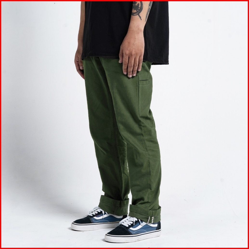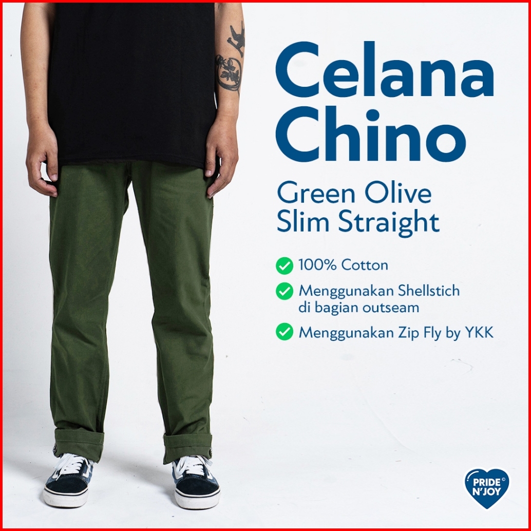 Pride N Joy - Celana Panjang Chino Green Olive Army Twill Slim Straight