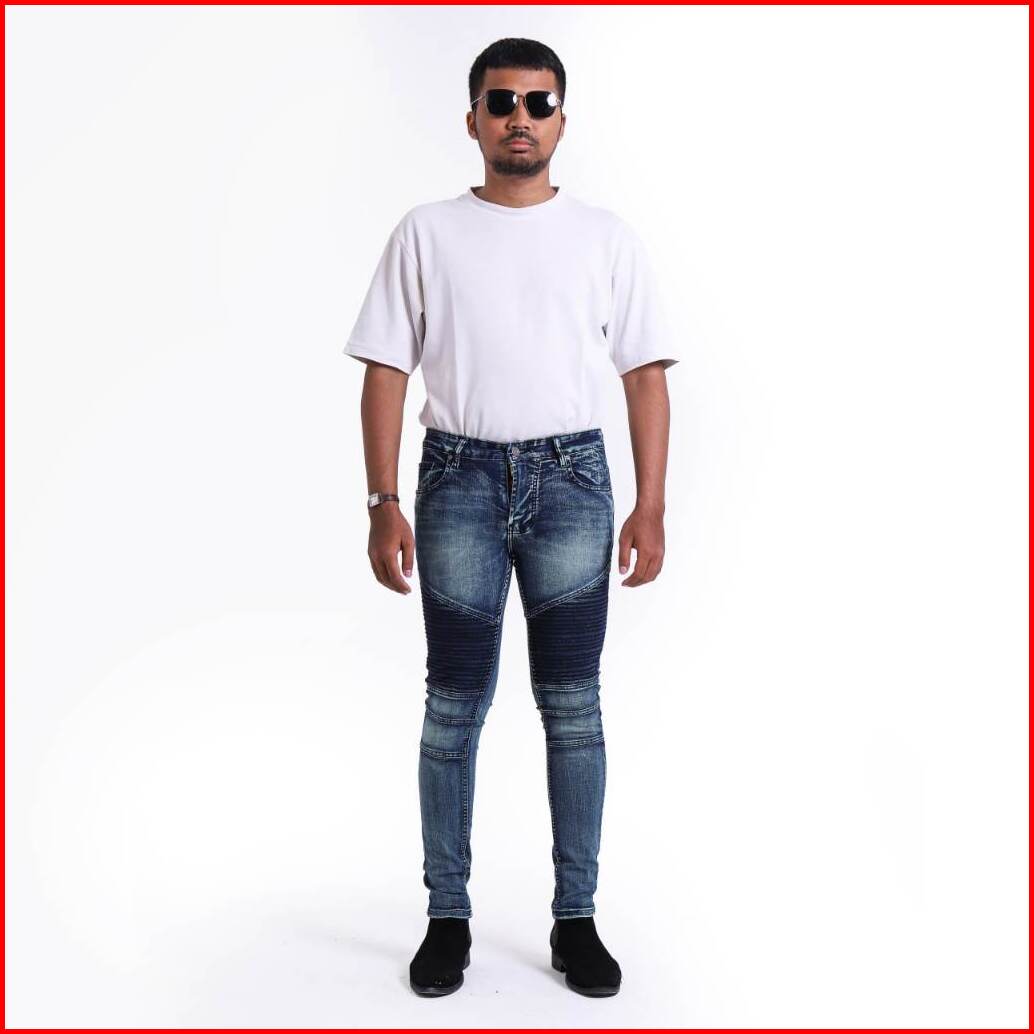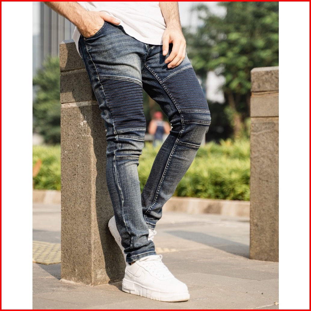 Weird Jeans - Biker Blue Indigo - Celana Biker Jeans Panjang Pria Skinny Slimfit Bahan Strech Denim