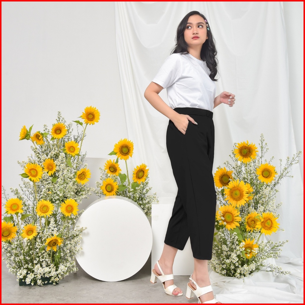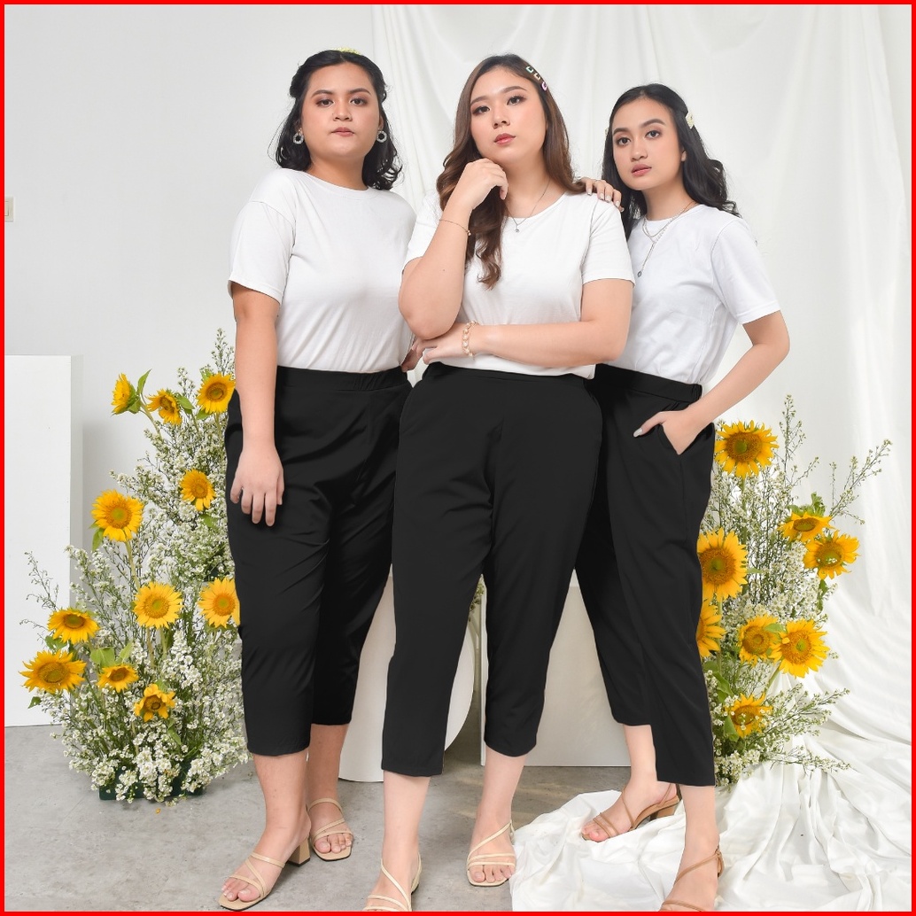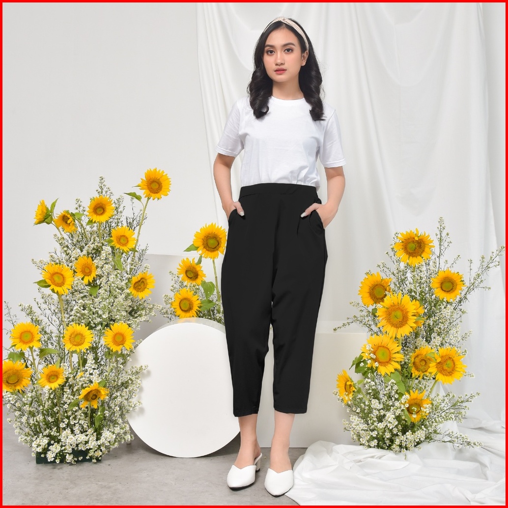 Ie.demode Hyejin Celana Panjang Wanita Jumbo Kerja Kantor Slimfit Daily Pants Bahan Allya Hitam