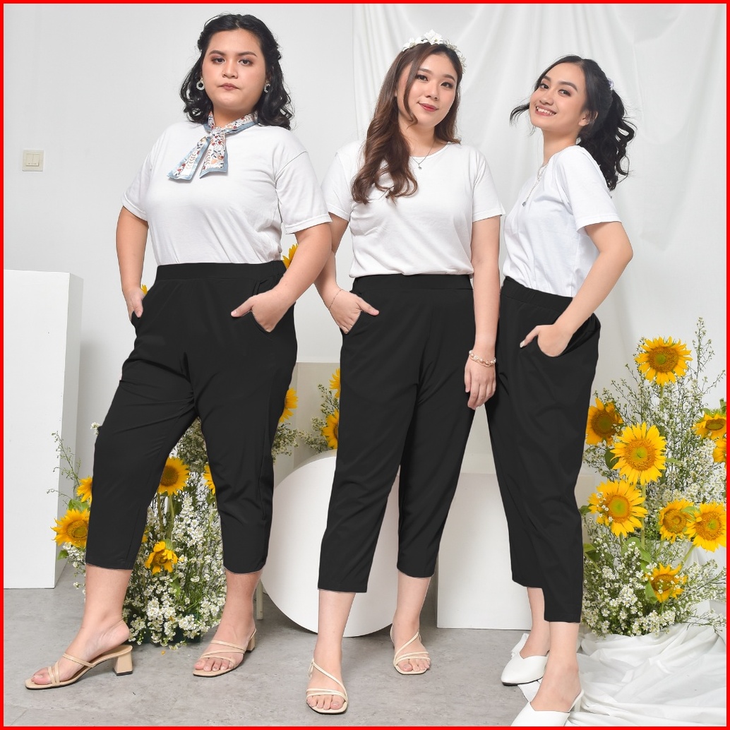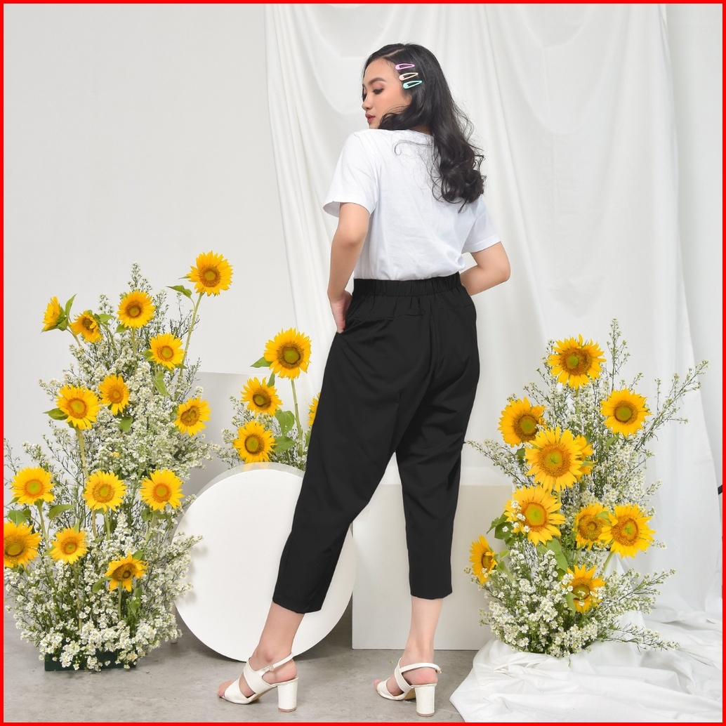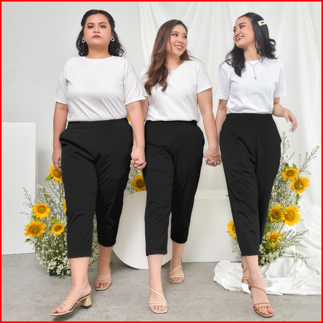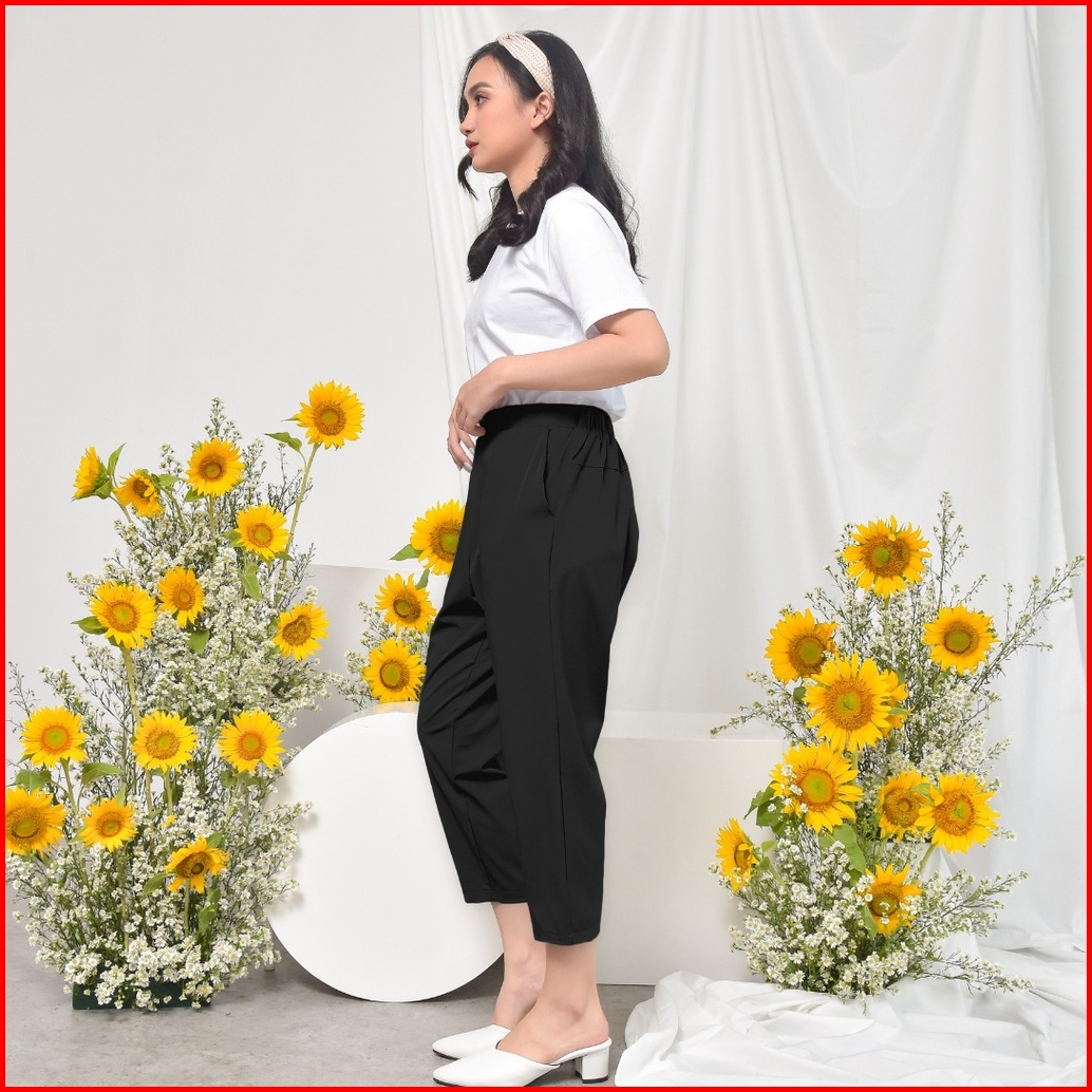 Ie.demode Hyejin Celana Panjang Wanita Jumbo Kerja Kantor Slimfit Daily Pants Bahan Allya Hitam