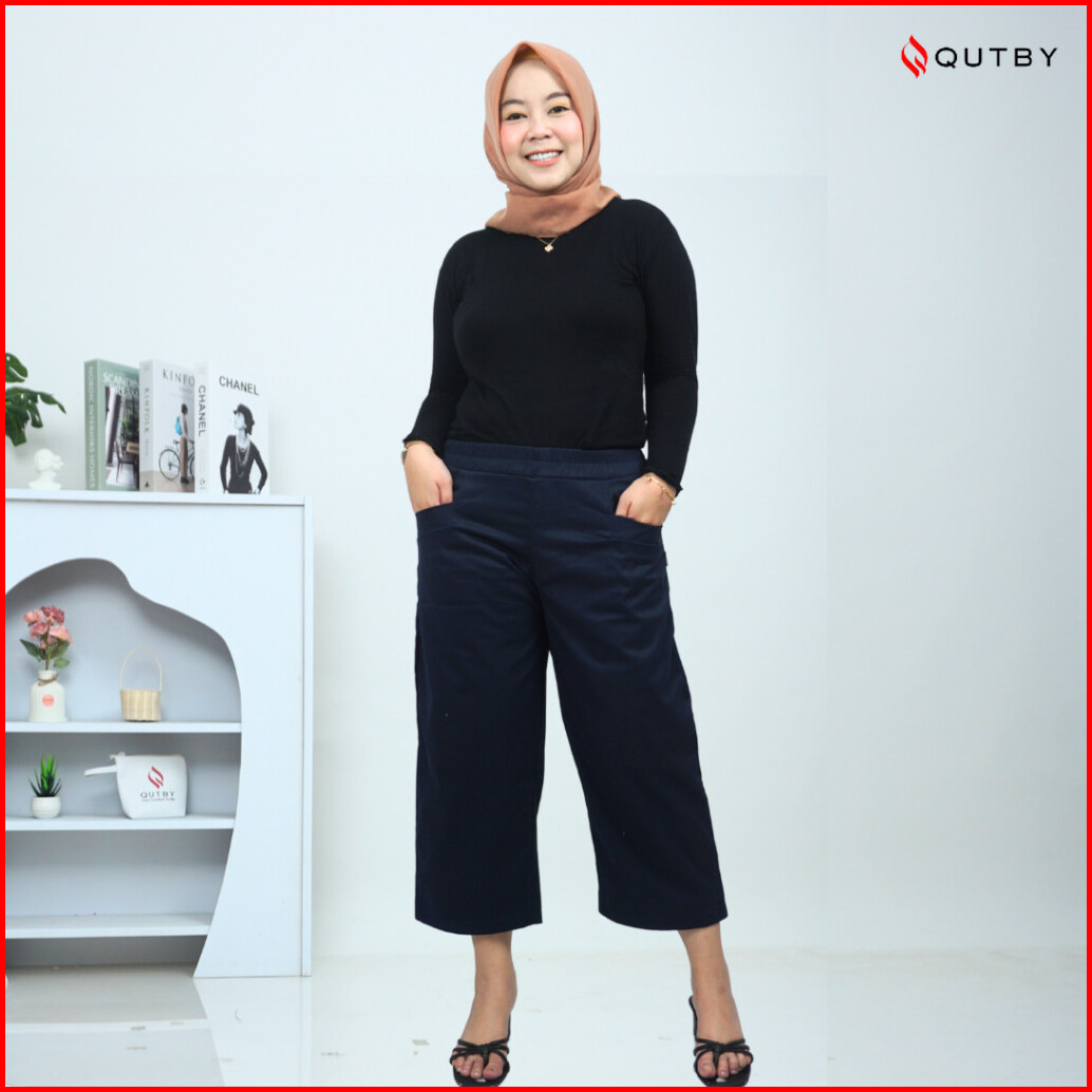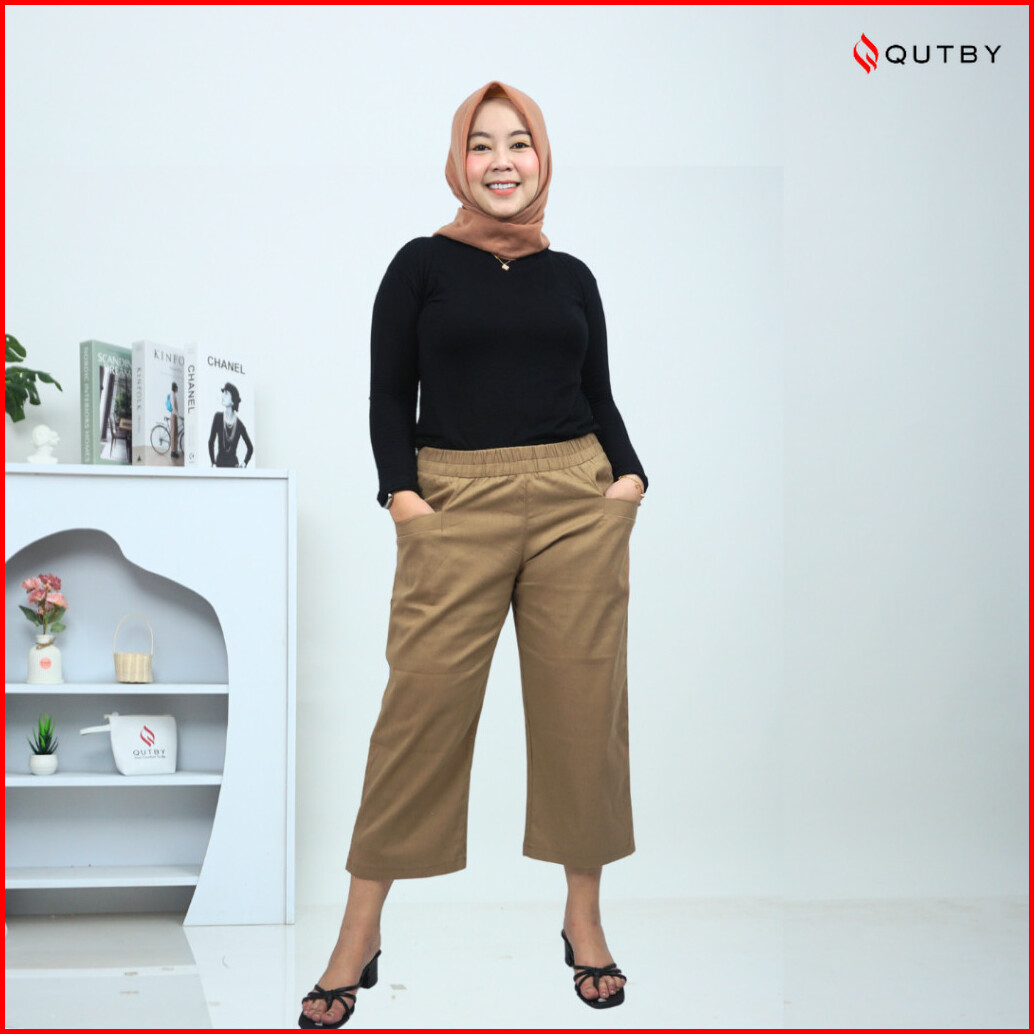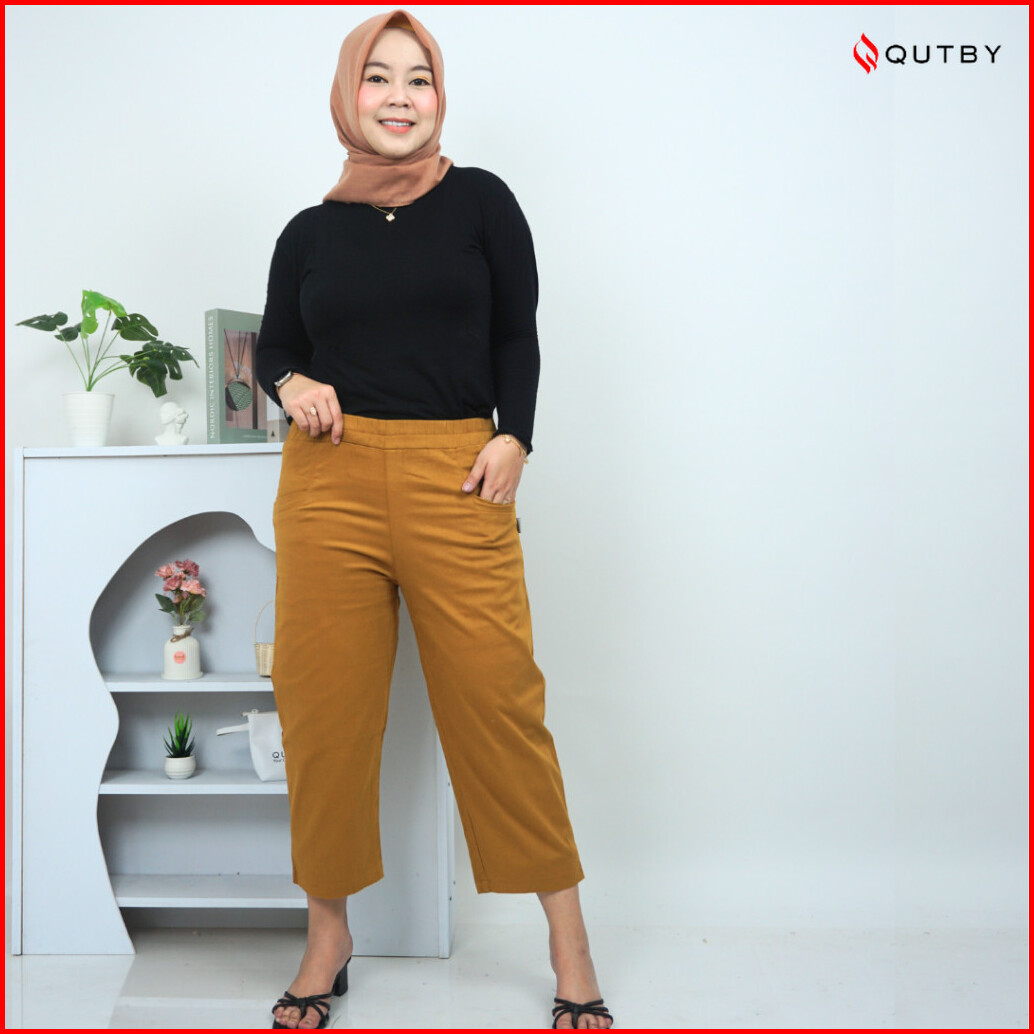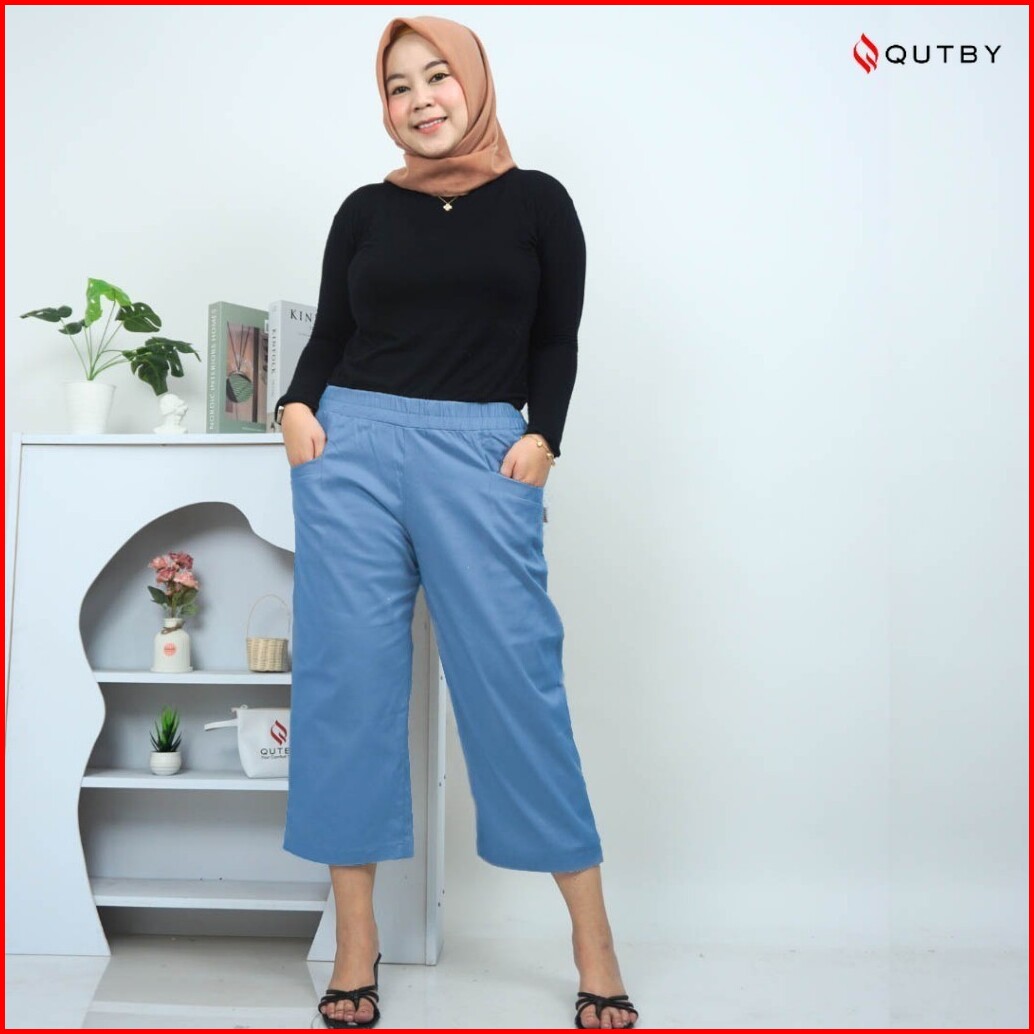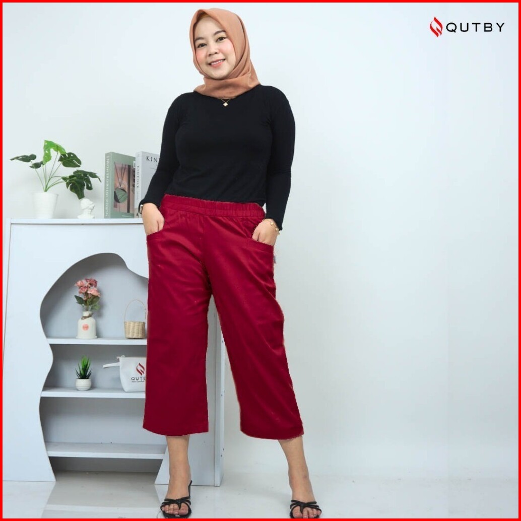 Qutby - Celana Jumbo Wanita Korean Crop Pants Jumbo Panjang