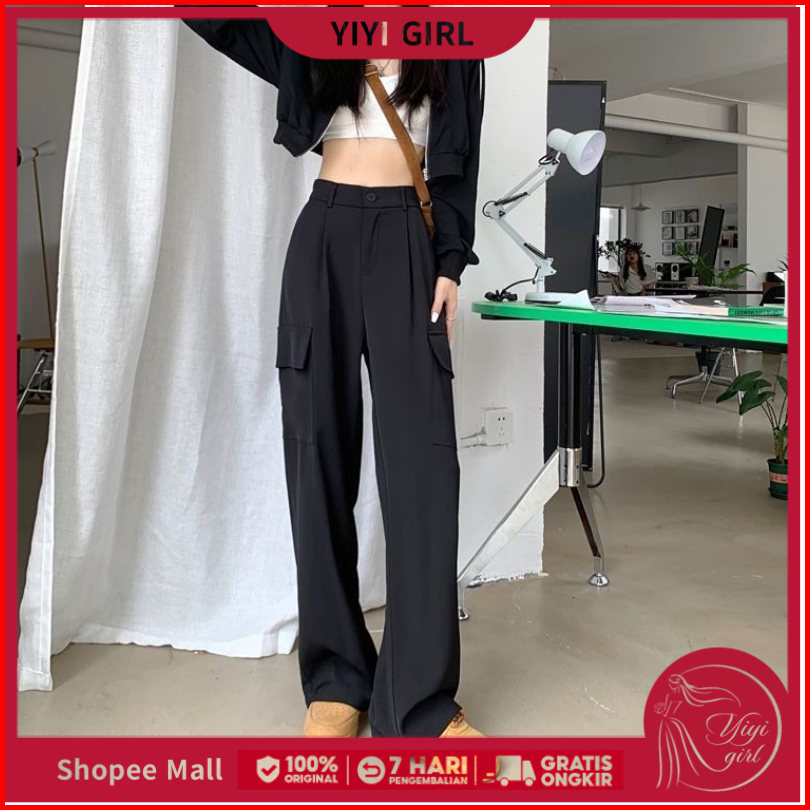Yiyi Girl Celana Kulot Highwaist Baggy Pants Wanita Celana Panjang Wanita