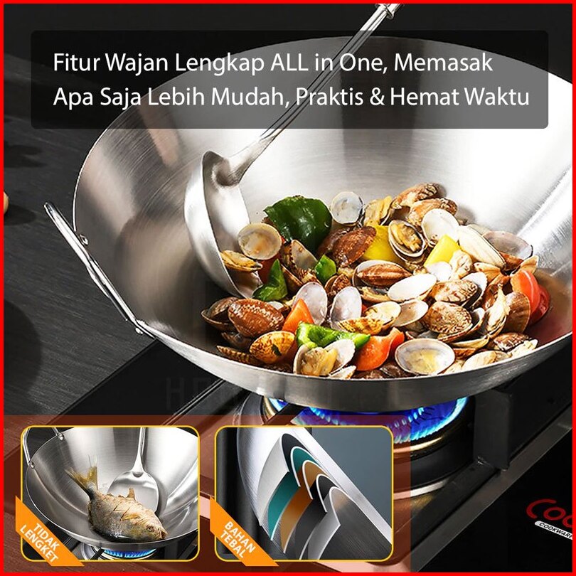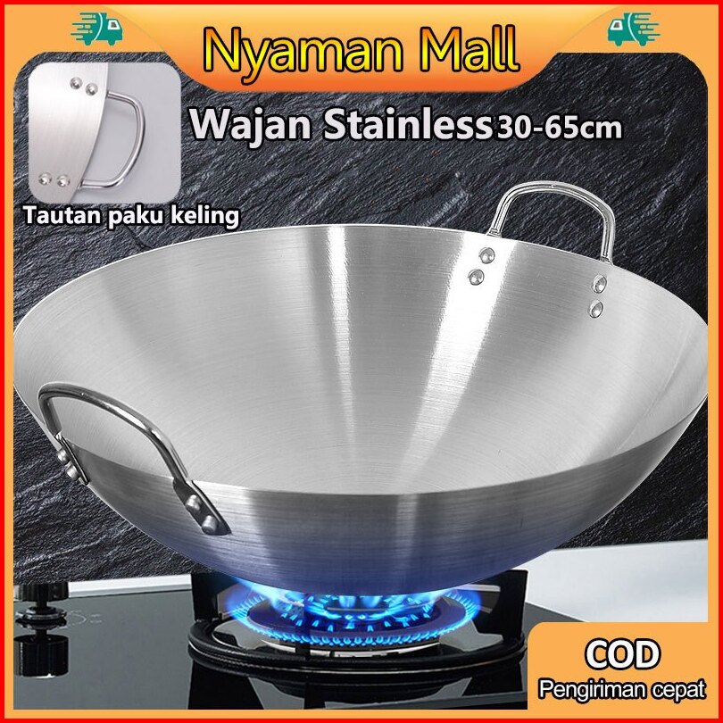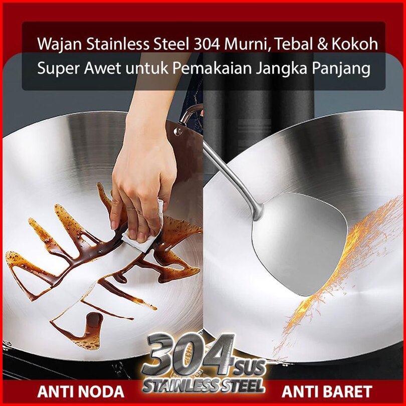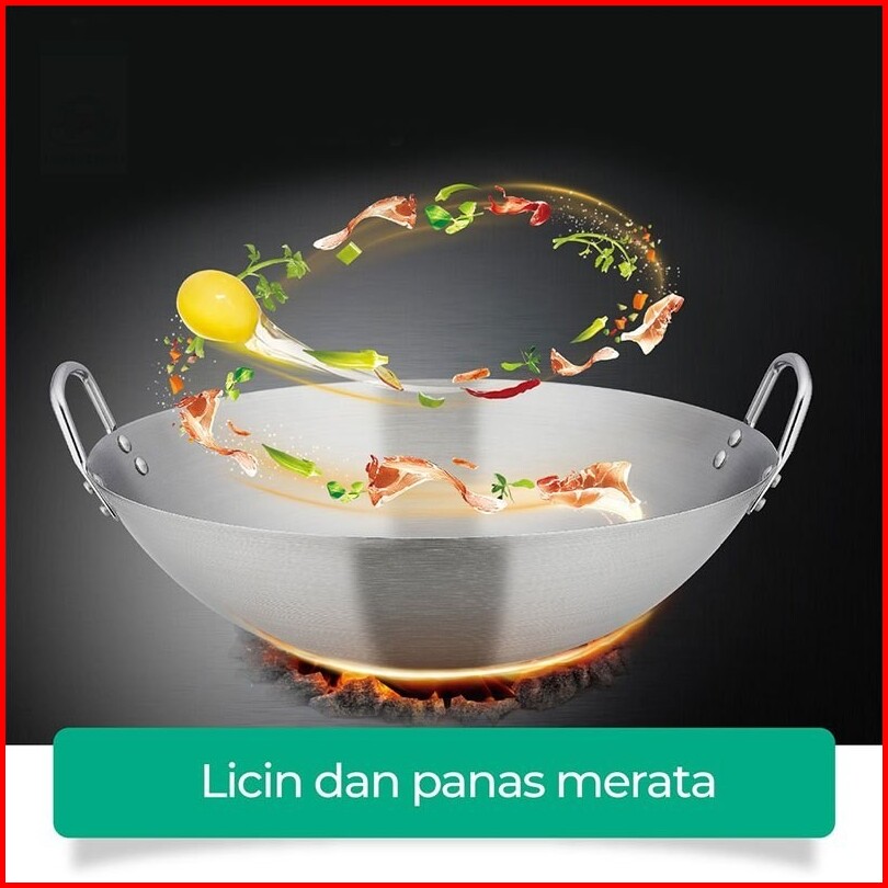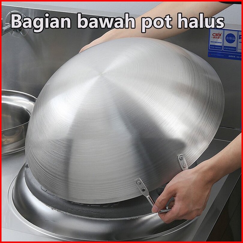 Nyaman Wajan Stainless Steel 555 Besar Katel Anti Lengket Tebal Kuali Premium Dengan Pegangan Kuali