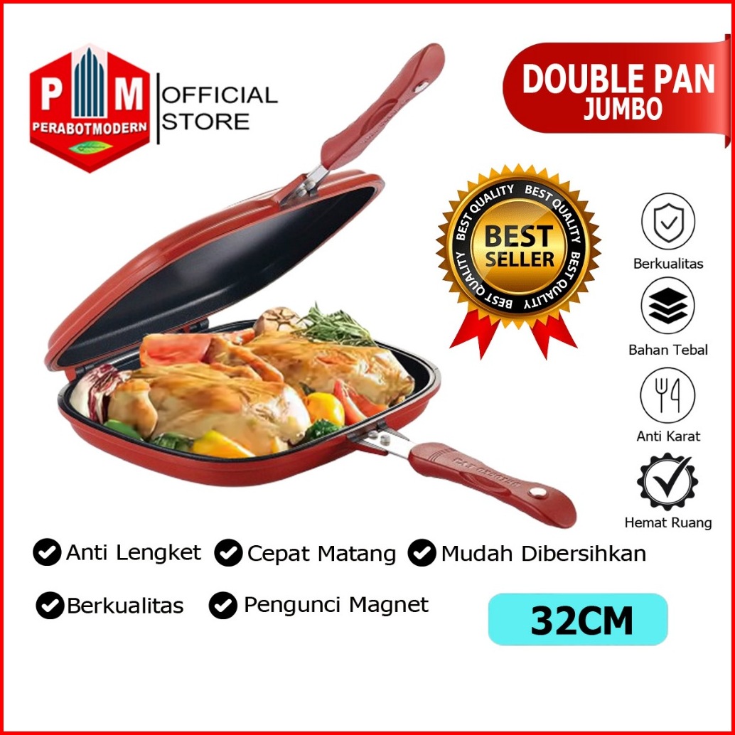 Double Pan Jumbo Original Korea 32cm Wajan Penggorengan Teflon Bolak Balik Anti Lengket