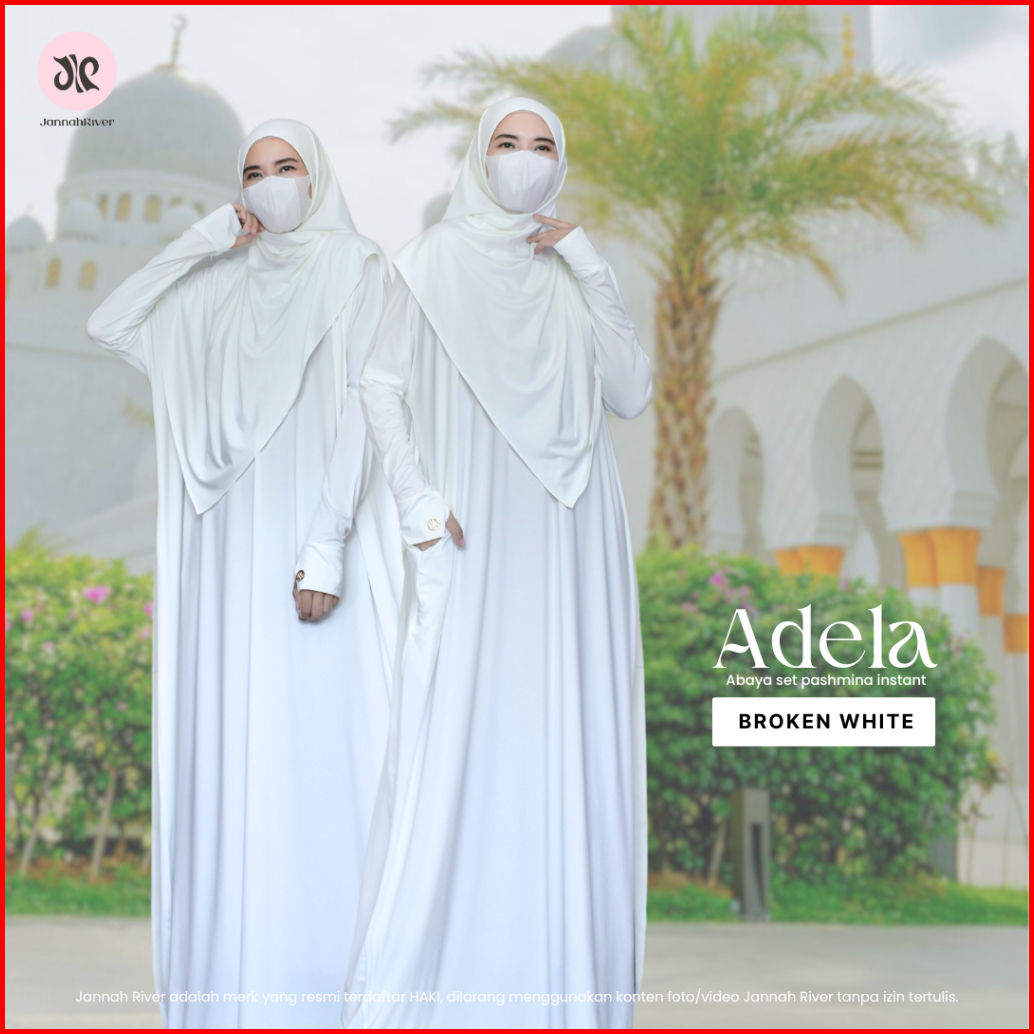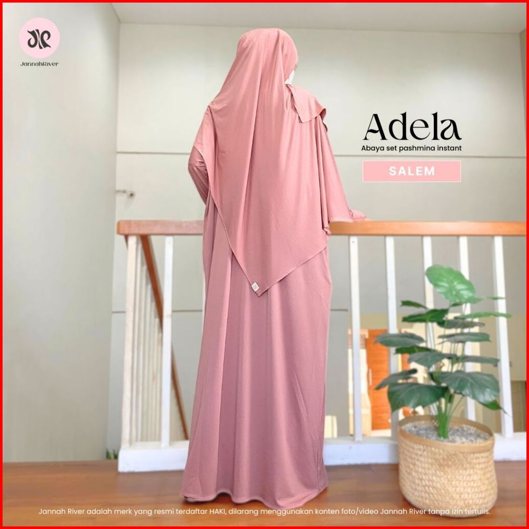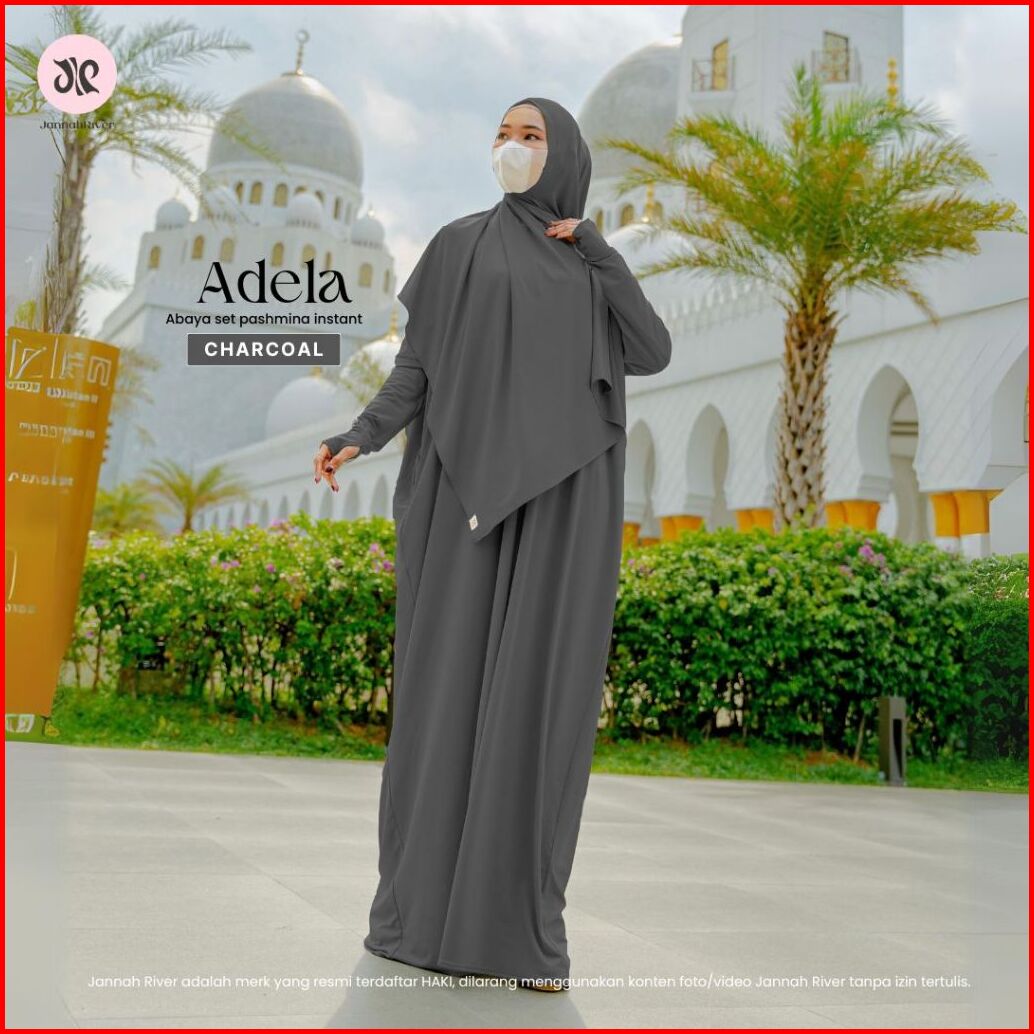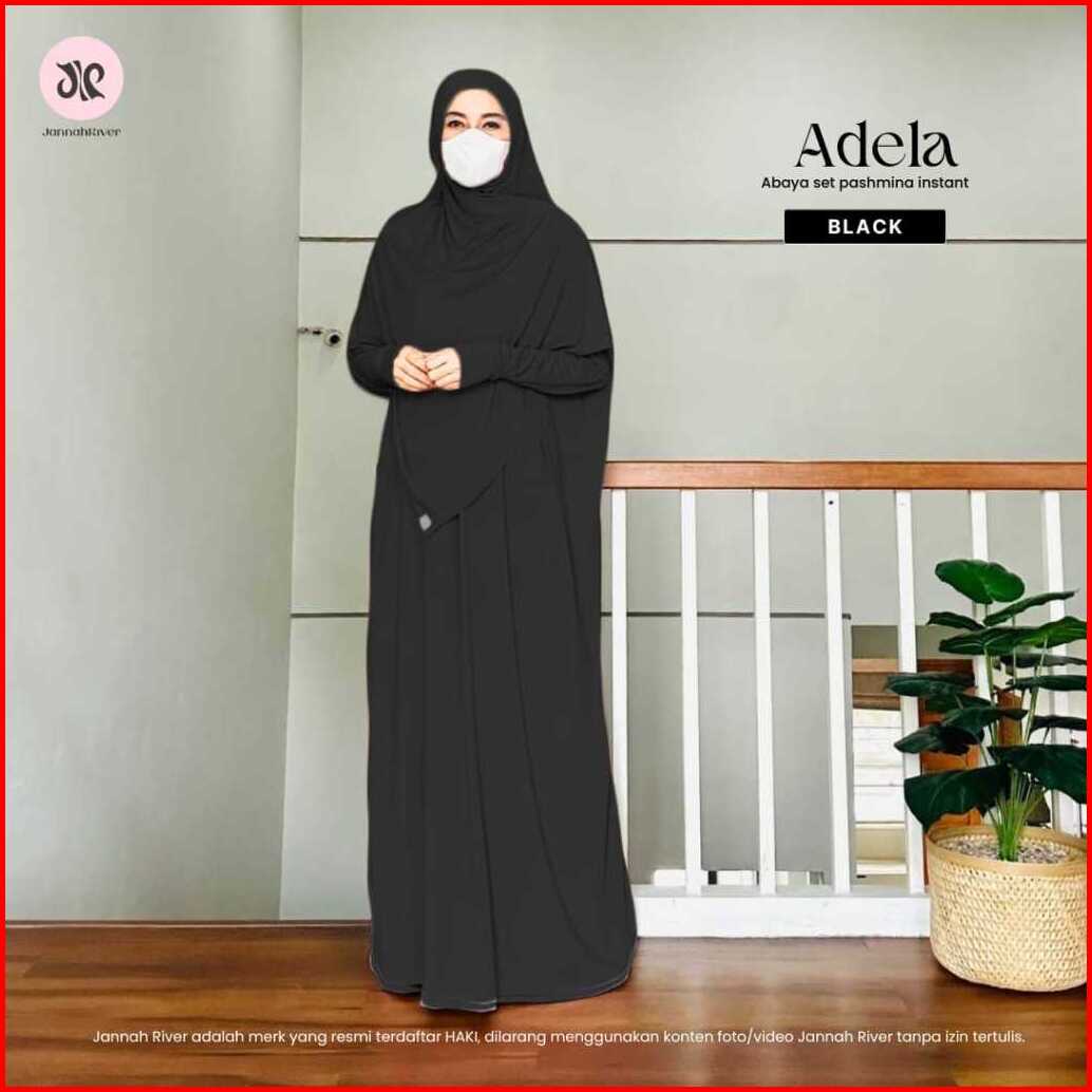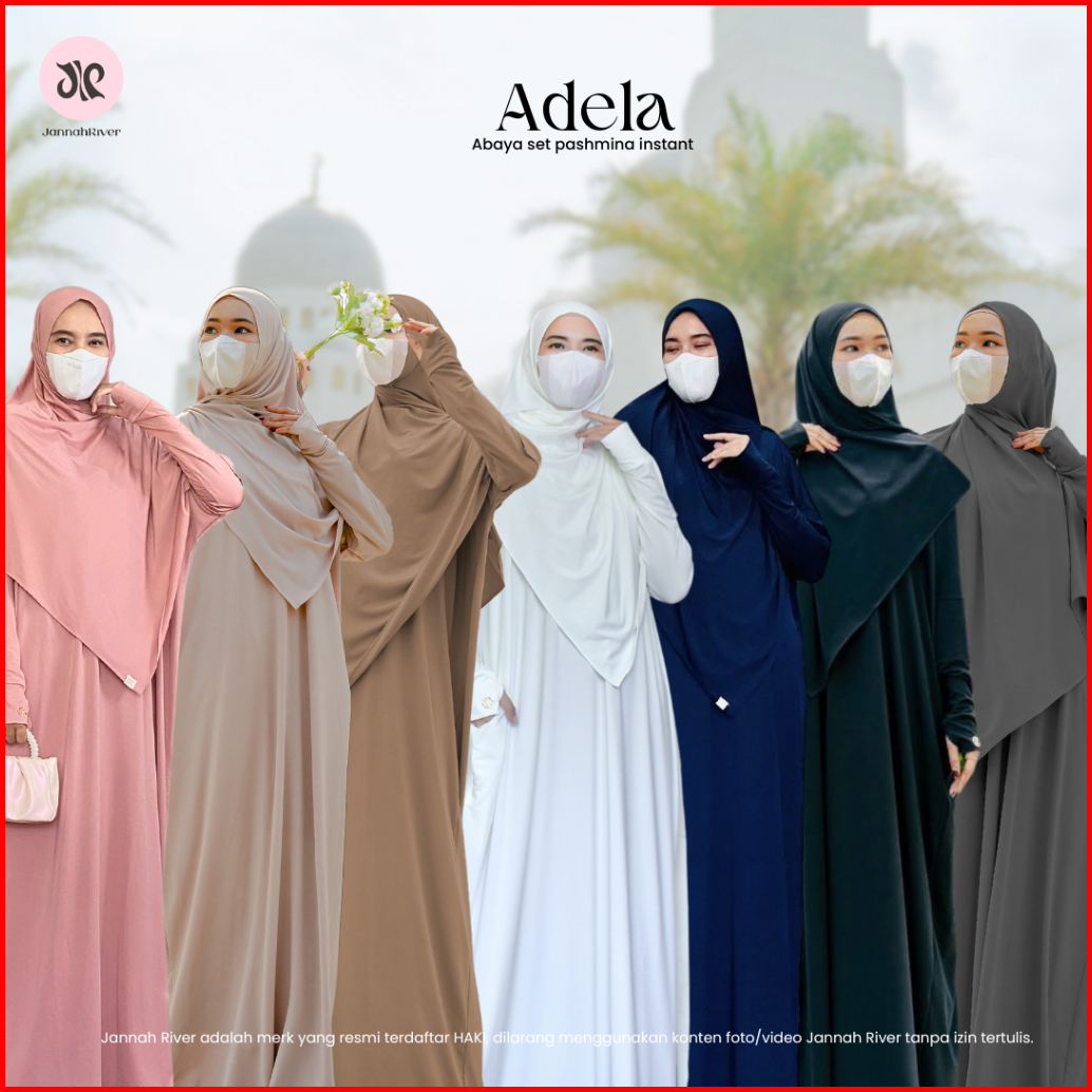 Jannah River Abaya Adela Set Pashmina Gamis Syari Bahan Jersey Korea Adem Nyaman All Size Dress Seragam Haji Umroh