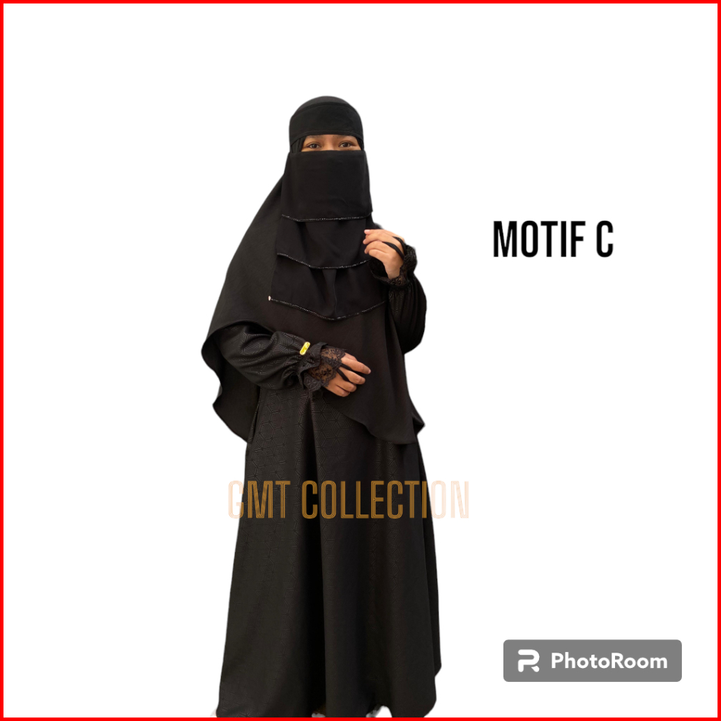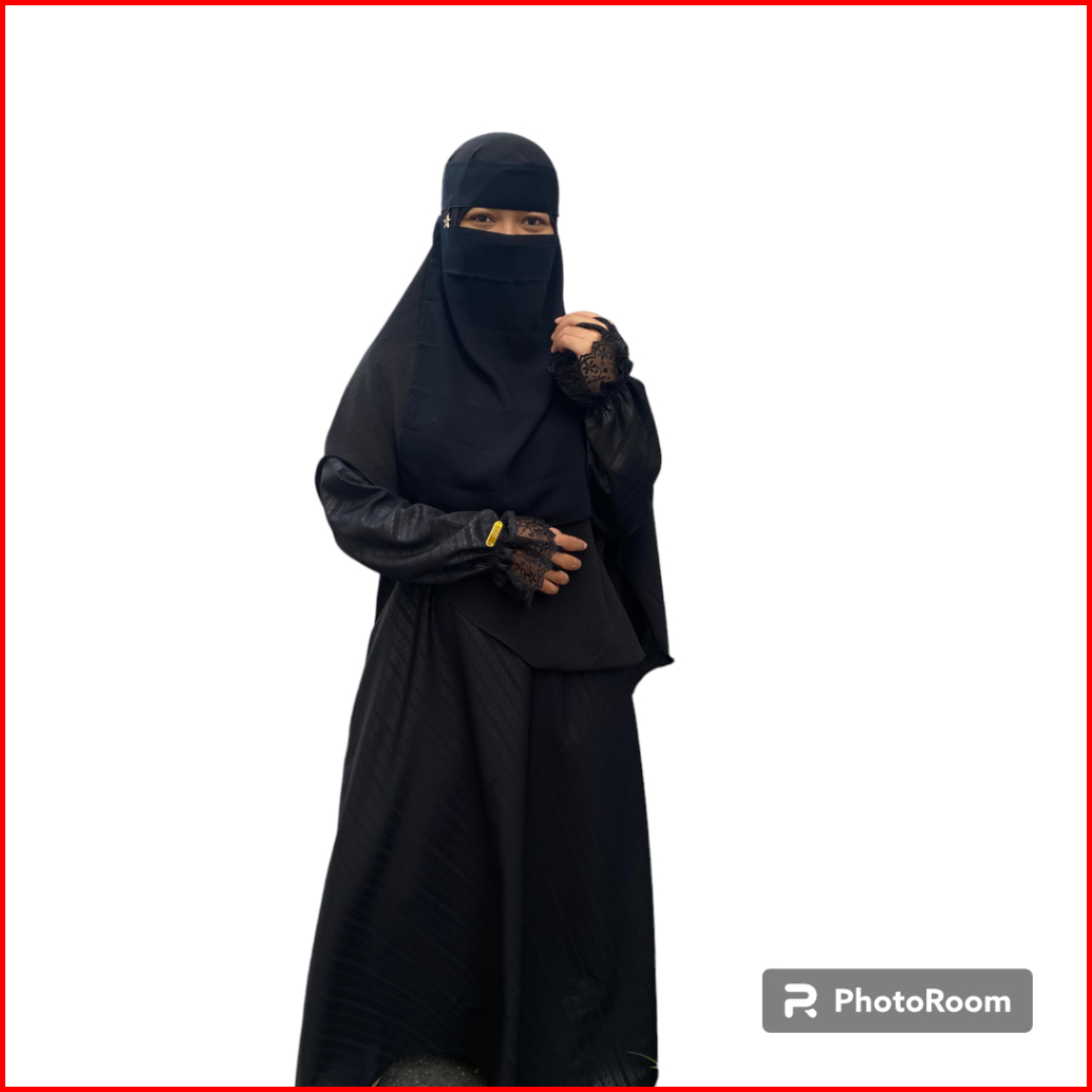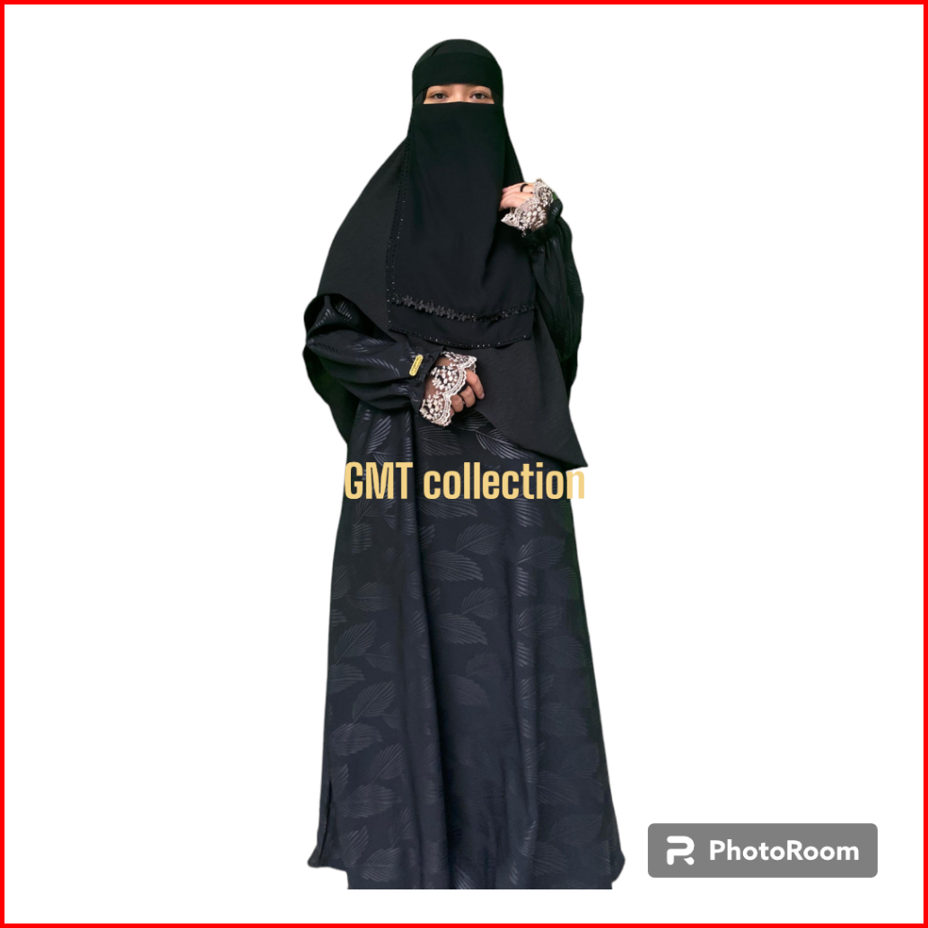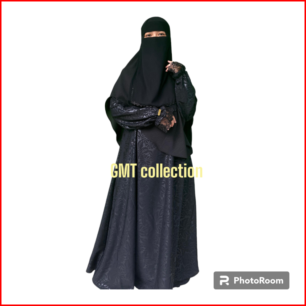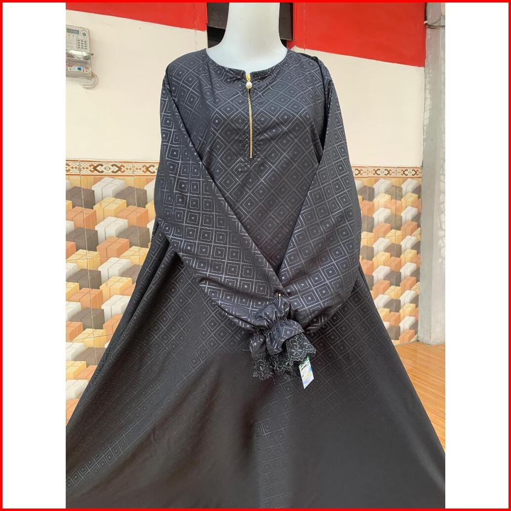 Abaya Embos Full Motif Hitam Elegan By Griya Muslimah Temboro