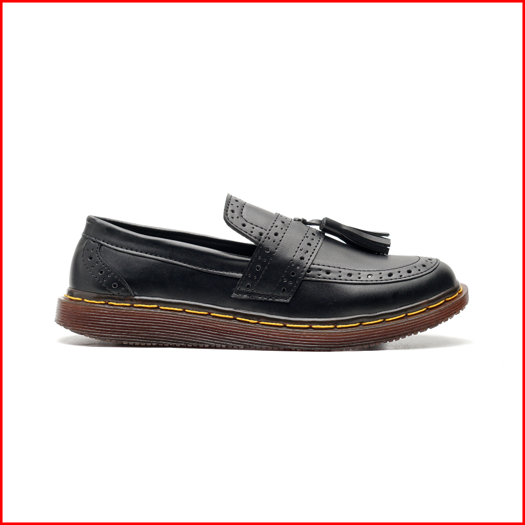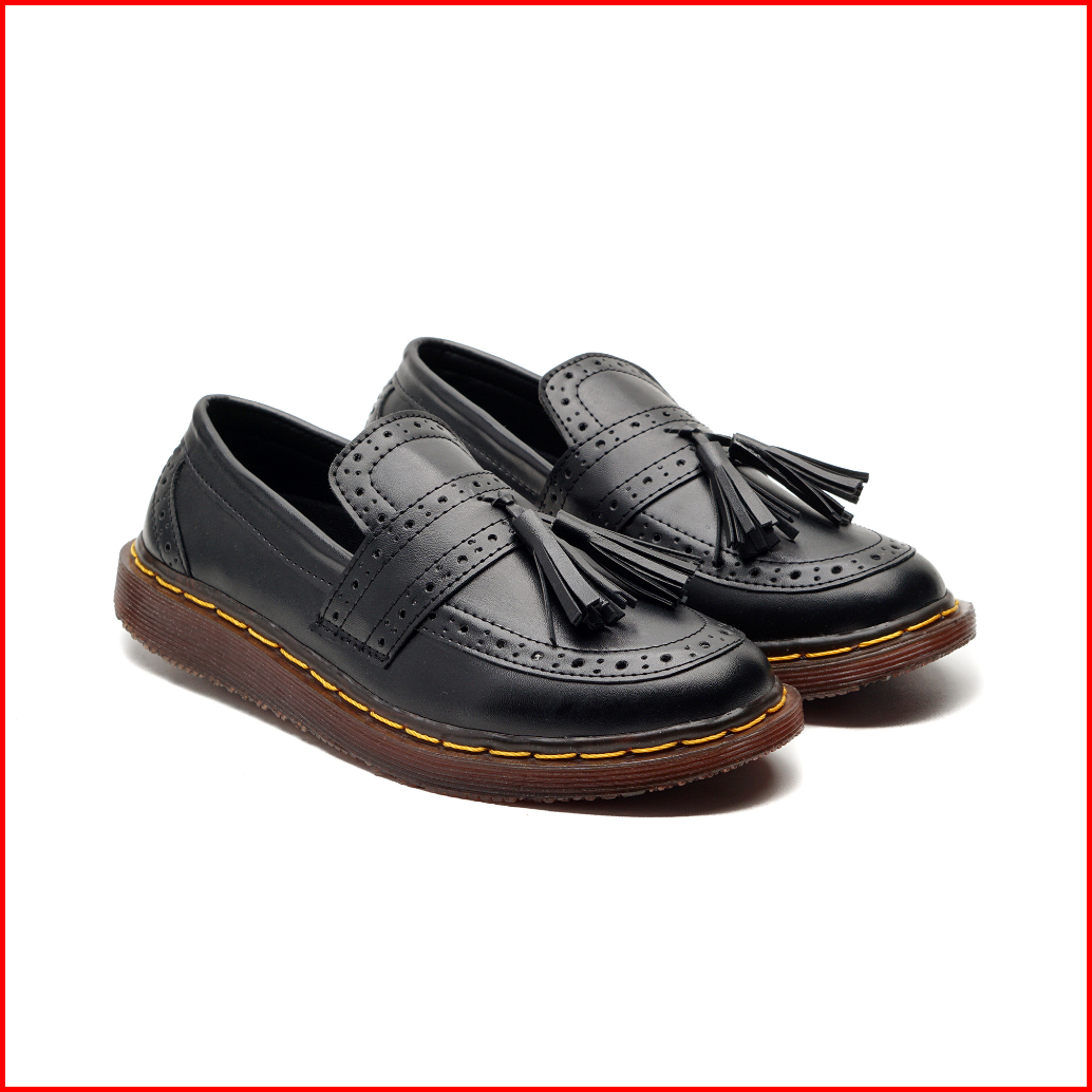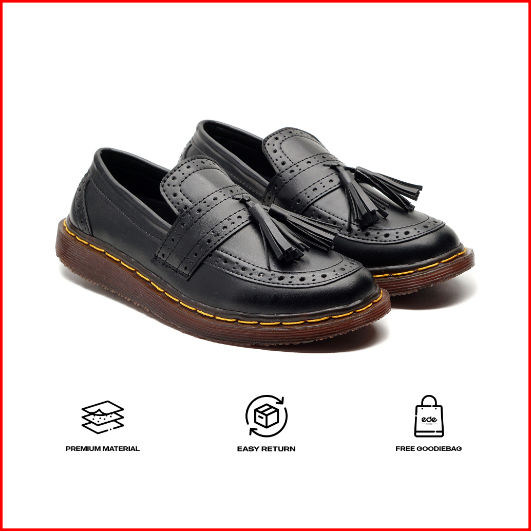 Edefootwear Lexa - Sepatu Slip On Tassel Loafers Kulit Casual Hitam Pria