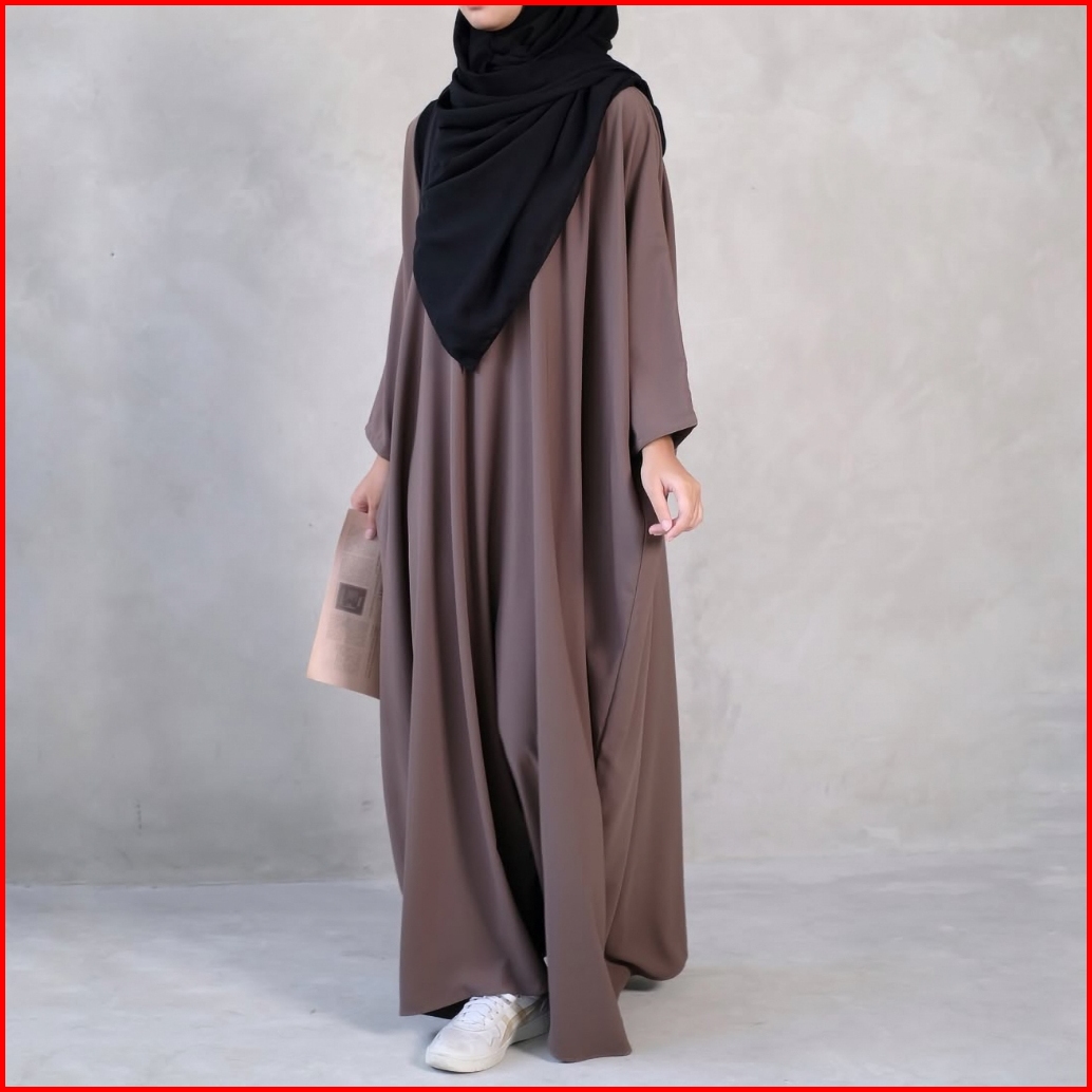 Abaya Only Igayana - Abaya Madina Semi Kaftan Warna Mahogany Gamis Lebaran