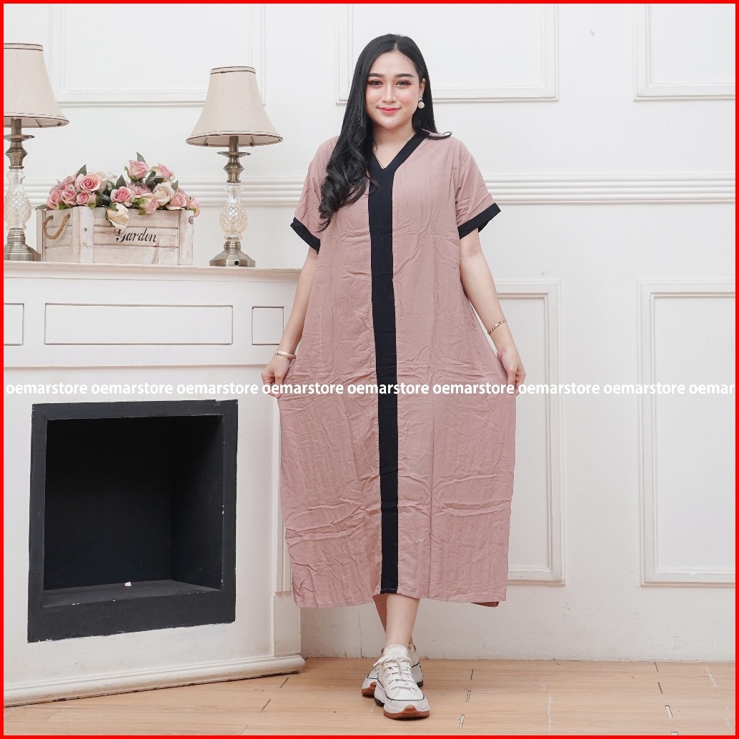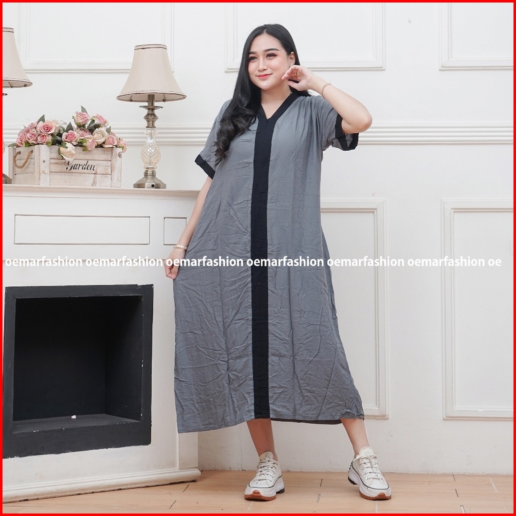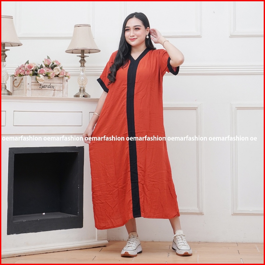 Daster Jumbo Mola Ld 120 Resleting Depan Busui Friendly Motif Polos Lis Hitam