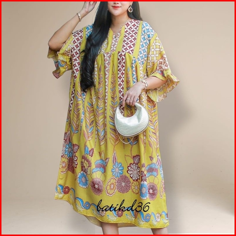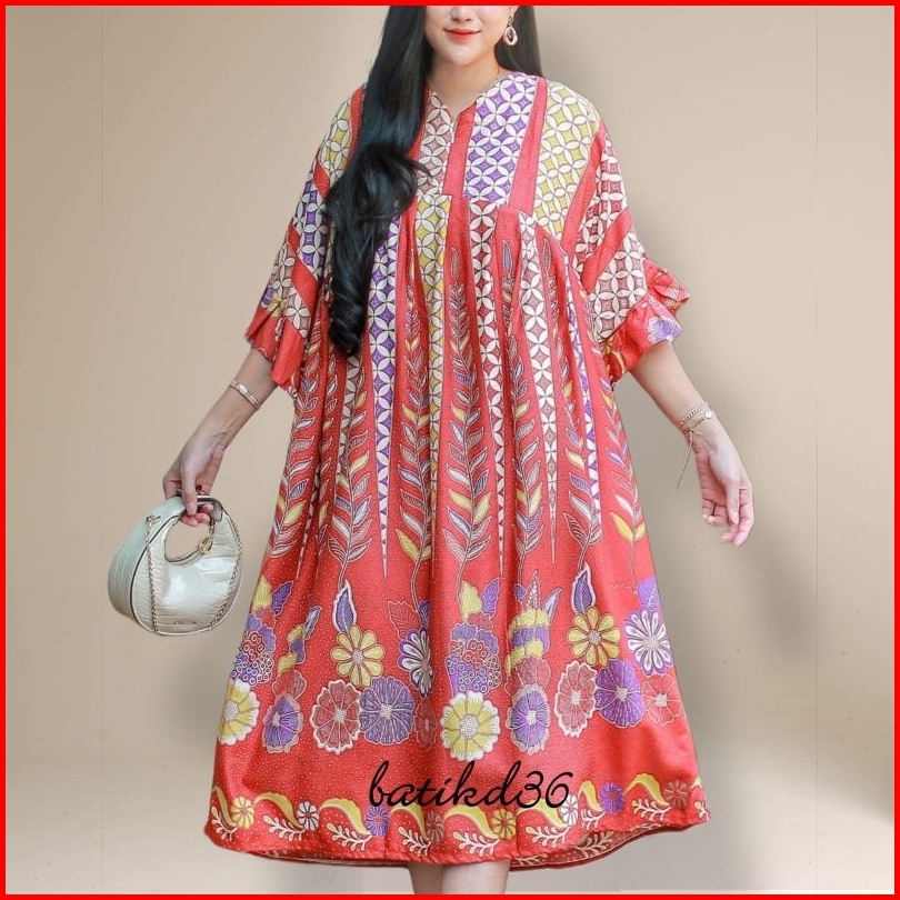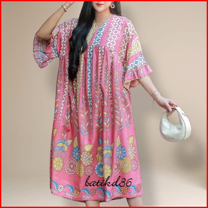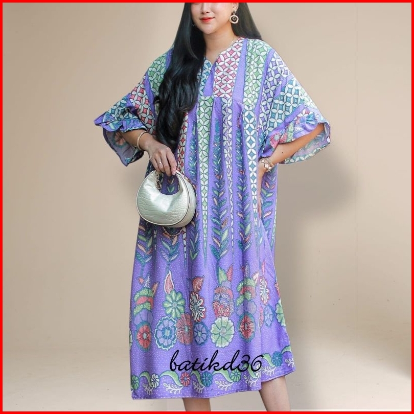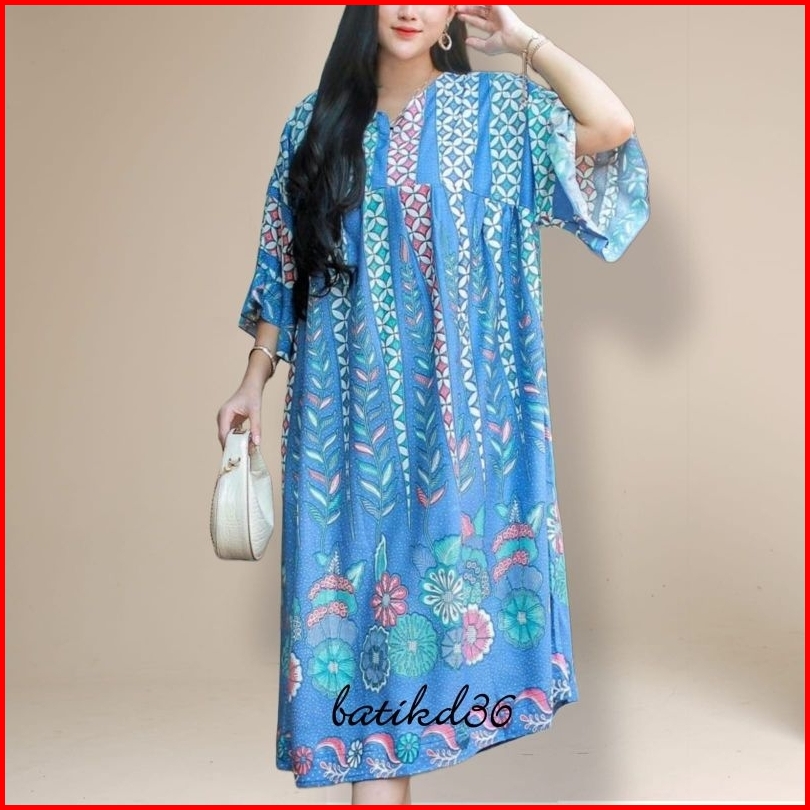 Jessa Ld 130 Baju Tidur Daster Payung Kinasih Rempel Busui Rayon Premium Jumbo Lengan Pendek Motif Bunga Kawung Classic