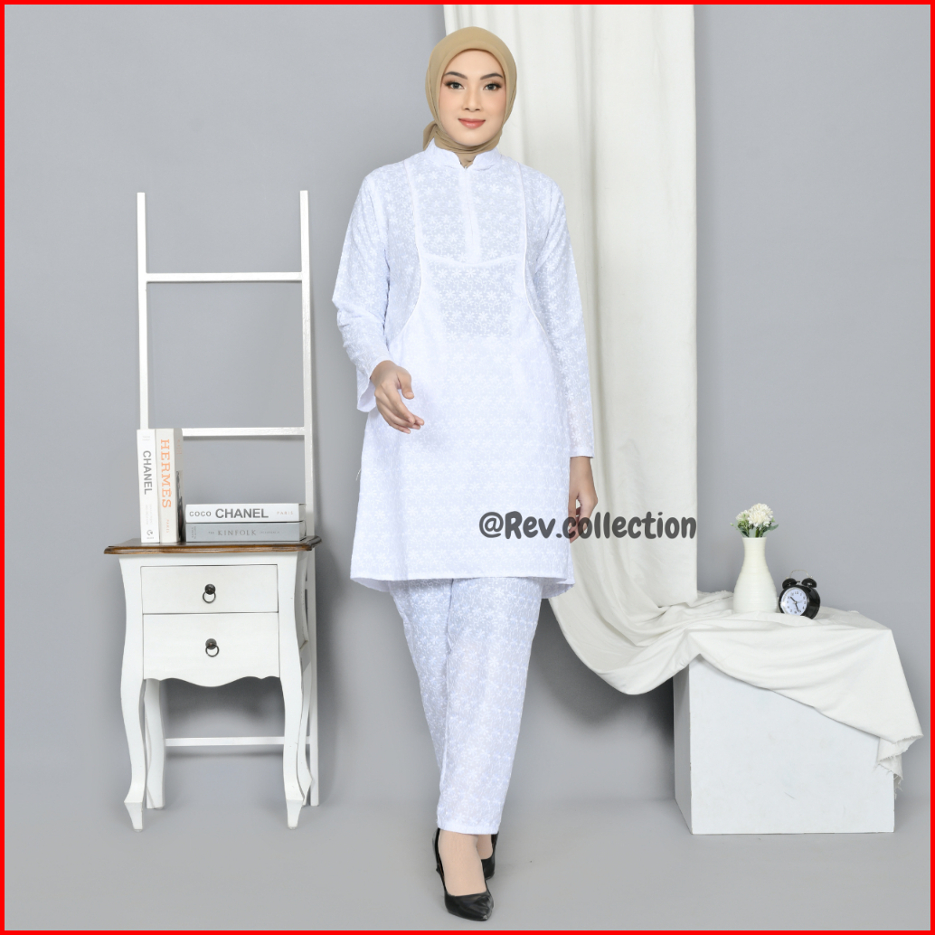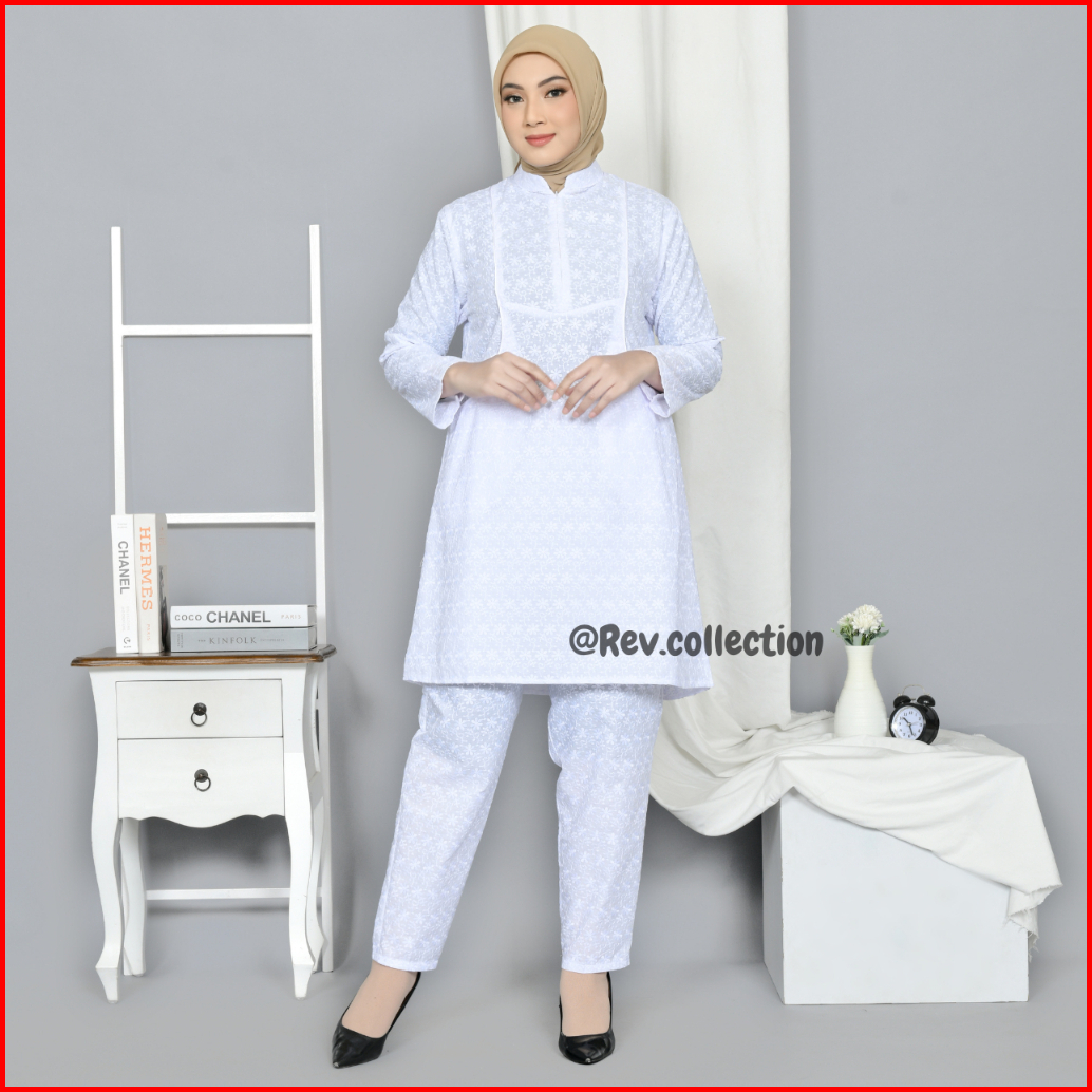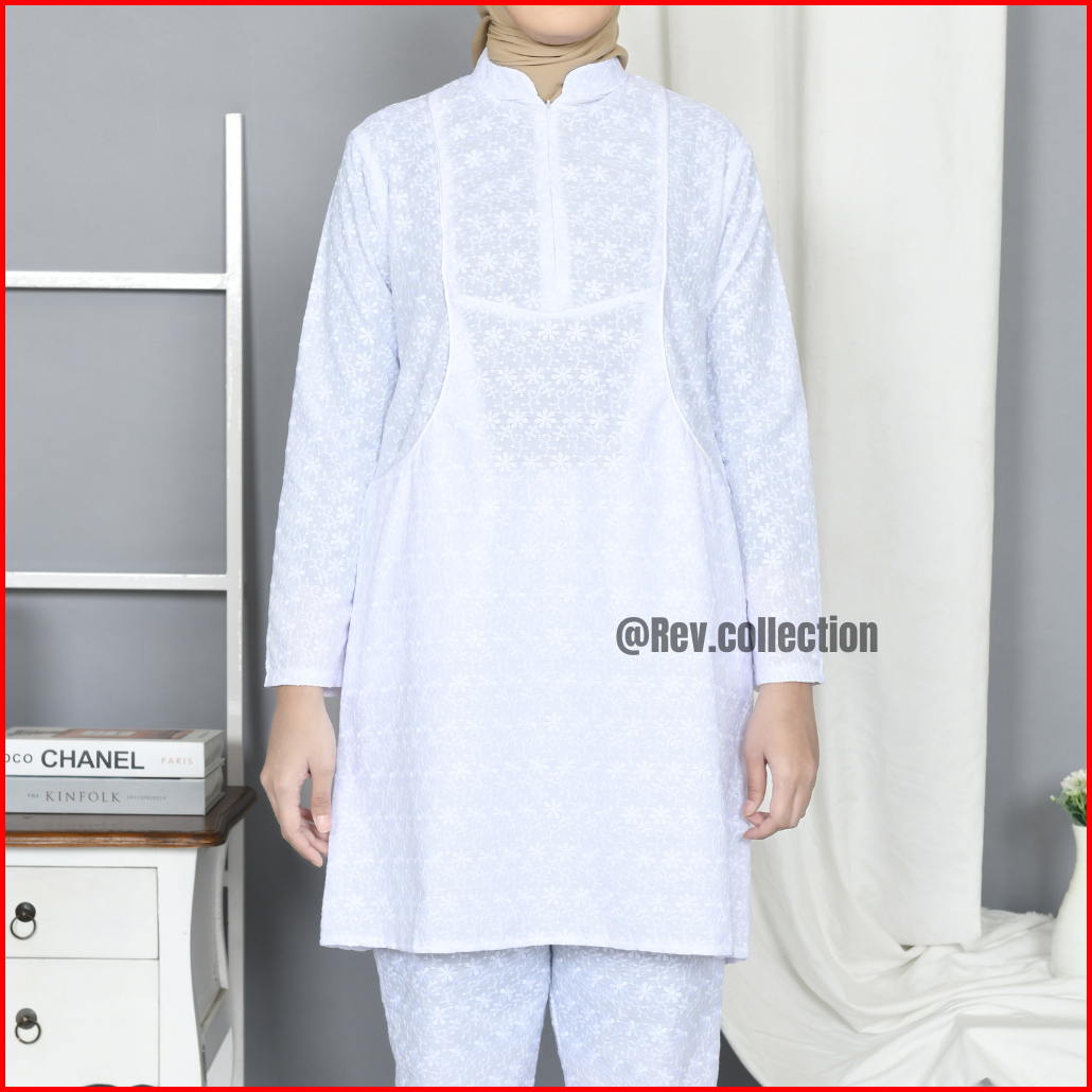 Setelan Umroh Haji Wanita Full Bordir Katun India Adem Nyaman Ibadah