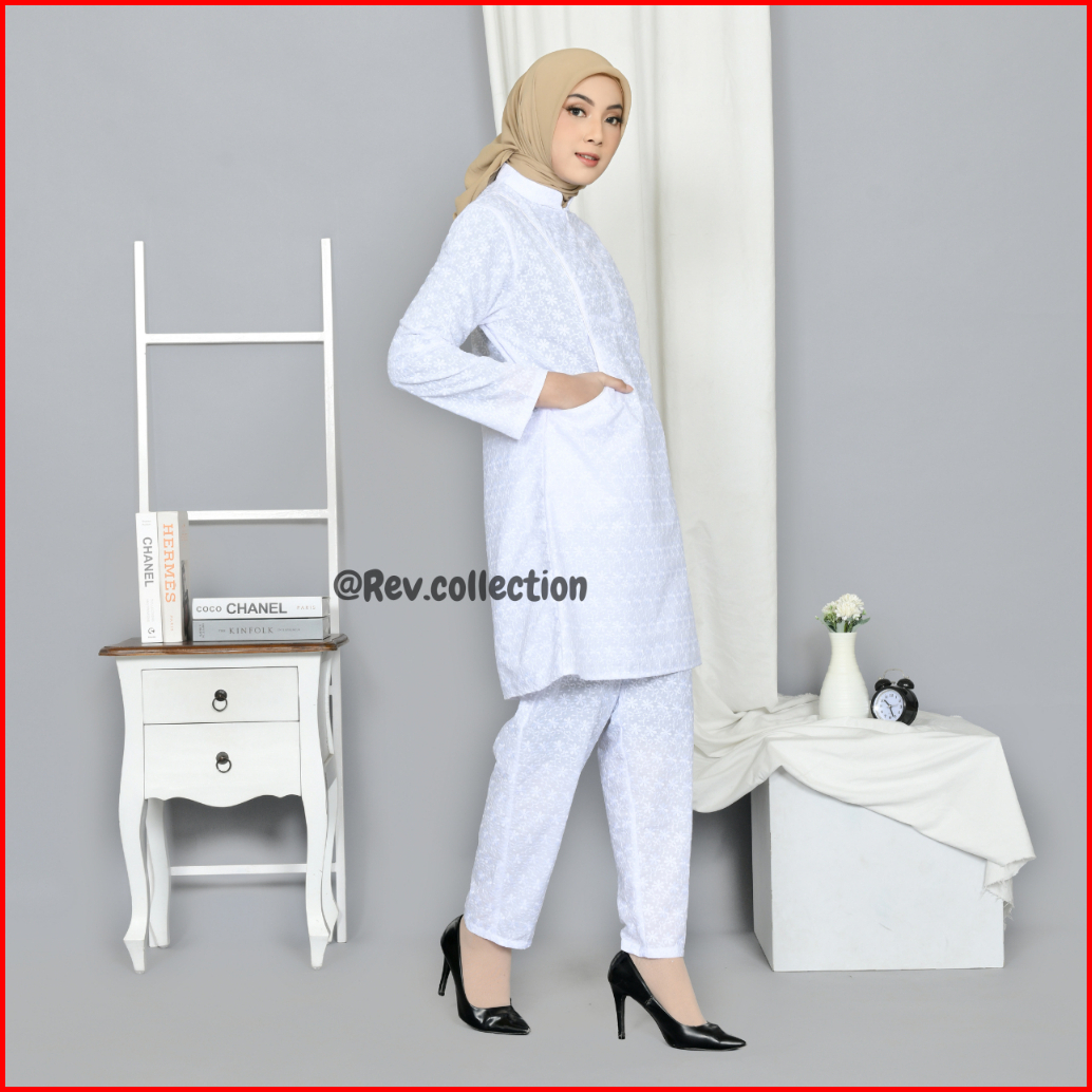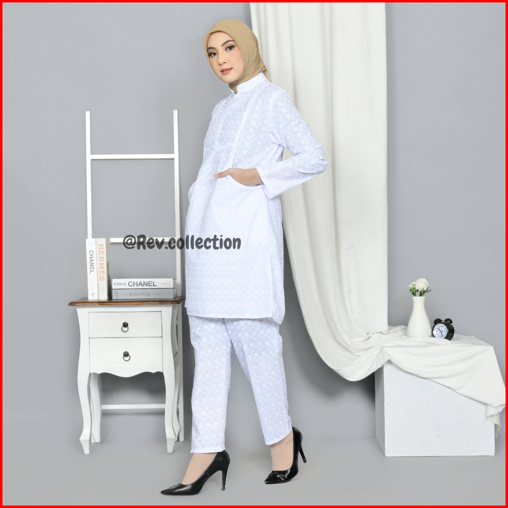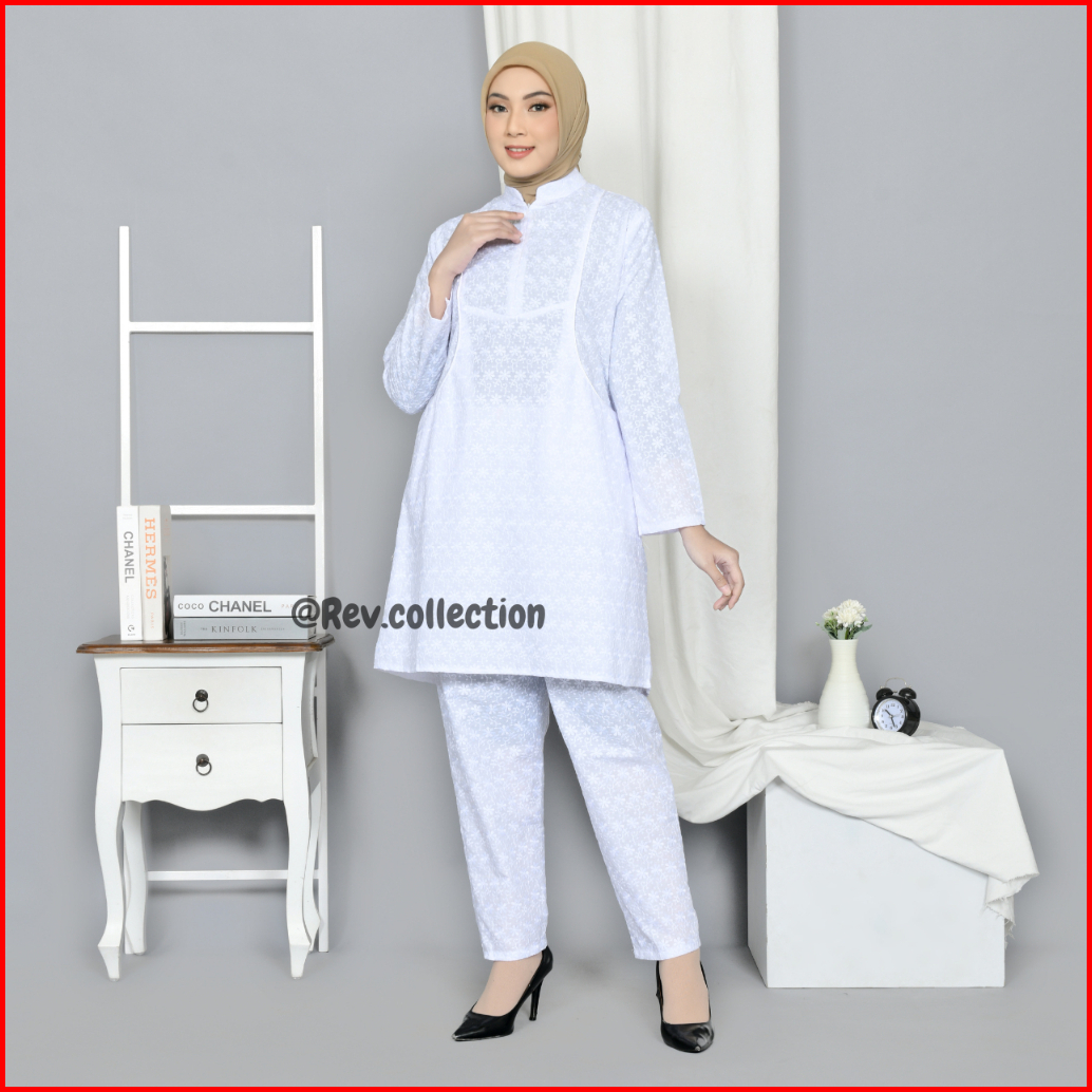 Setelan Umroh Haji Wanita Full Bordir Katun India Adem Nyaman Ibadah