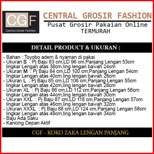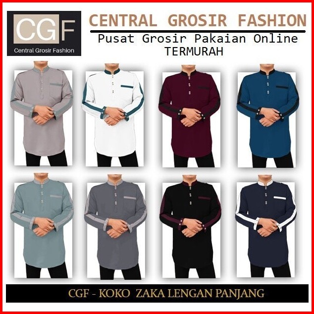 Koko Zaka Lengan Panjang - Central Grosir Fashion Cgf - Ukuran S-3xl - Matt Katun Toyobo - Baju Koko Qurta Pria - Baju K