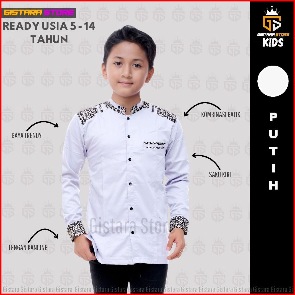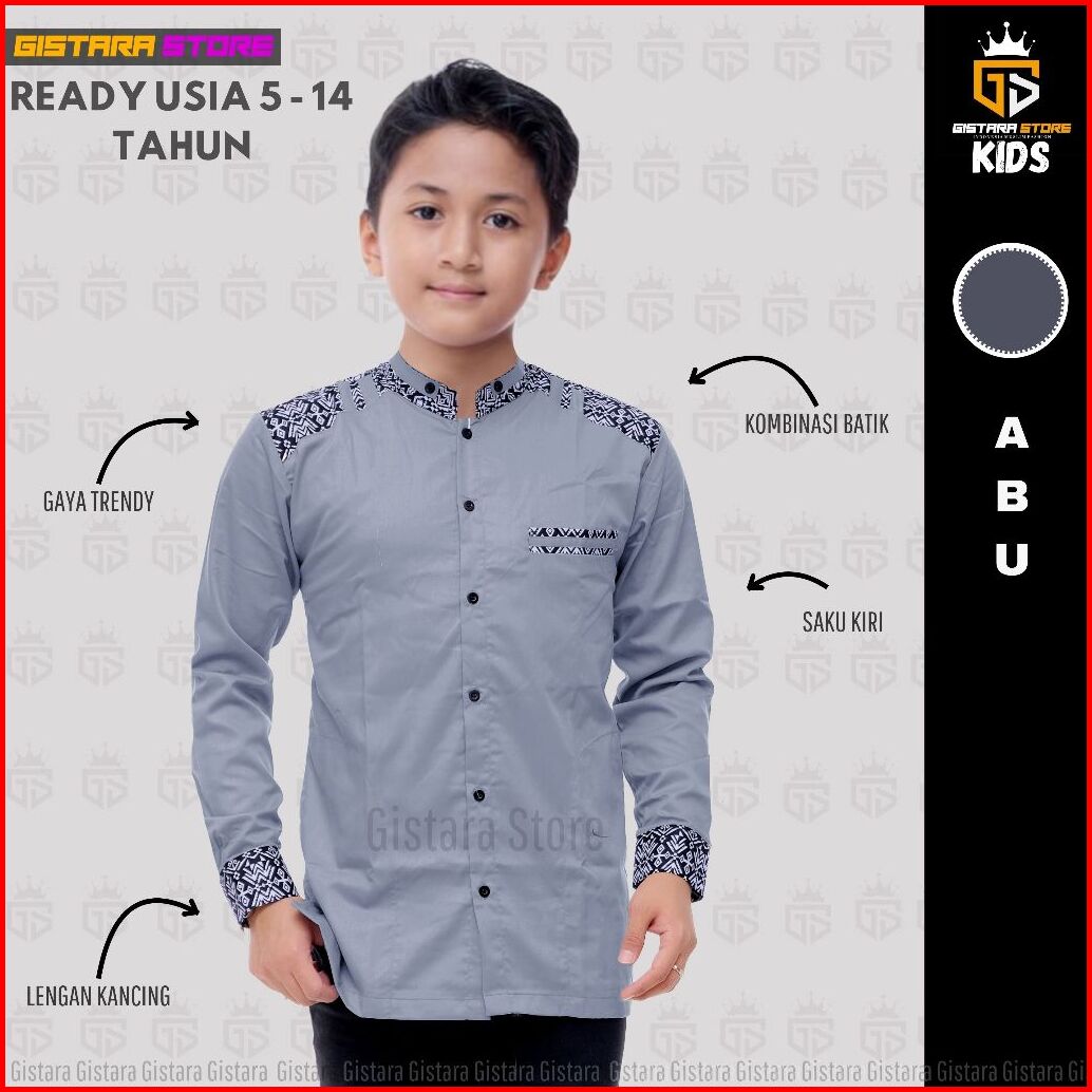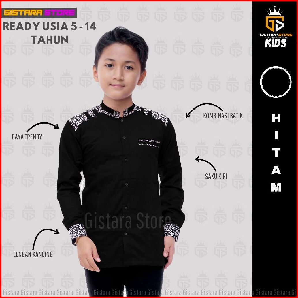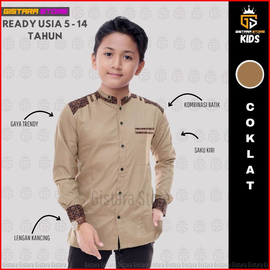 Baju Atasan Kemeja Koko Anak Lengan Panjang Kombinasi Batik Umur 5 Sampai 14 Tahun Terbaru Warna Hitam Putih Coklat Abu