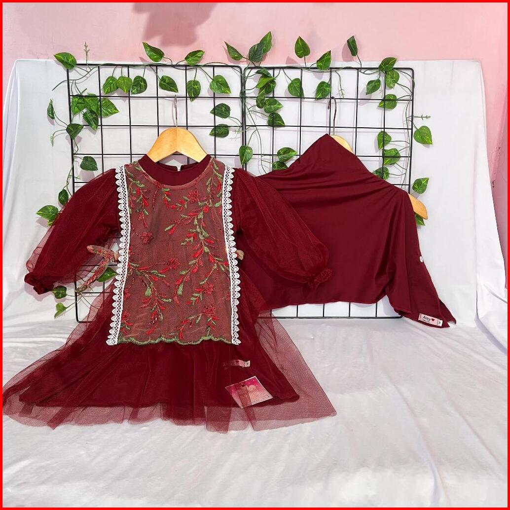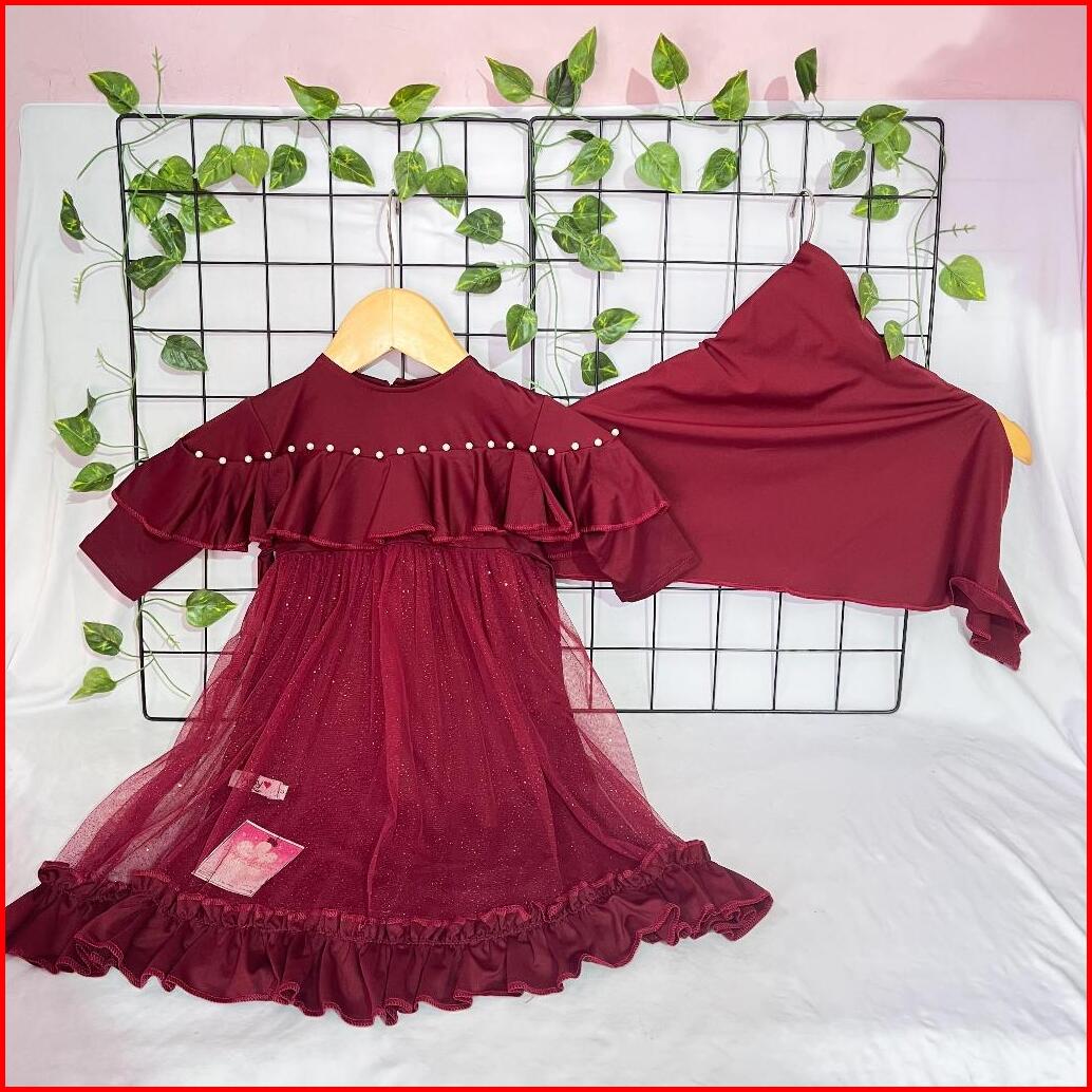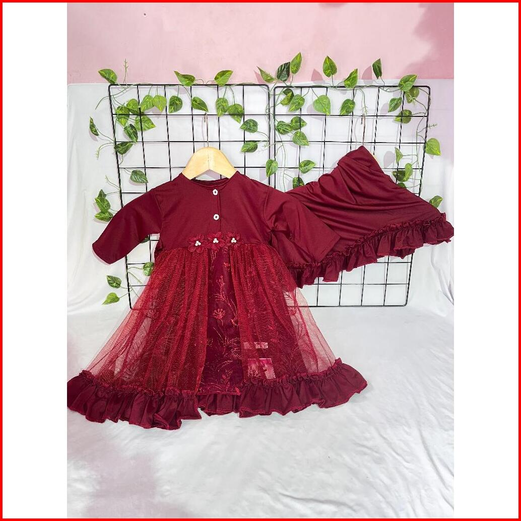 Gamis Anak Aisy Set Hijab Marun Series Usia 0-5 Tahun