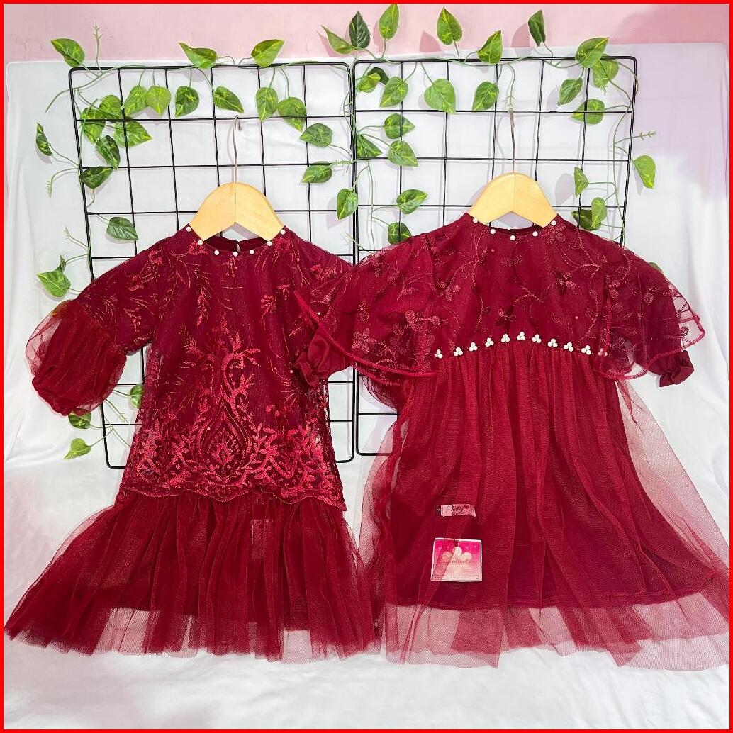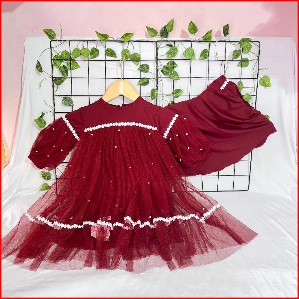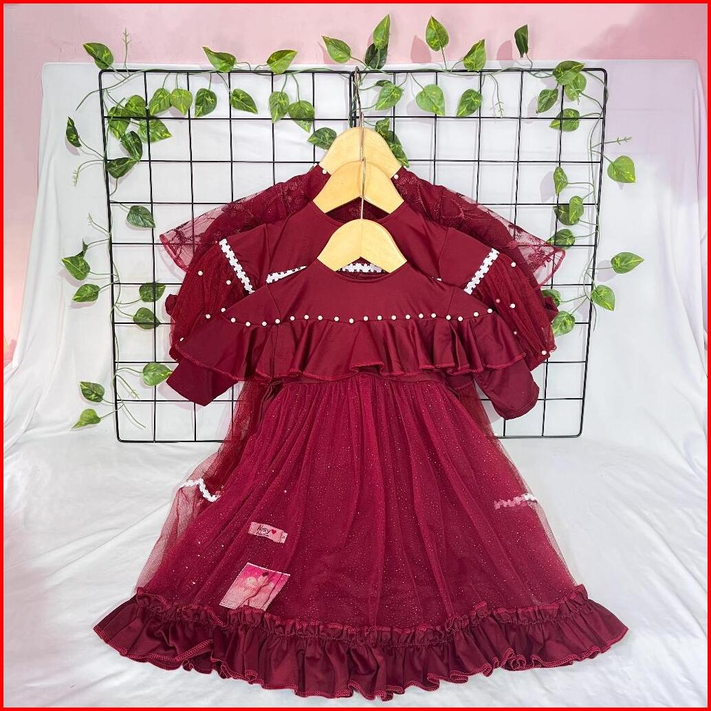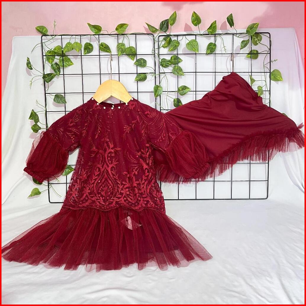 Gamis Anak Aisy Set Hijab Marun Series Usia 0-5 Tahun