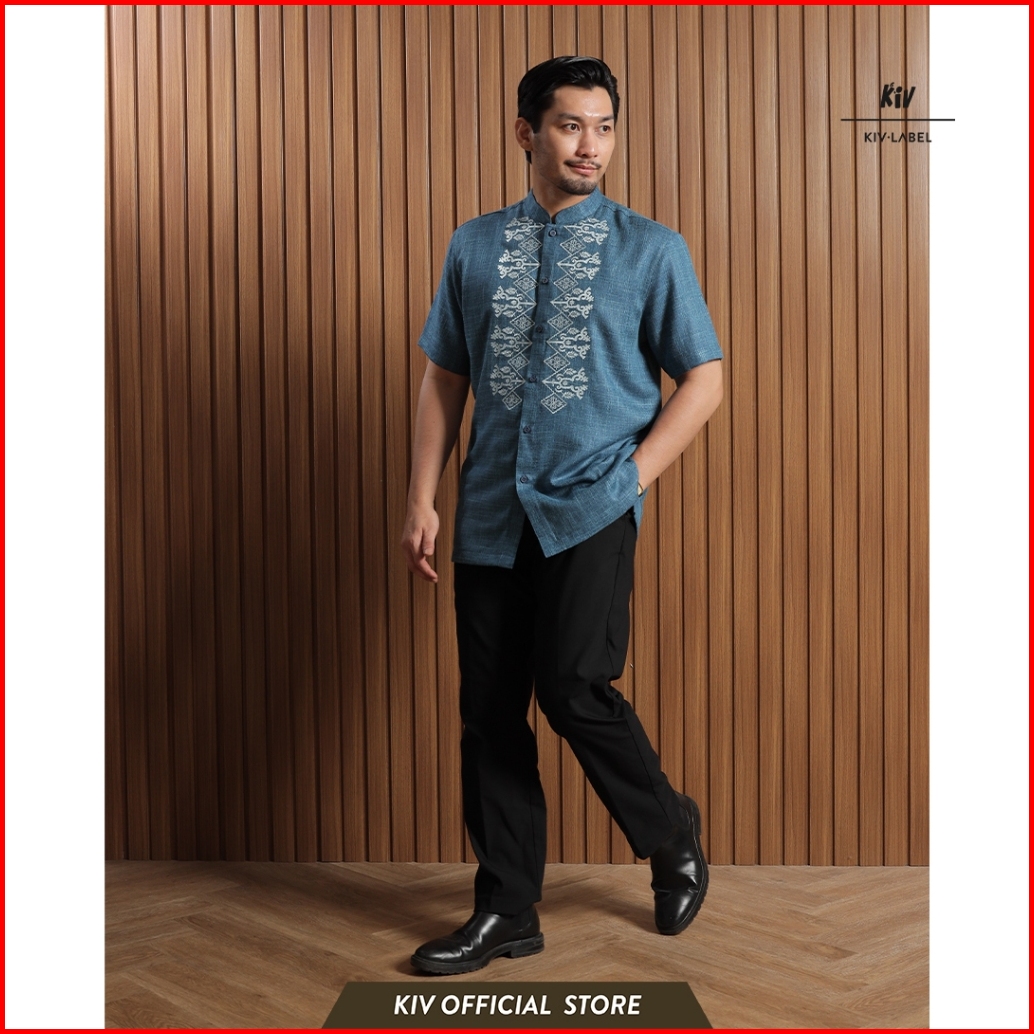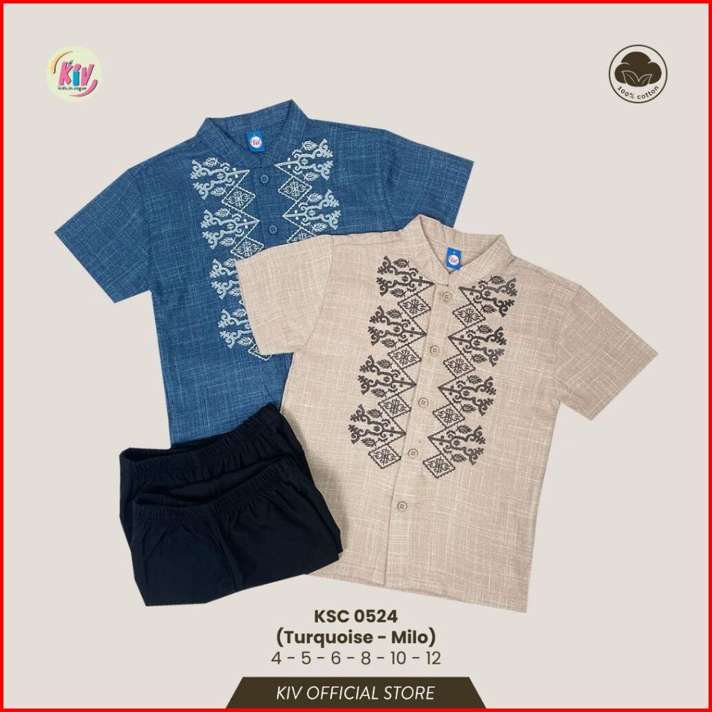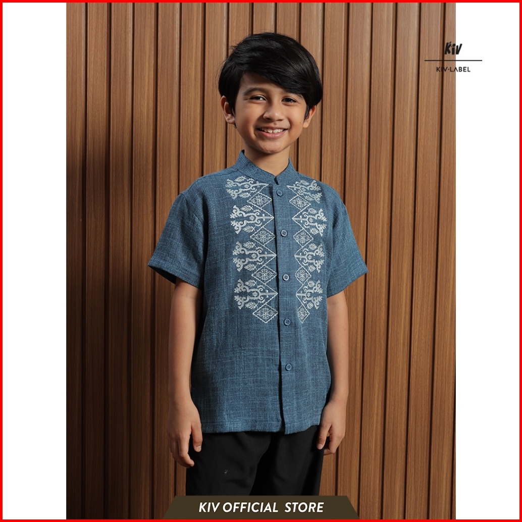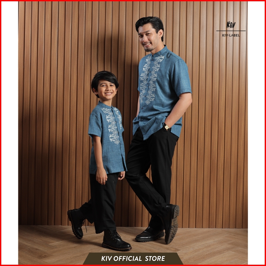 Kiv Baju Kemeja Koko Couple Anak Ayah Muslim Bordir Navy Milo Brown Ksc 0524 Kkl 0524