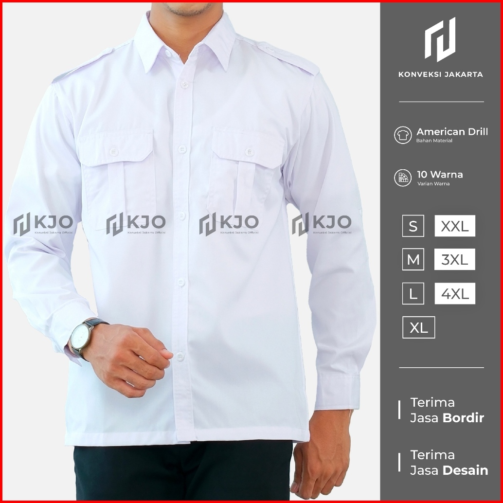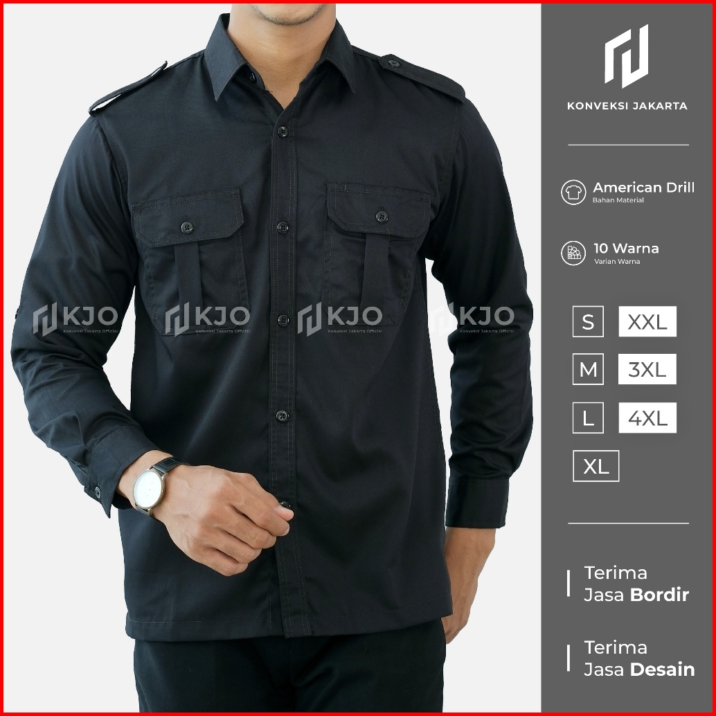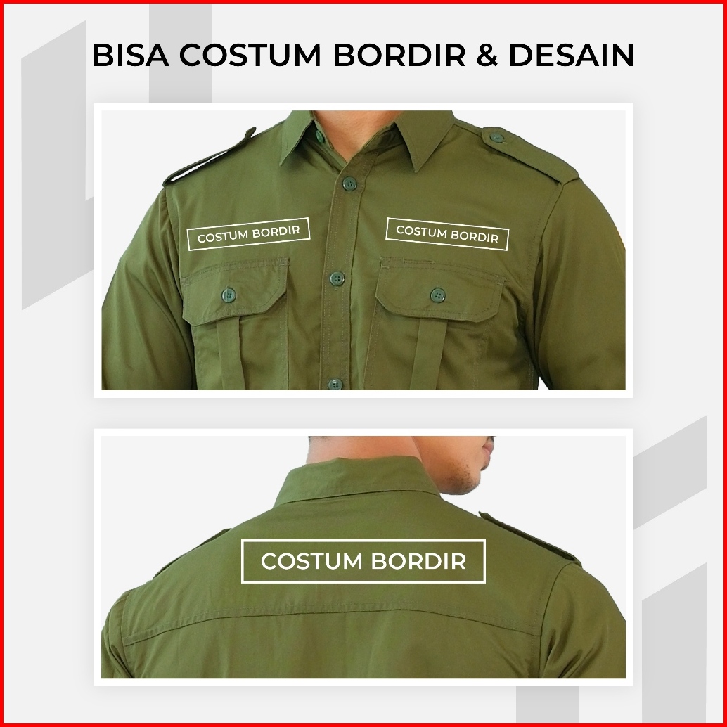 Baju Kemeja Pdl Lengan Panjang Pria - Seragam Pakaian Kerja Dinas Lapangan Outdoor Gunung Warna Hijau Army - Konveksi Ja