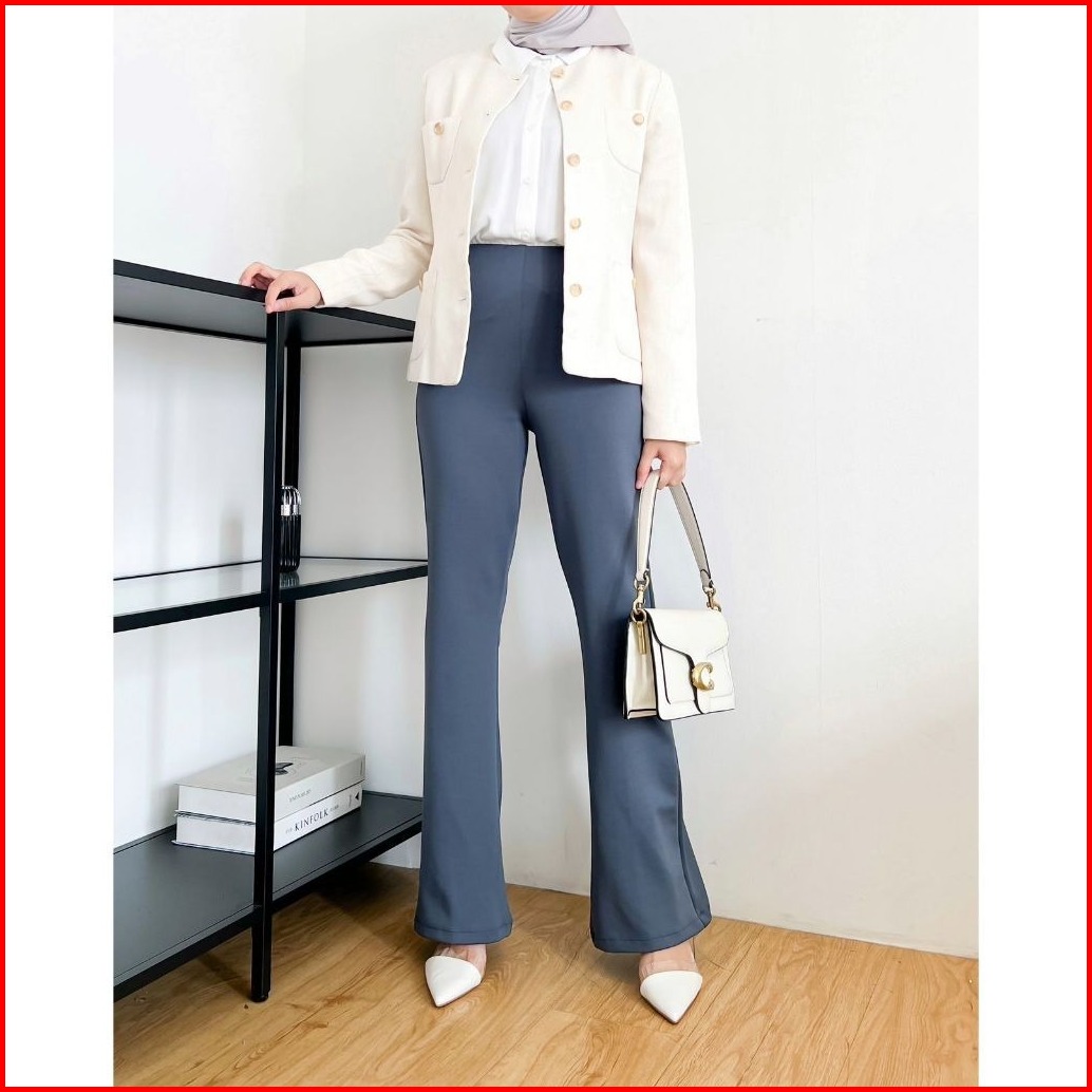 Celana Fit And Flare Pants Cutbray Scuba Premium Pinggang Highwaist Bahan Stretch Melar Elastis Kulot Cutbray Scuba Mela