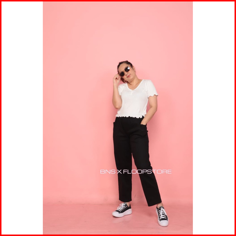 Bns X Floopstore Celana Panjang Wanita Bahan Cotton Twill Premium