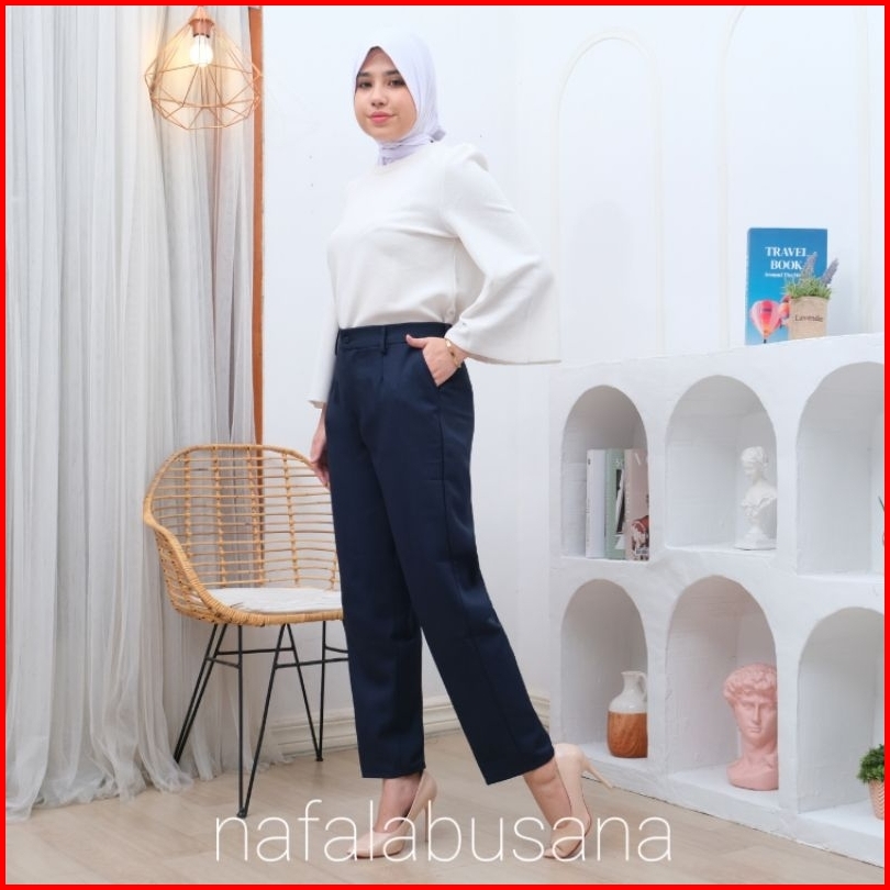 Celana Kerja Wanita Highwaist Pinggang Karet Belakang Bahan Dasar Kain Kantor Formal