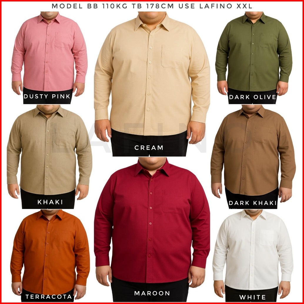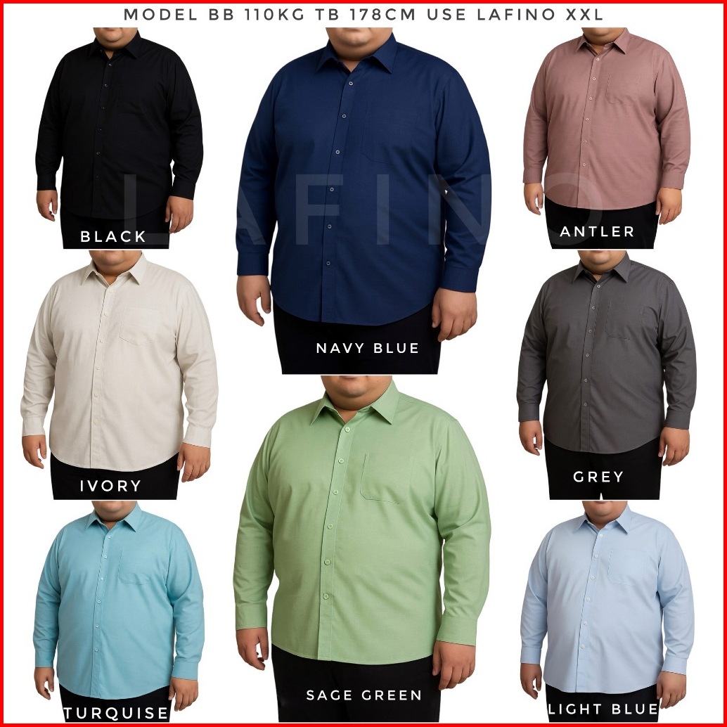 Lafino M L Xl 2xl 3xl 4xl Xxl Xxxl Xxxxl Heavyweight Rami Kemeja Panjang Jumbo Polos Bigsize Pria