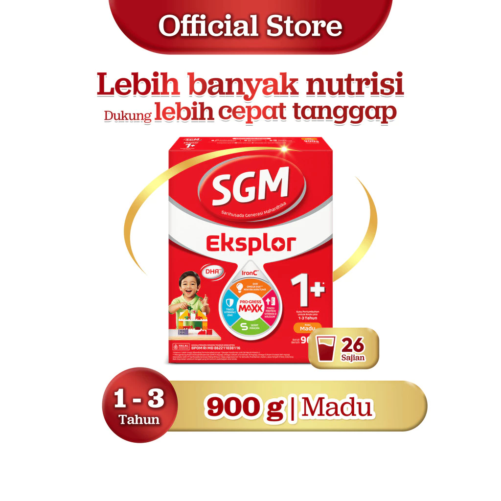 SGM Eksplor 1+ dengan IronC Susu Pertumbuhan Rasa Madu Vanila 900GR