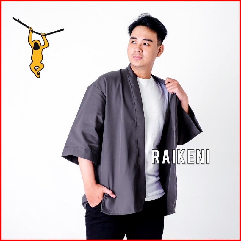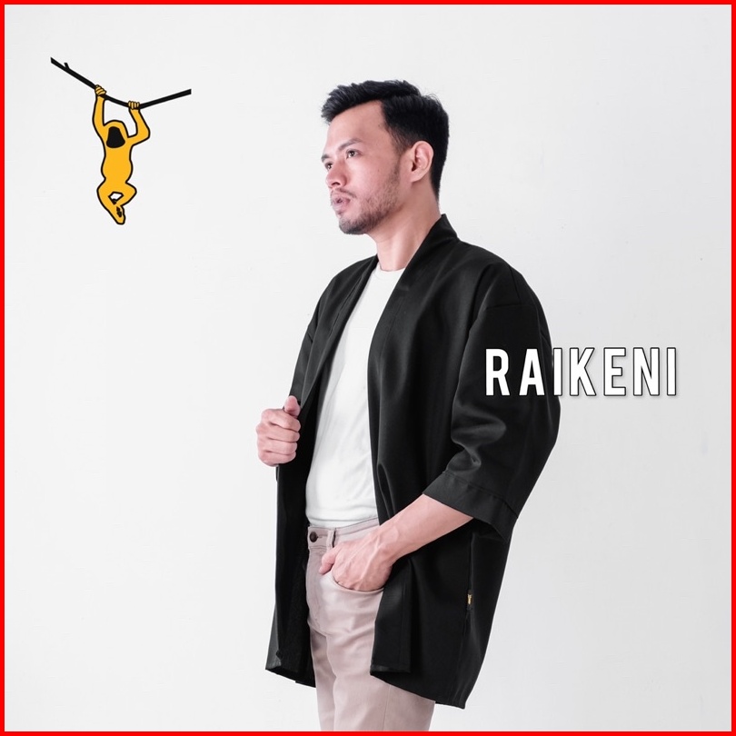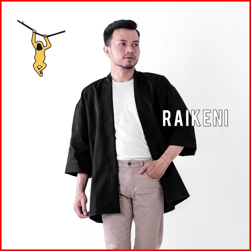 Raikeni Kimono Uno Jaket Cardigan Jepang Hitam Kimono Outerwear Unisex Kardigan Pria