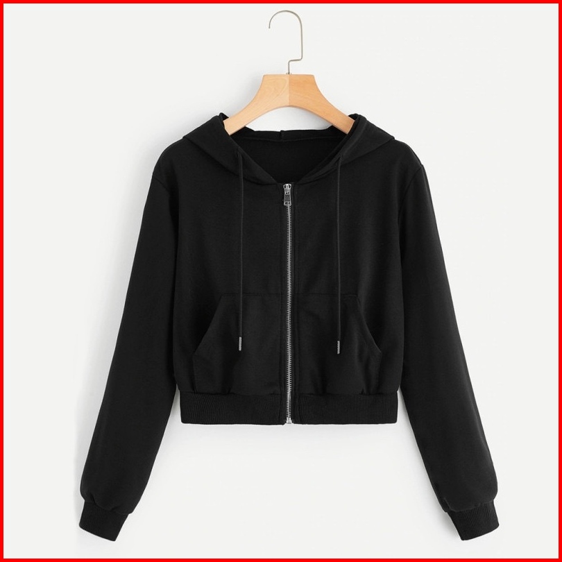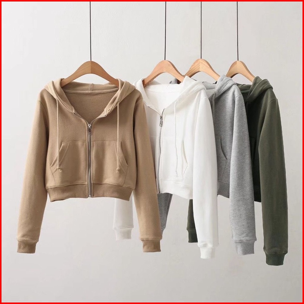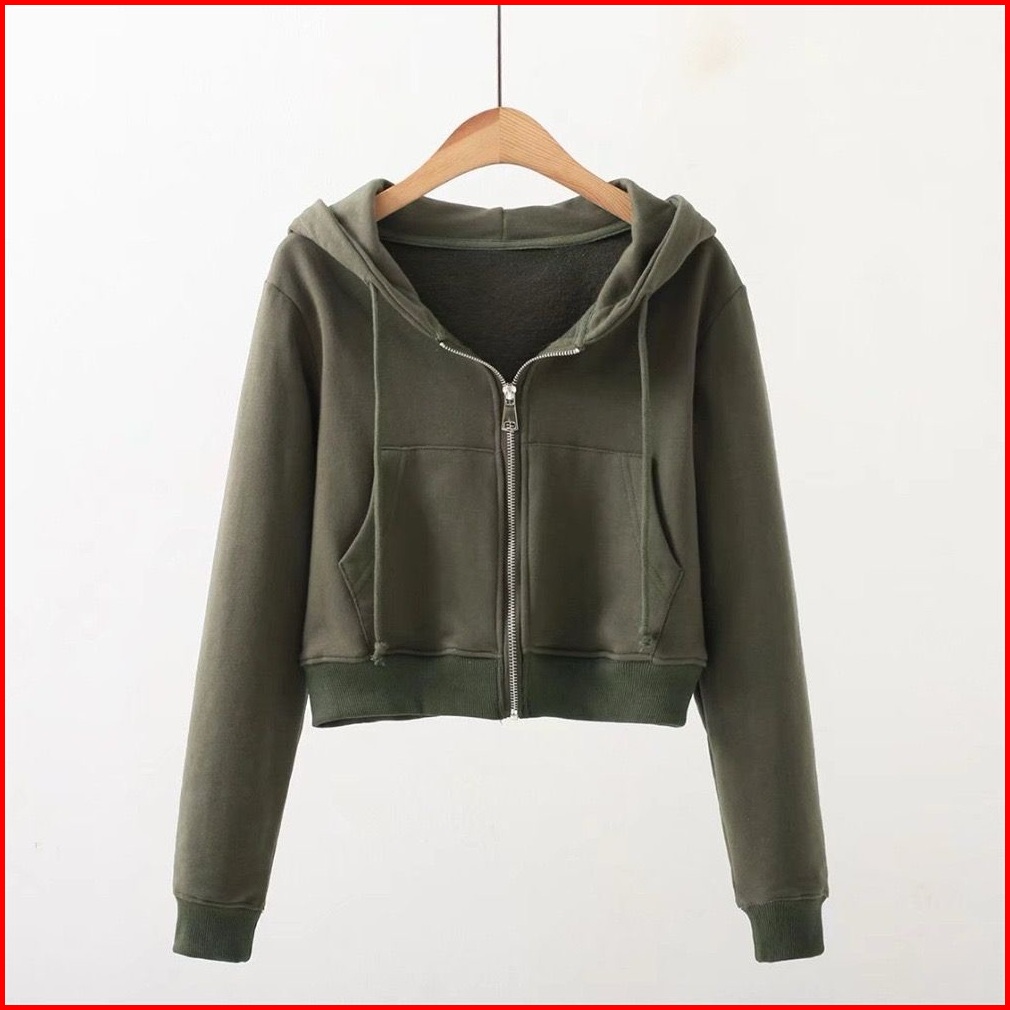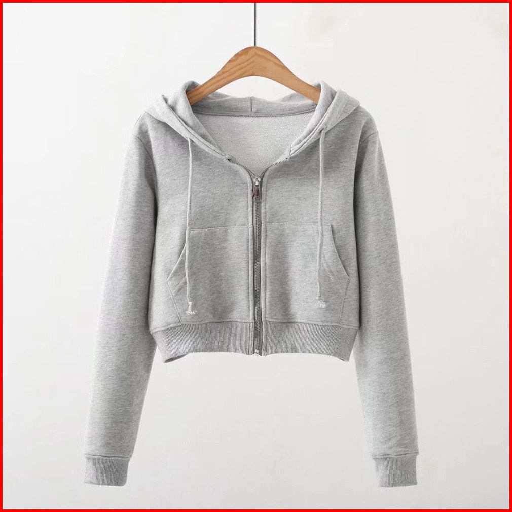 Sweater Hoodie Jaket Basic Croptop Zipper Resleting Wanita Fashion