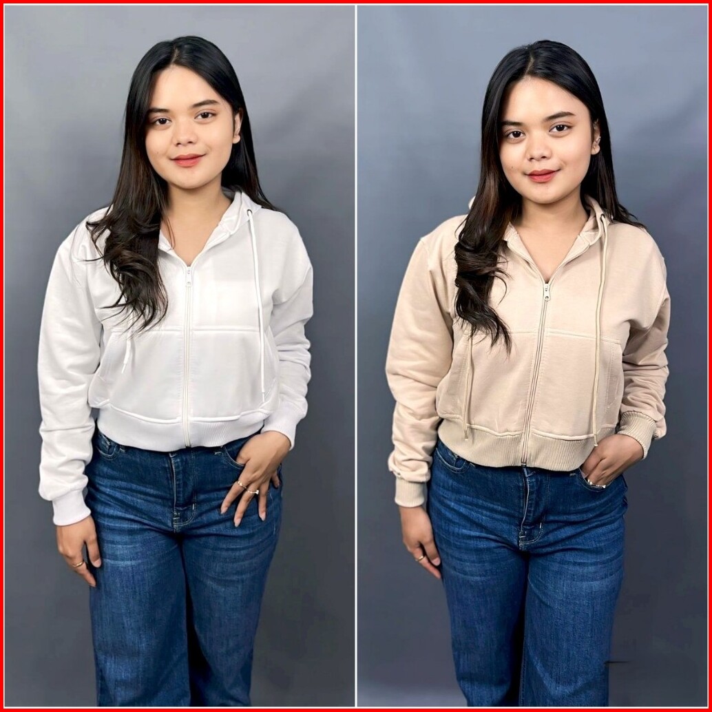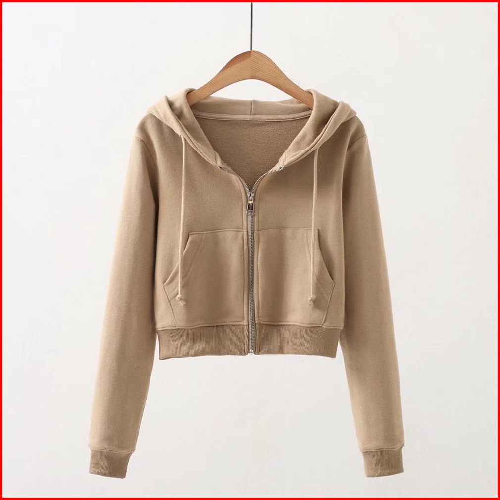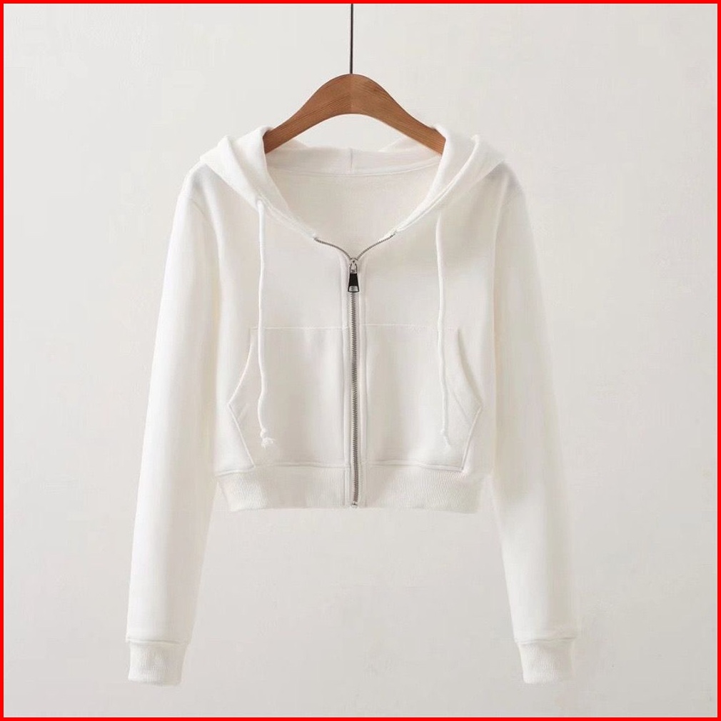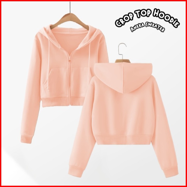 Sweater Hoodie Jaket Basic Croptop Zipper Resleting Wanita Fashion