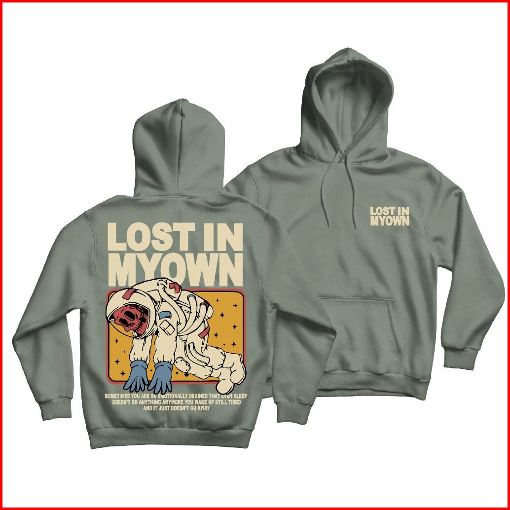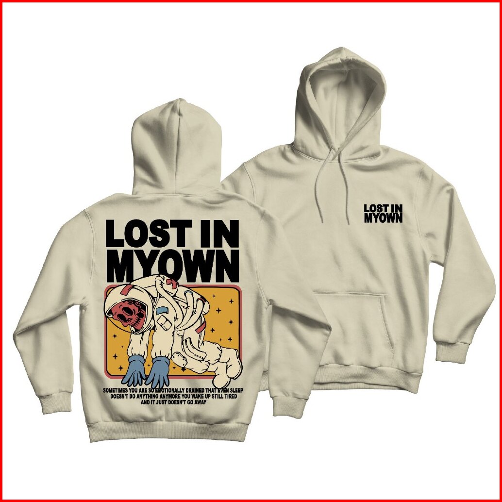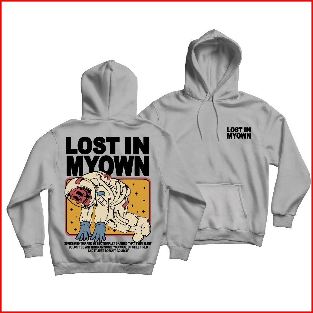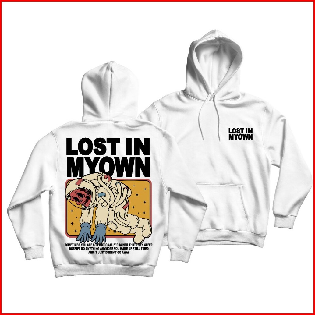Sweater Polos Hoodie Jumper Lost In My Own Sablon Dtf Size M-xxl Pria Wanita