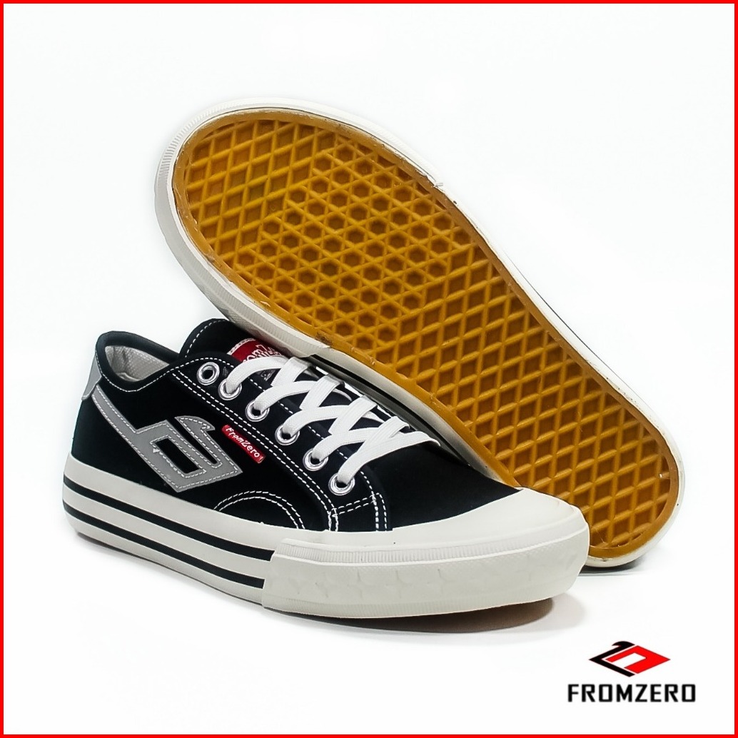 Fromzero - Sepatu Sneakers Kasual Sepatu Sekolah Pria Wanita Aransa Black White Flash 36 - 45