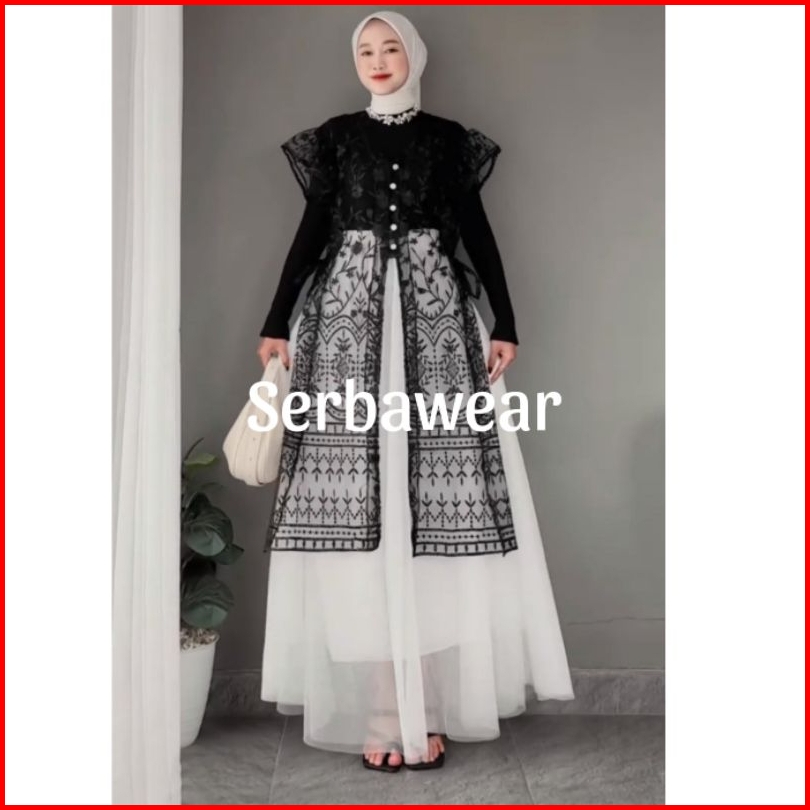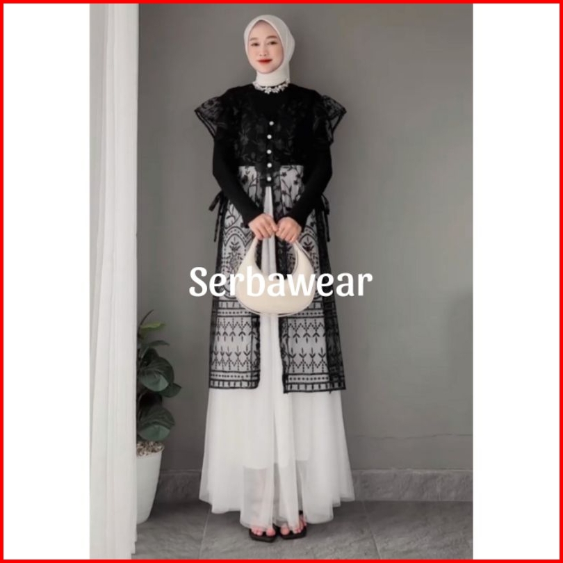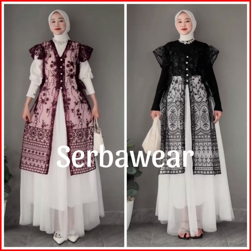 Kamaniya Outer Tunik Tille Brocade Lace Outer Atasan Wanita Outer Kondangan Outer Lebaran Outer Pesta