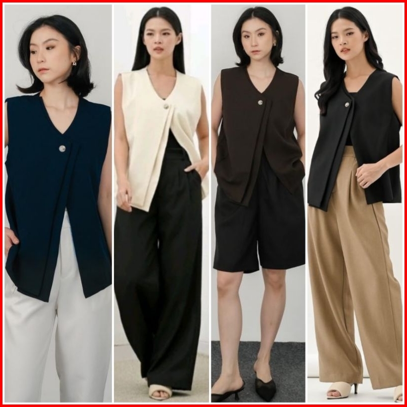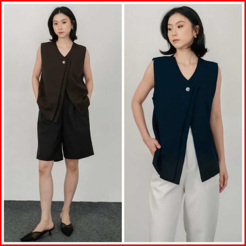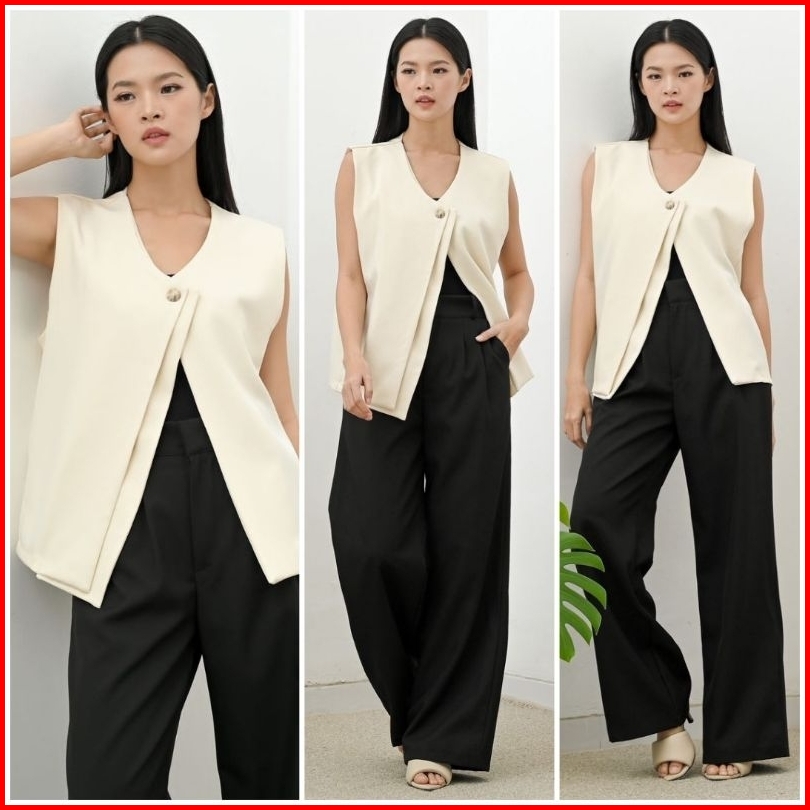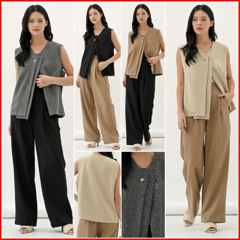 Sheliciousroom Premium Lokal Best Seller Nabilla Vintage Semiwool Vest One Button Thick Loose Vest Office Outer Rompi Sa