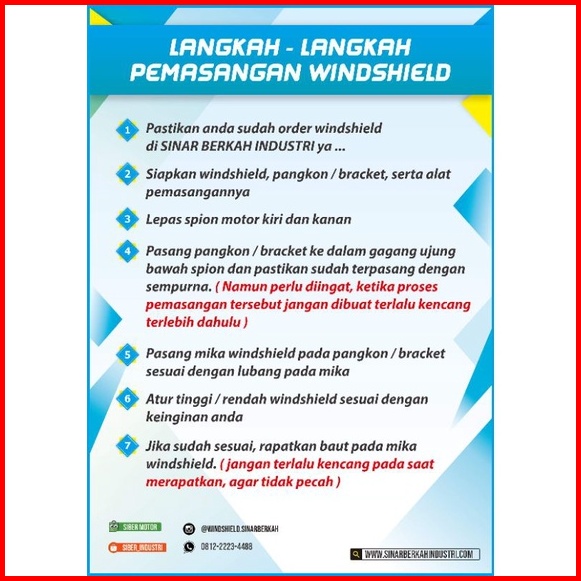 Windshield Universal Model Ukuran Tinggi Matic Tebal 3mm Bebek Gratis Bracket