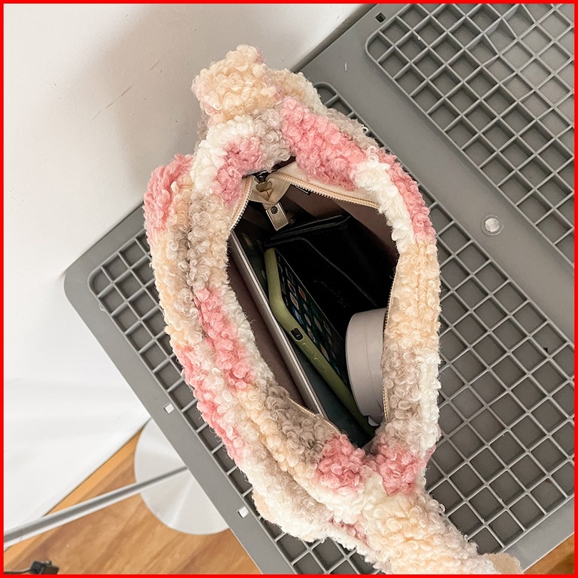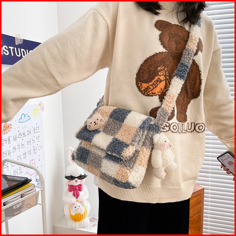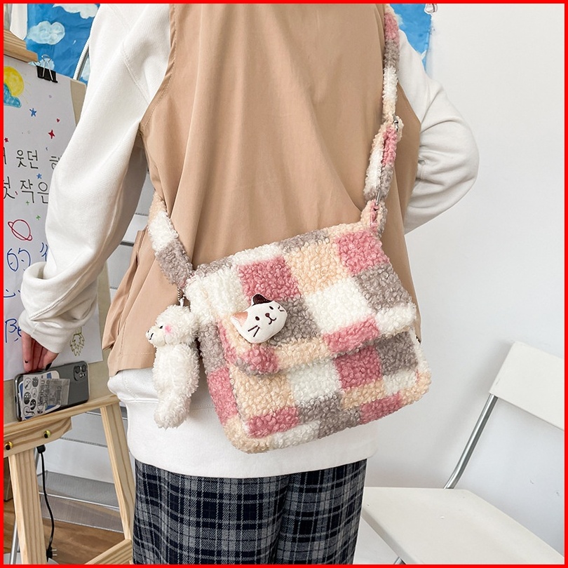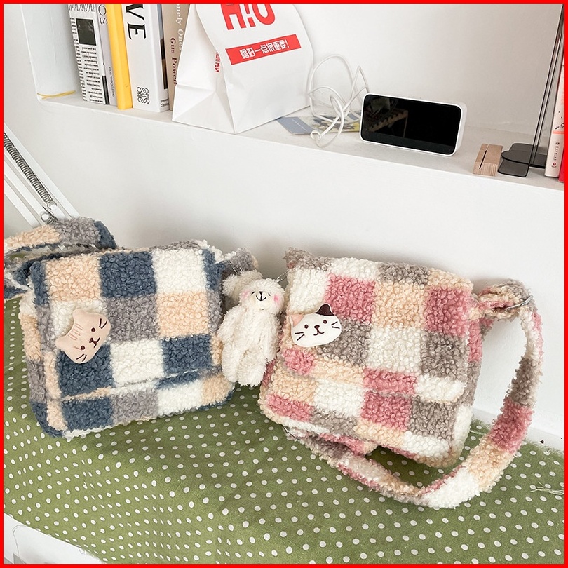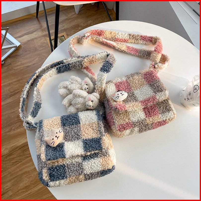 Mismi Kaitlyn Bag Tas Selempang Wanita Checker Plush Cute Sling Bag Resleting Perempuan Stylish - 20k