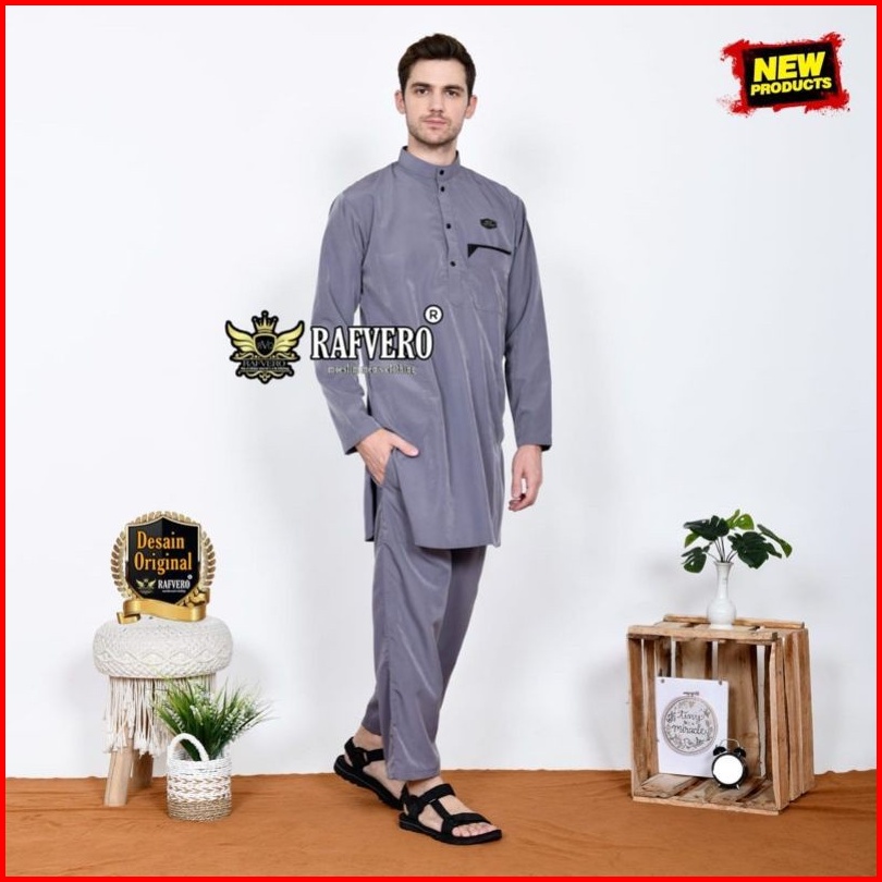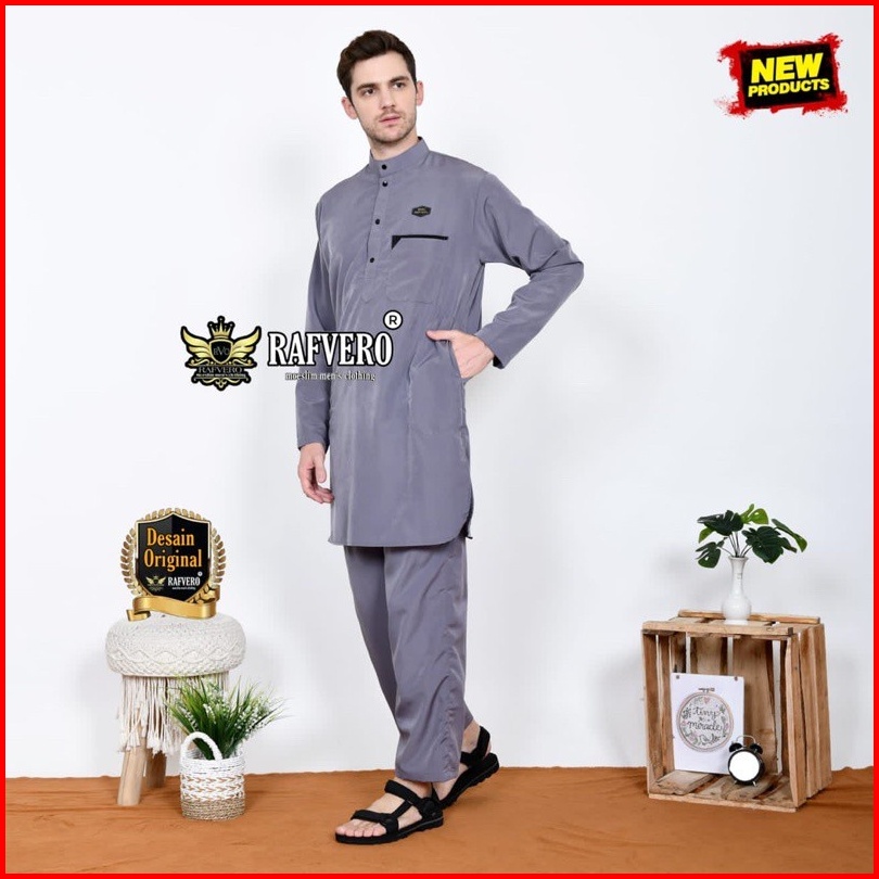 Setelan Koko Dewasa - Baju Koko Pria - Kurta Pakistan - Gamis Setelan Lengan Panjang Polos