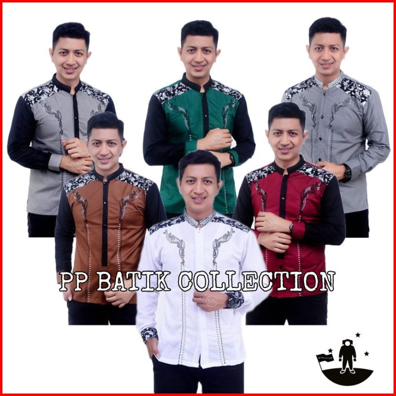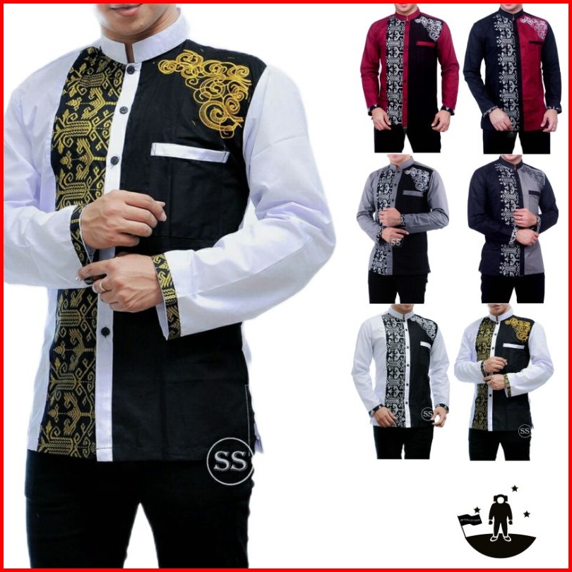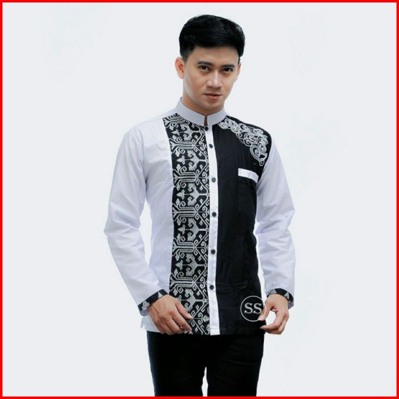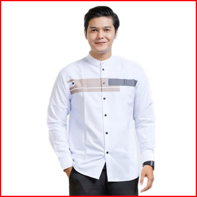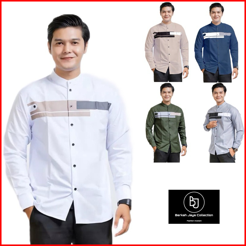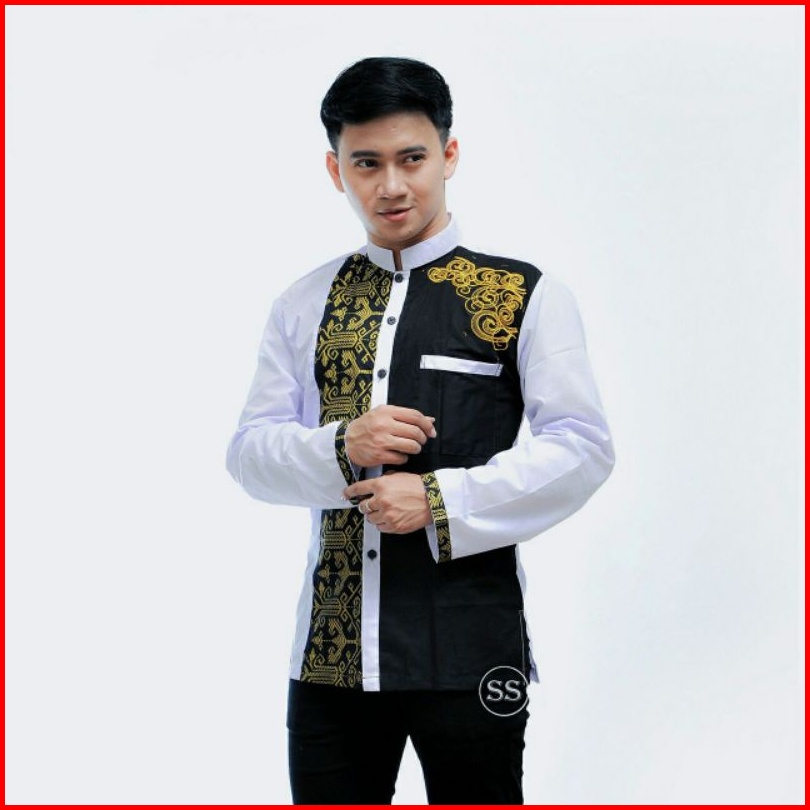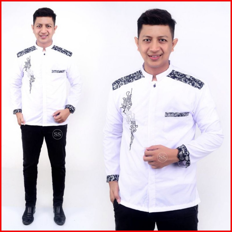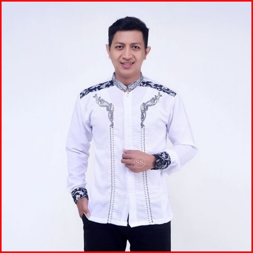 Terbaru Koko Lengan Panjang Kombinasi Bordir Material Cotton Adem Fashion Muslim Pria