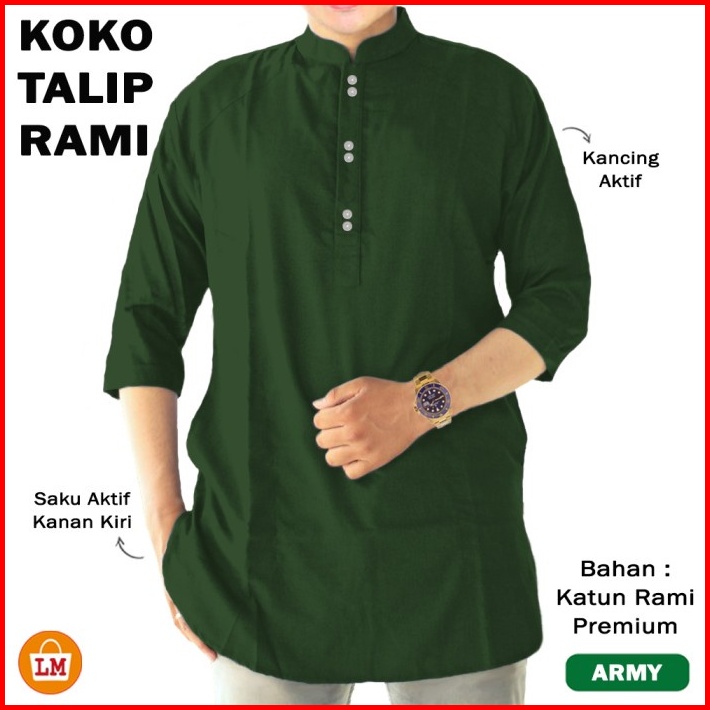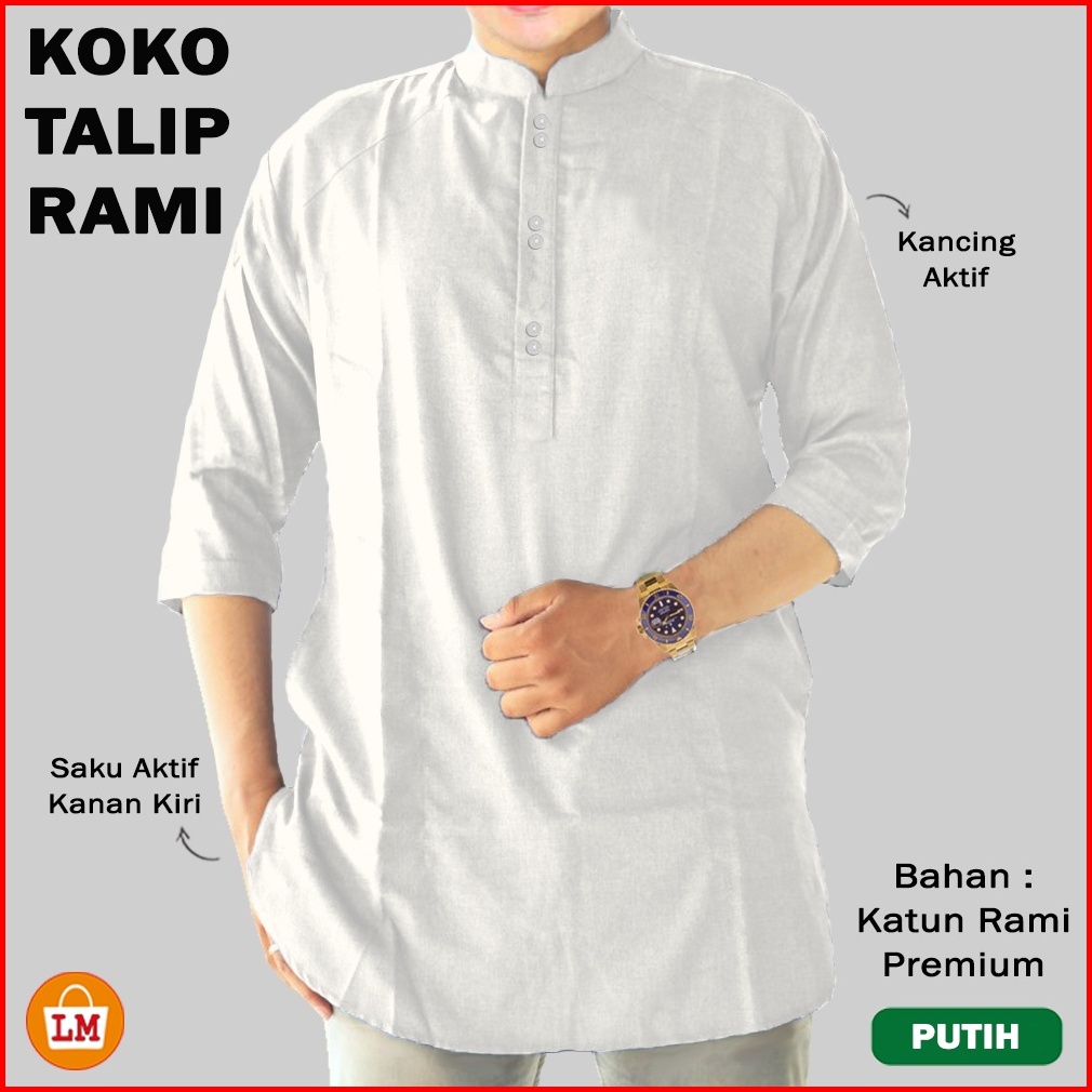 Baju Pria Muslim Koko Talip Rami Katun Lengan 3 4 Size M-3xl Lms 29452