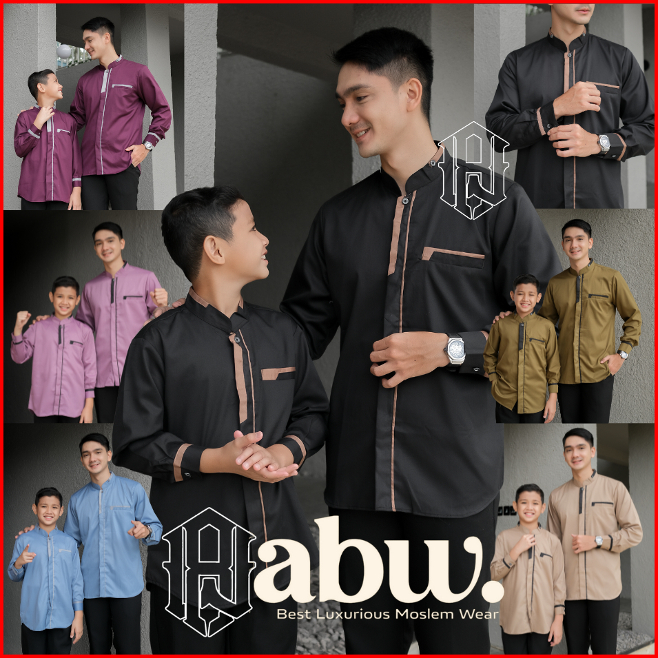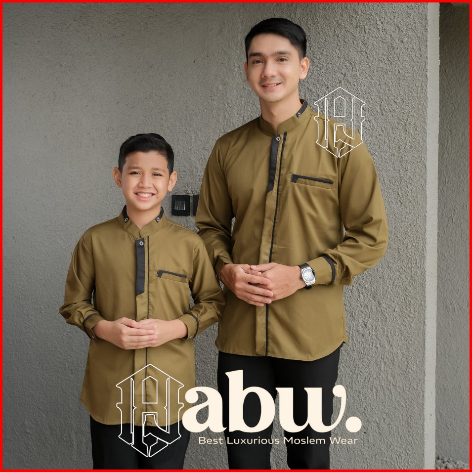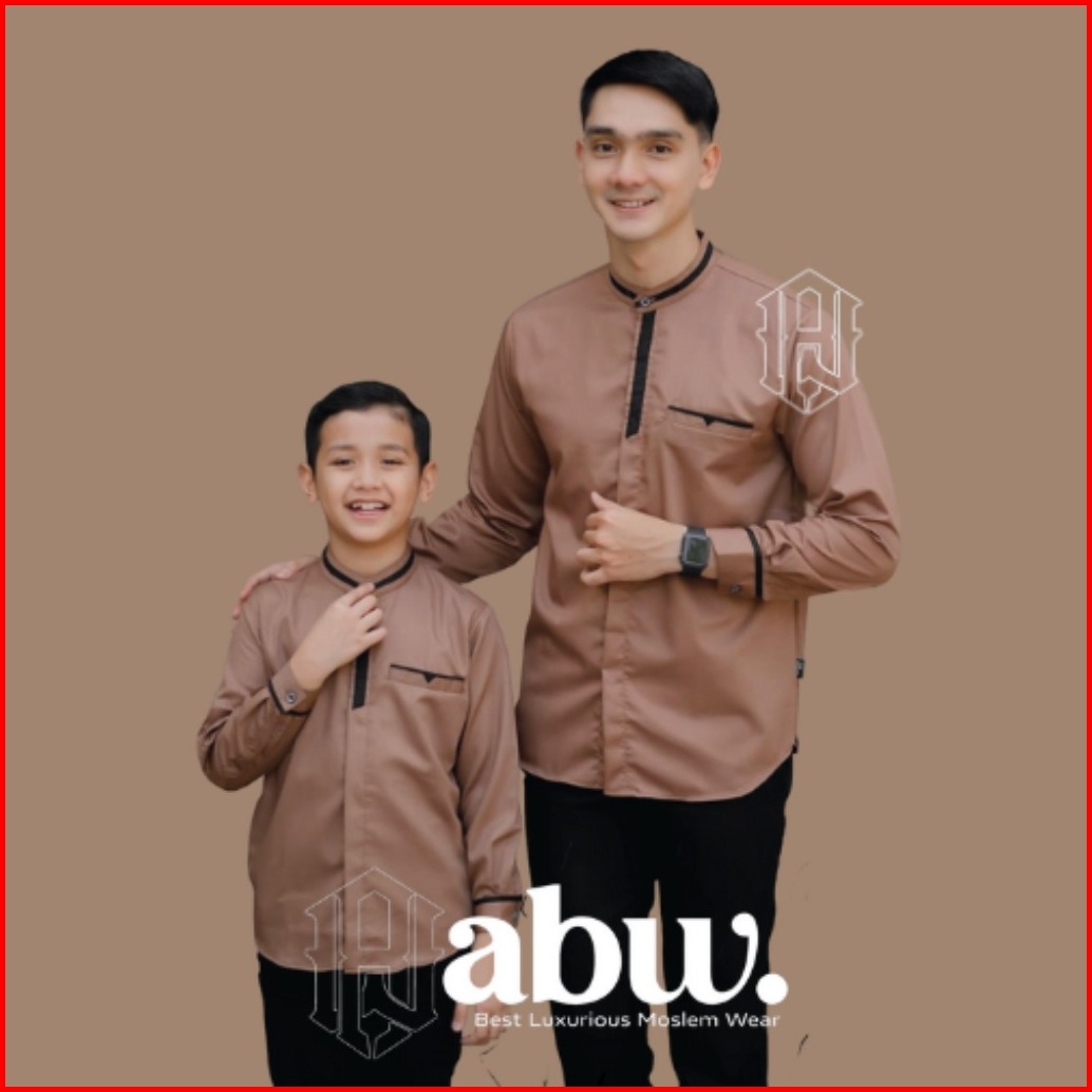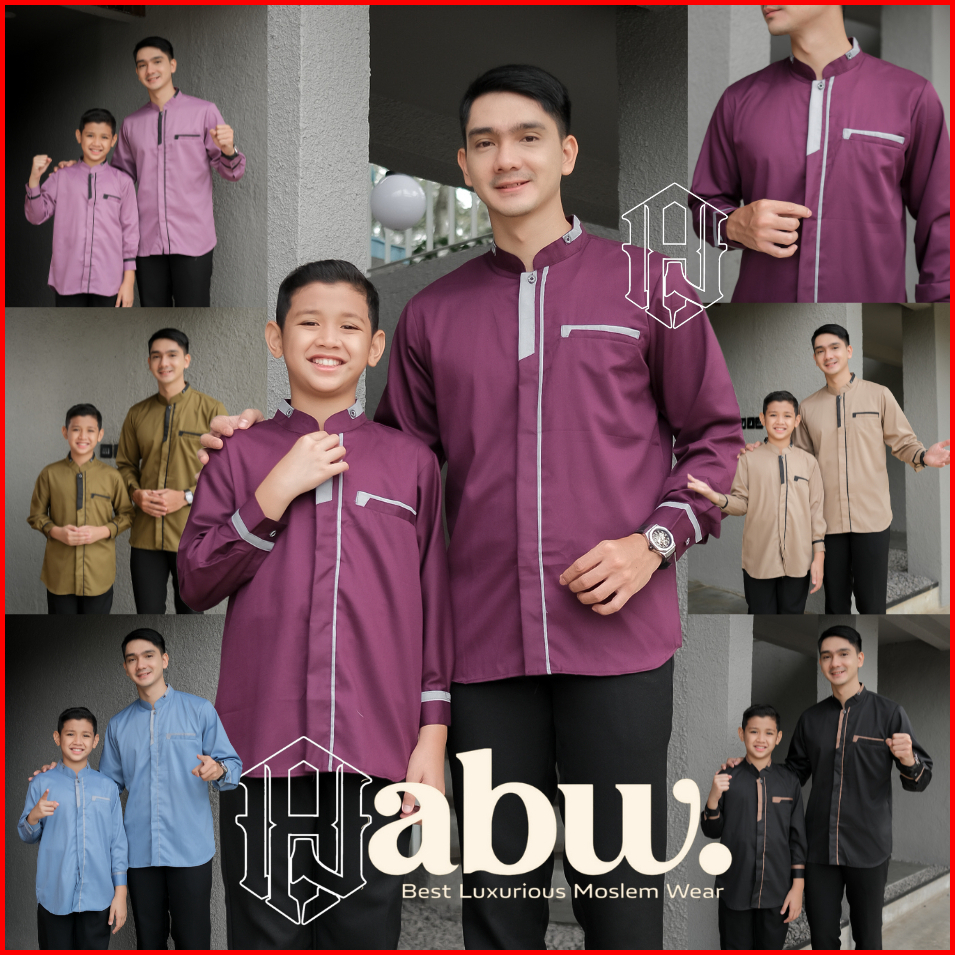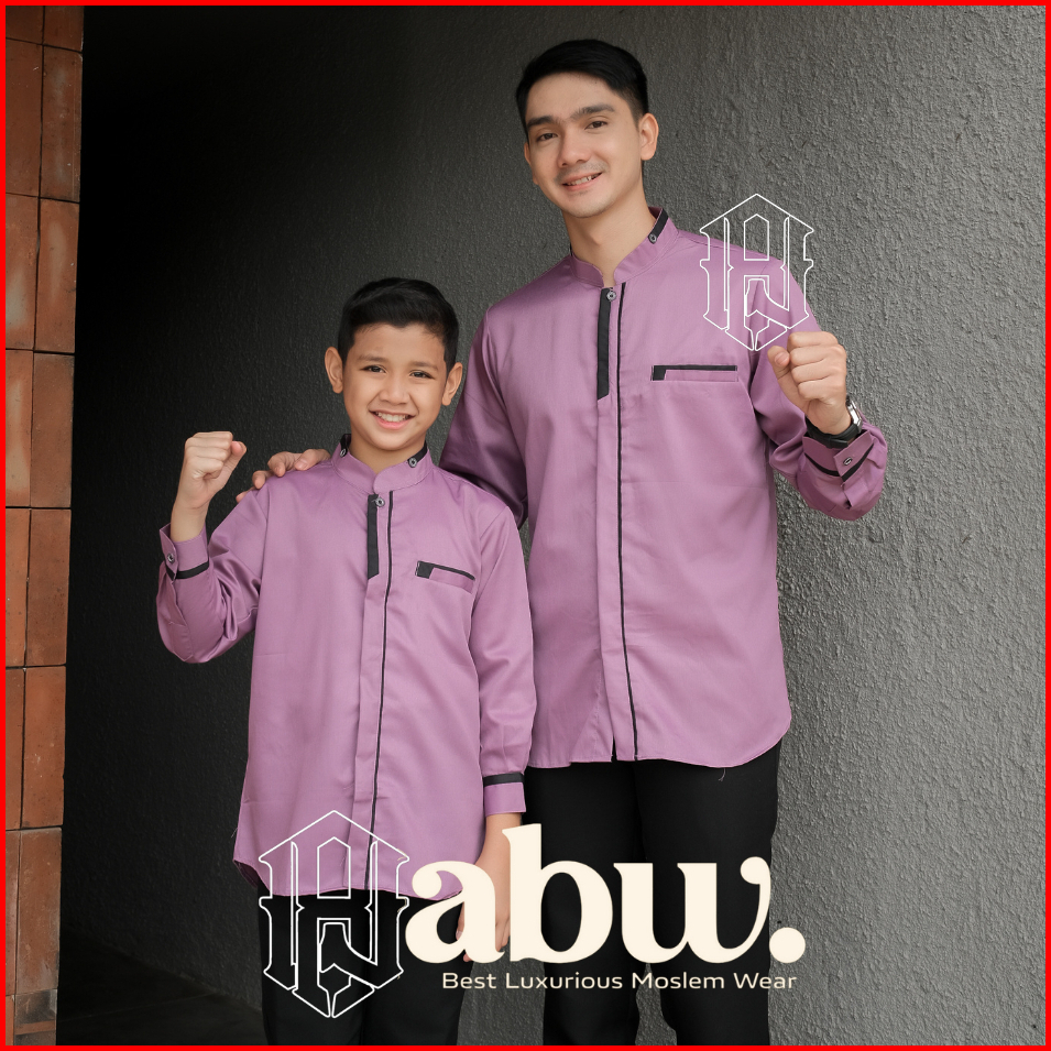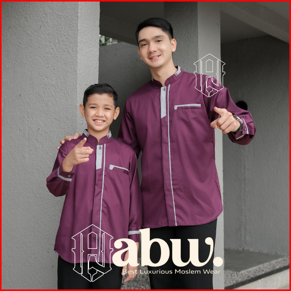 Baju Koko Couple Ayah Anak Laki Laki Warna Burgundy Lengan Panjang Bahan Toyobo Import Terbaru 2025