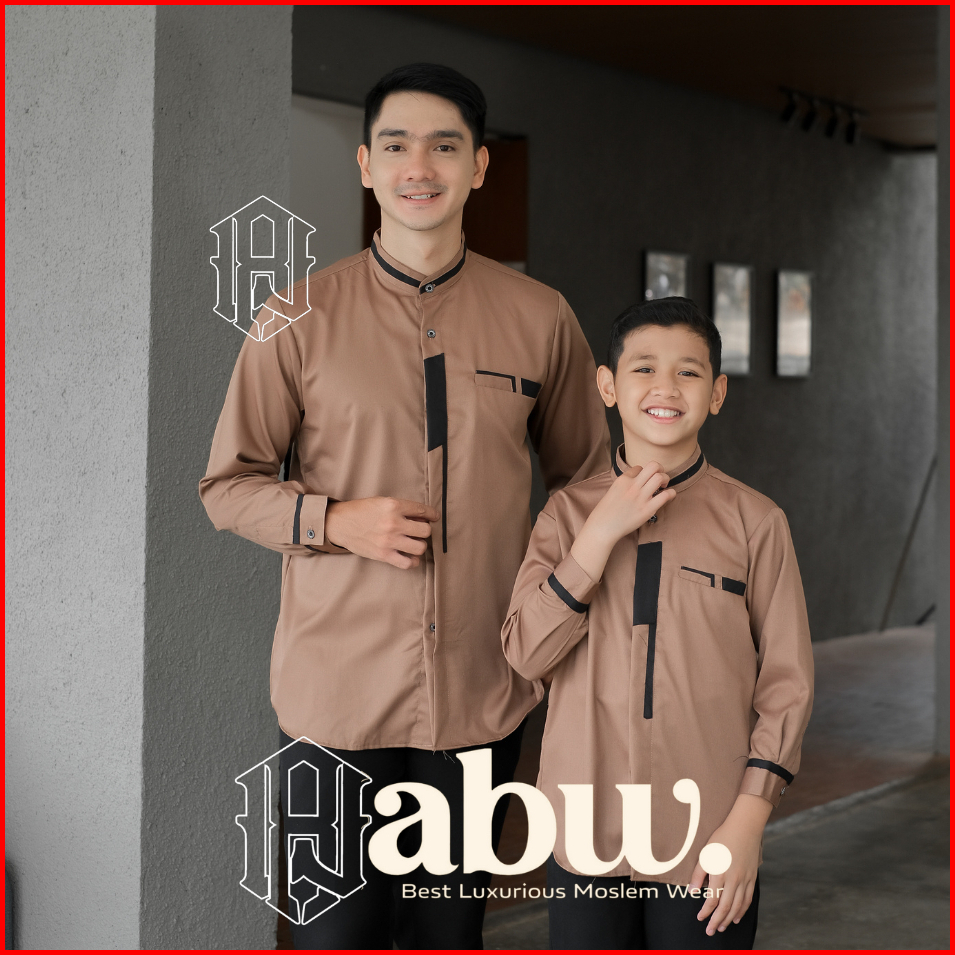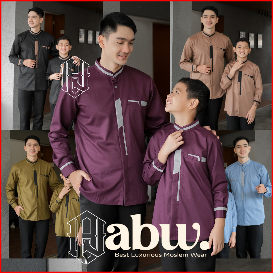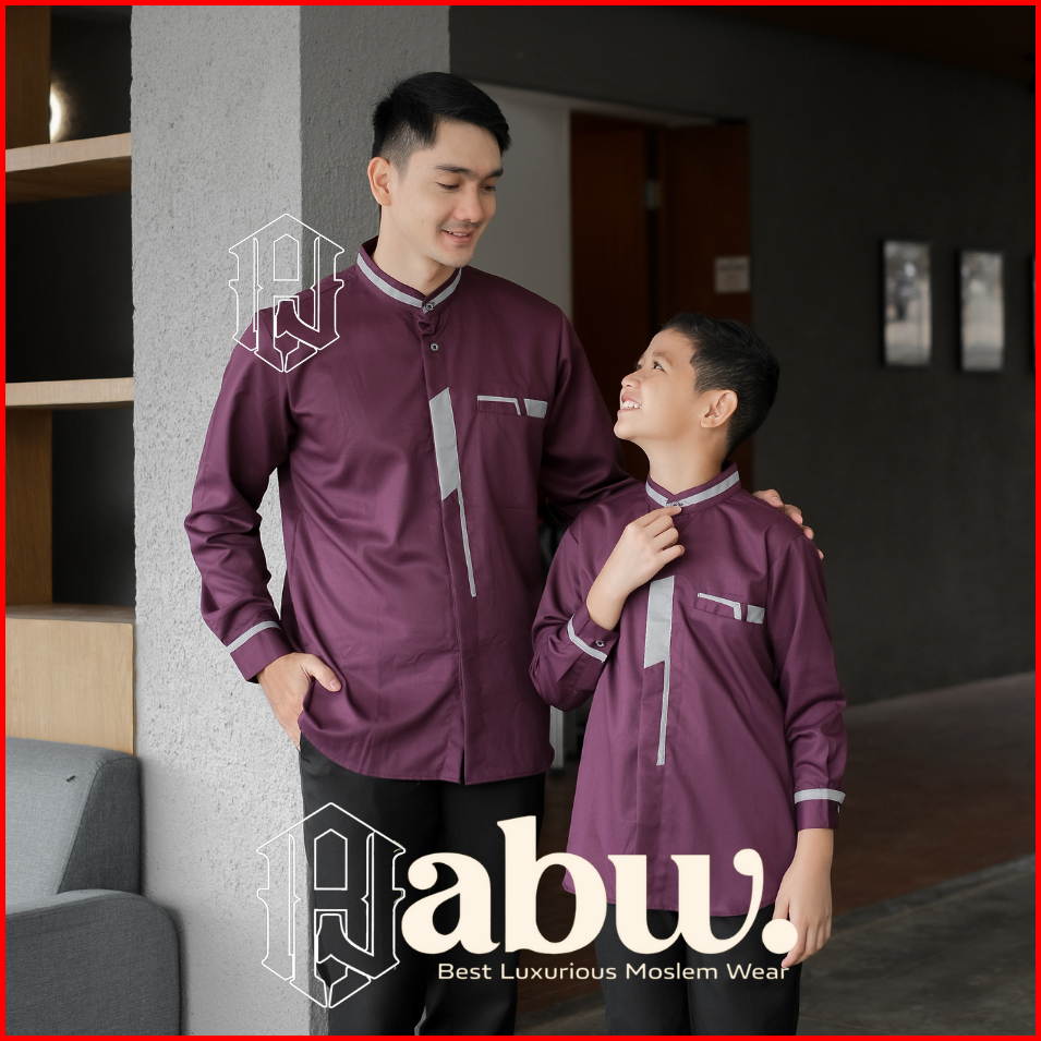 Baju Koko Couple Ayah Anak Laki Laki Warna Burgundy Lengan Panjang Bahan Toyobo Import Terbaru 2025