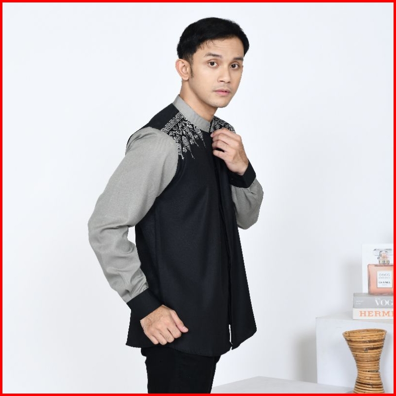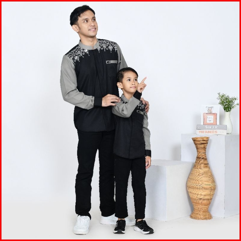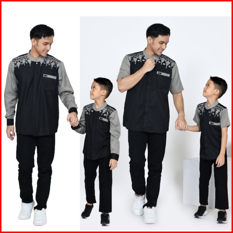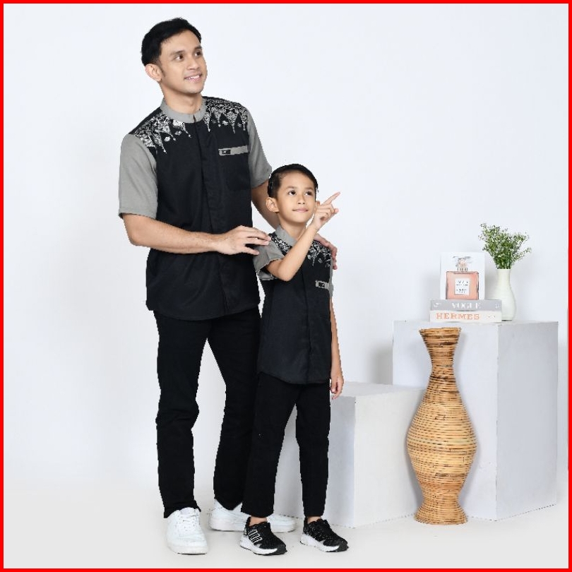 Baju Couple Koko Ayah Anak Wajik Hitam Satuan Bisa Pisah Koko Bordir Kombinasi