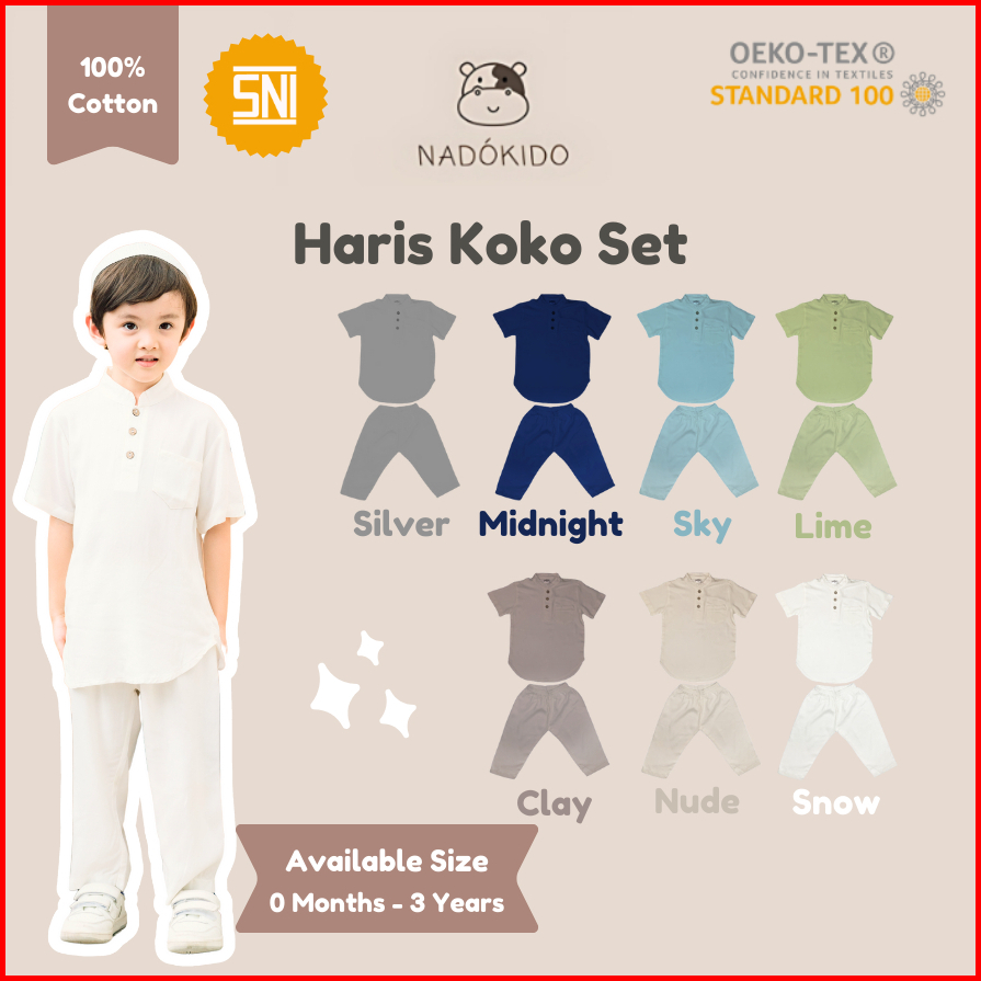 Nadokido Haris Koko Set Baju Kemeja Kemko Setelan Atasan Muslim Lebaran Anak Bayi Laki-laki