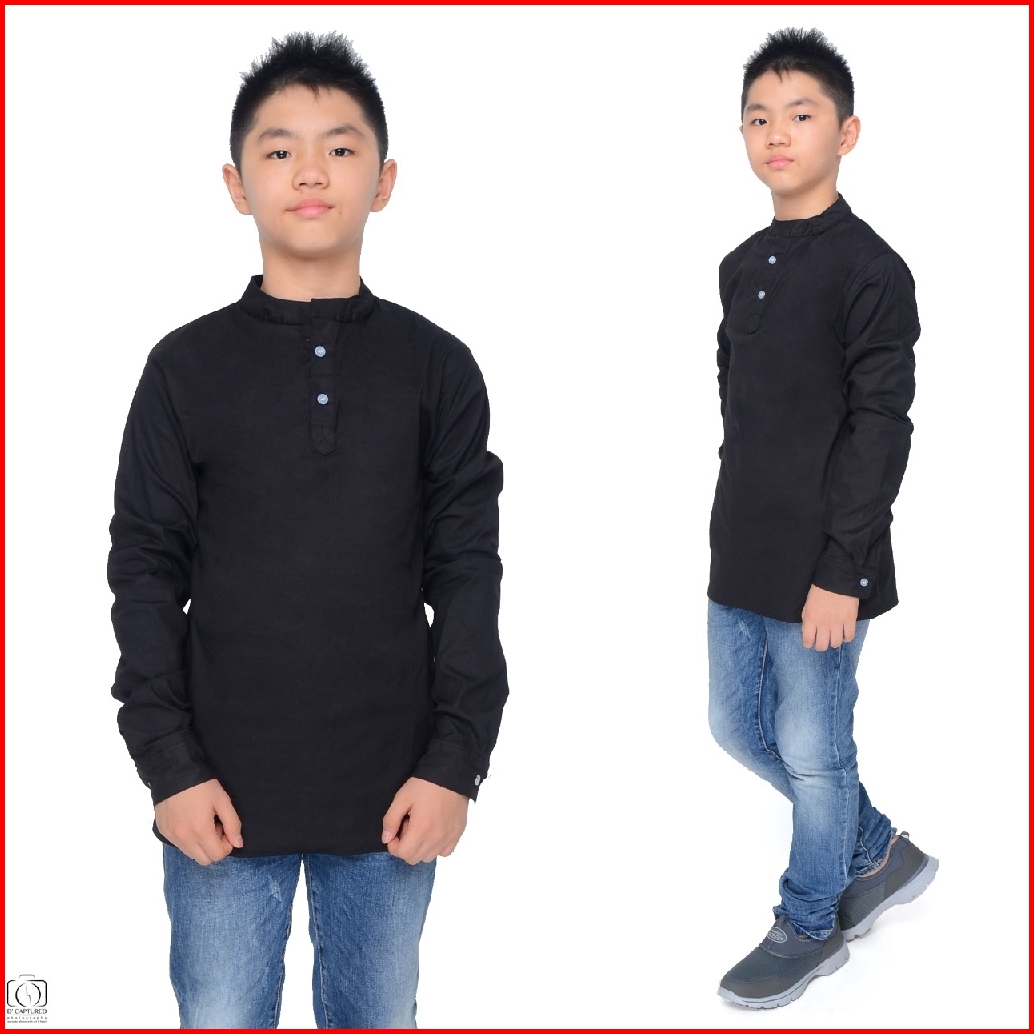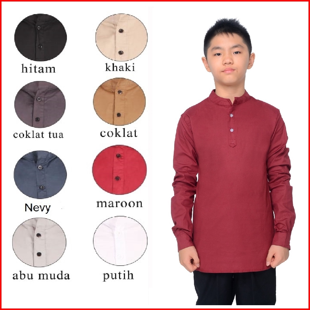 Central Hoodie Kemeja Koko Lengan Panjang Muslim Anak Laki Polos