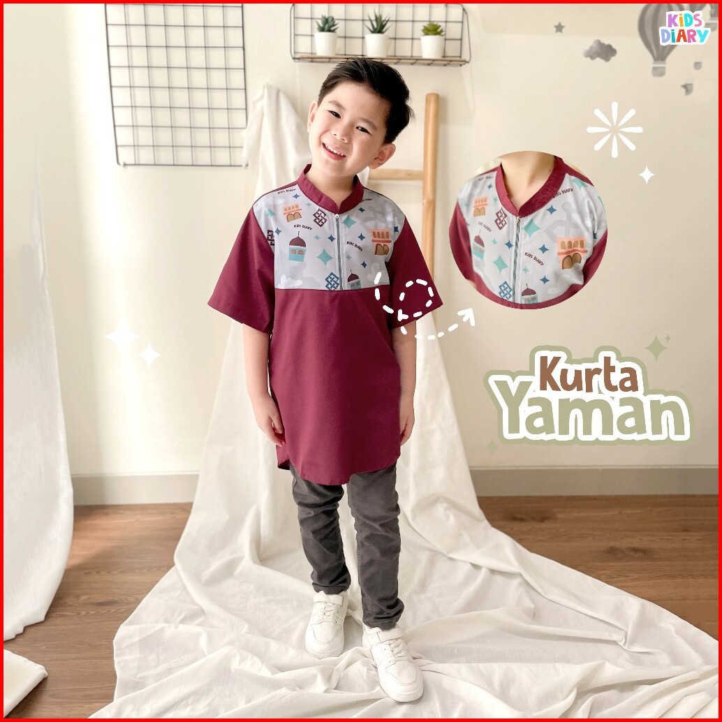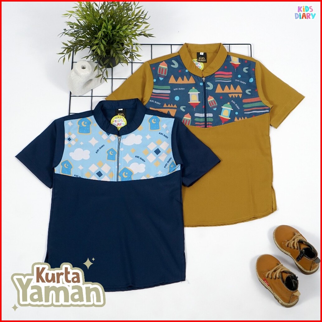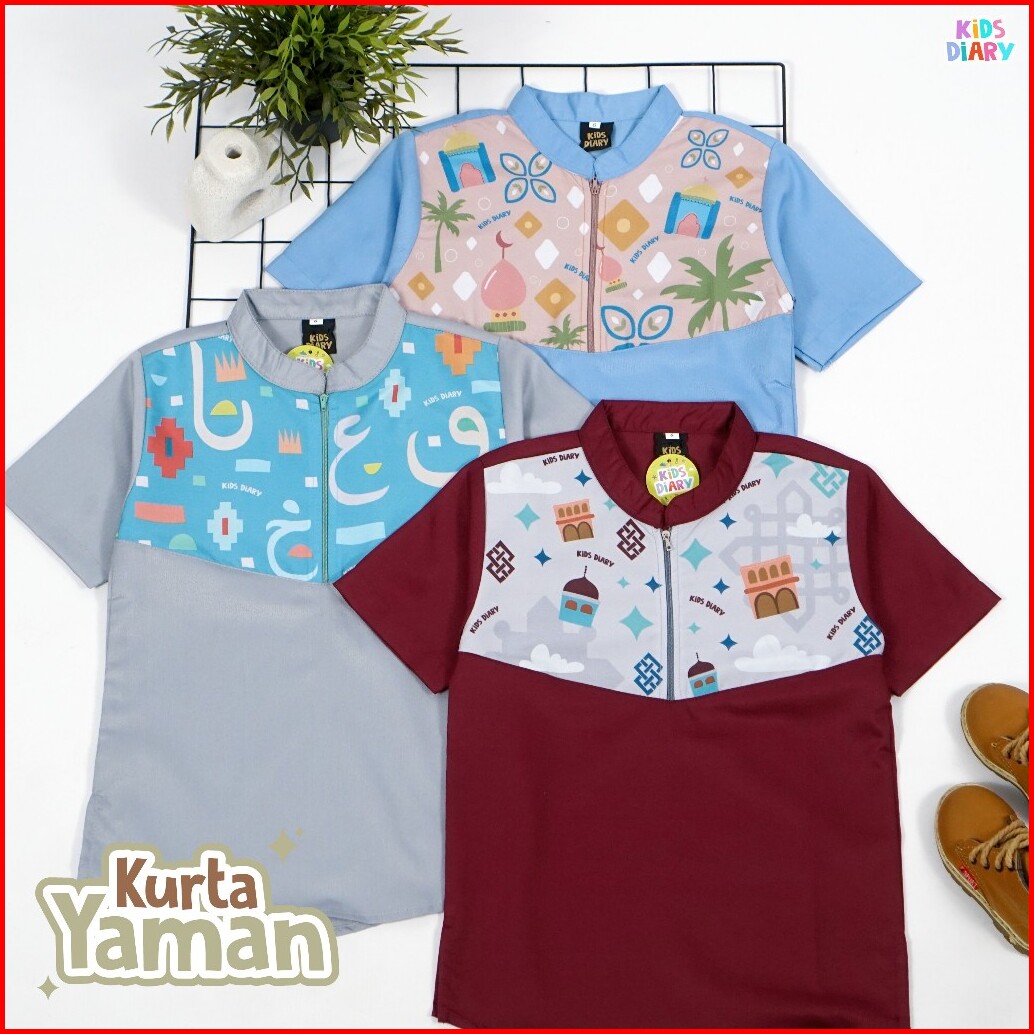 Kids Diary Plus - Koko Anak Laki-laki Kurta Yaman Toyobo 1-10 Tahun Baju Muslim Toyobo Motif Printing Zipper Adem Nyaman