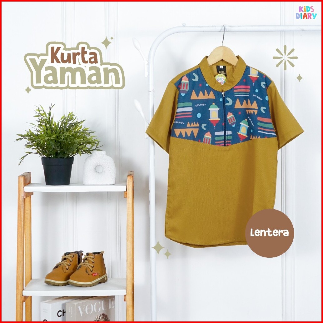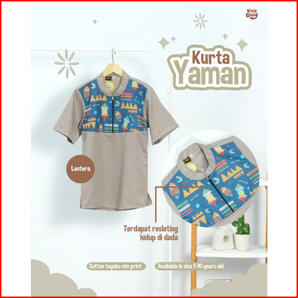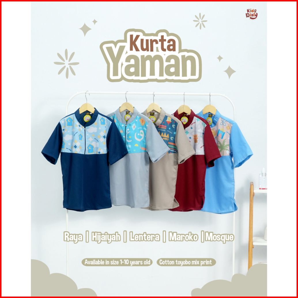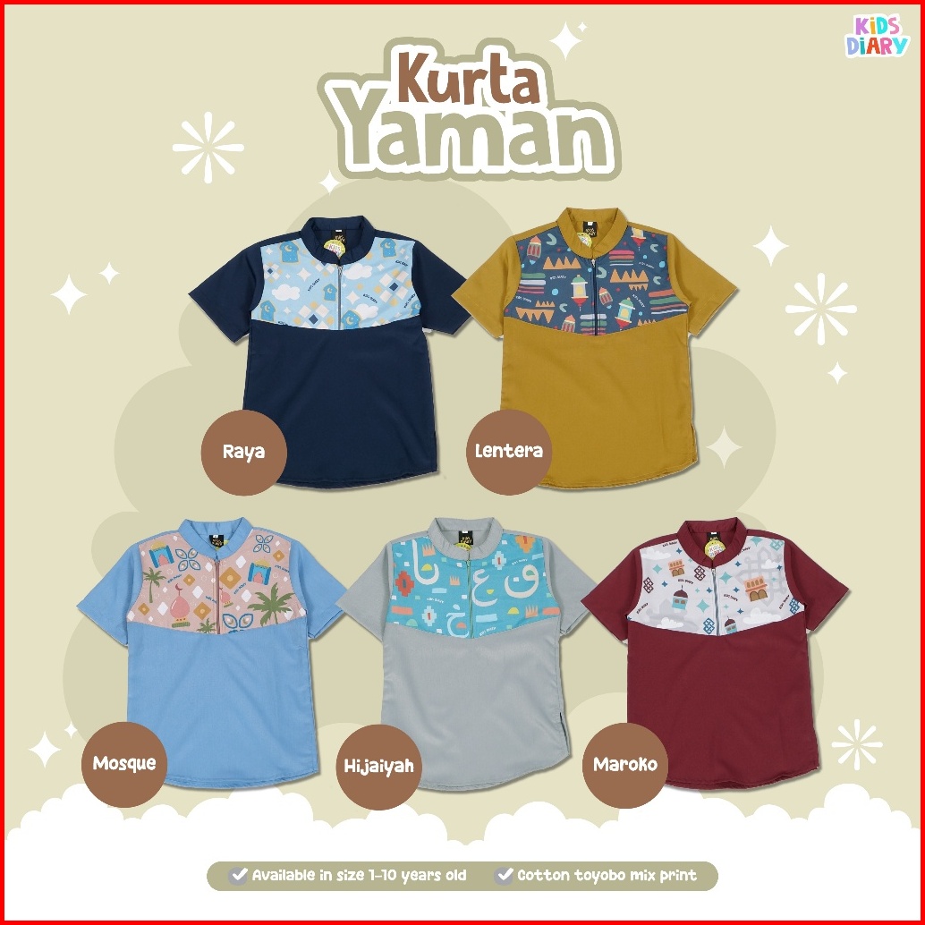 Kids Diary Plus - Koko Anak Laki-laki Kurta Yaman Toyobo 1-10 Tahun Baju Muslim Toyobo Motif Printing Zipper Adem Nyaman