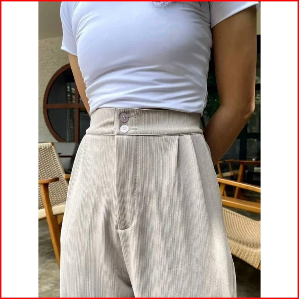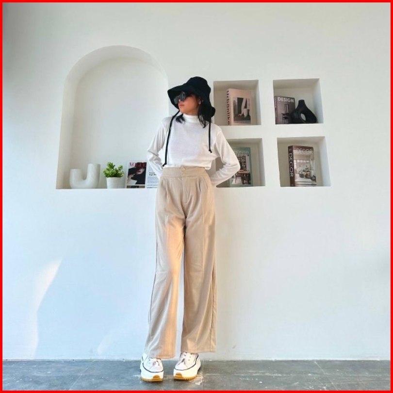Celana Kulot Jennie Knit Pants Kancing 2 Resleting Loose Pants Wanita Highwaist