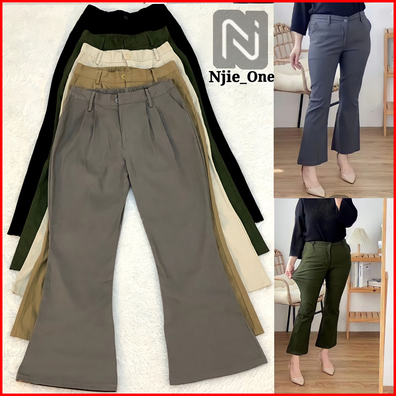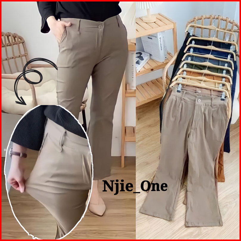 Celana Cutbray Basic Pants Twill Combed Stretch Celana Panjang Wanita Cutbray Wanita Streach Jumbo Big Size