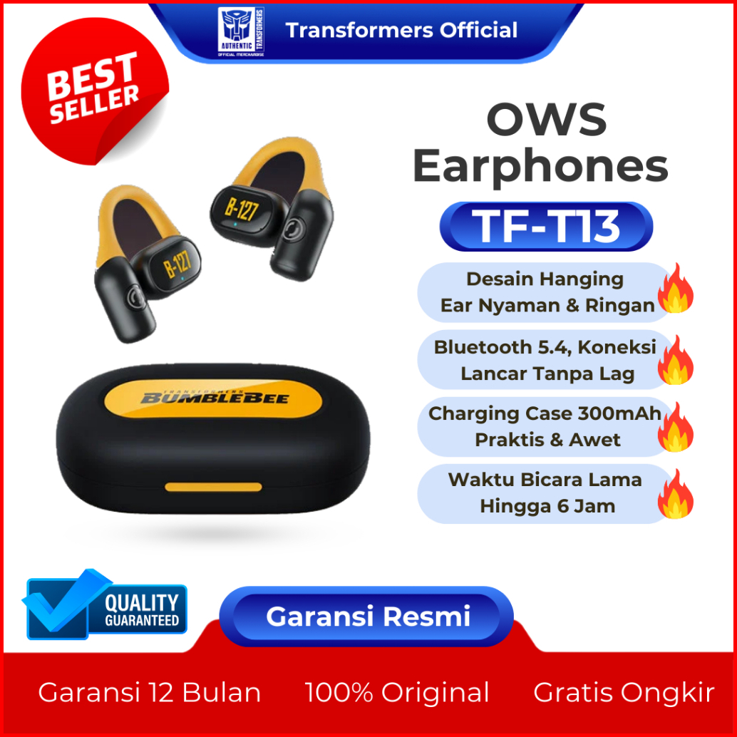 Transformers Tf-t13 Tws Earphones Bluetooth 5.4 Desain Ergonomis Audio Berkualitas